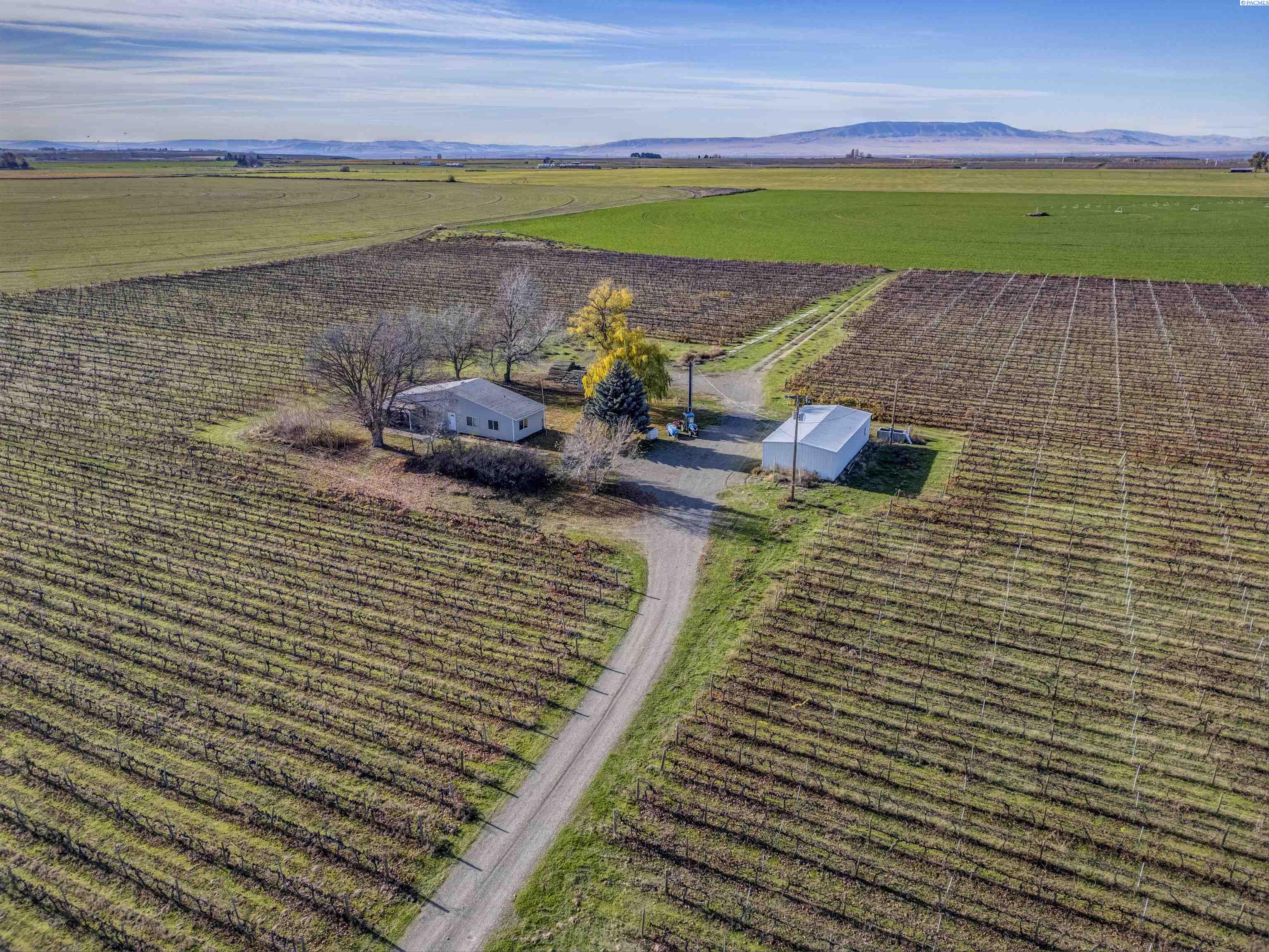 MLS# 289100 North Pasco vineyard property featuring a diverse selection of wine grapes—Cabernet Sauvignon 11.8 acres, Malbec 5.5 acres, Chardonnay 4.2 acres, Cabernet Franc 2.7 acres, Viognier 1.6 acres, Petit Syrah .6 acre, and Syrah .5 acre —offering exceptional agricultural potential. This 29.