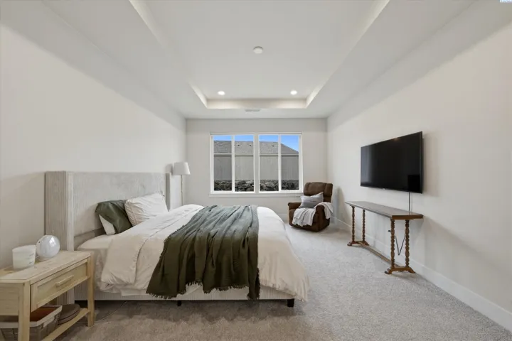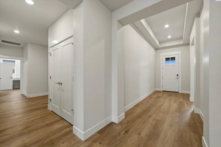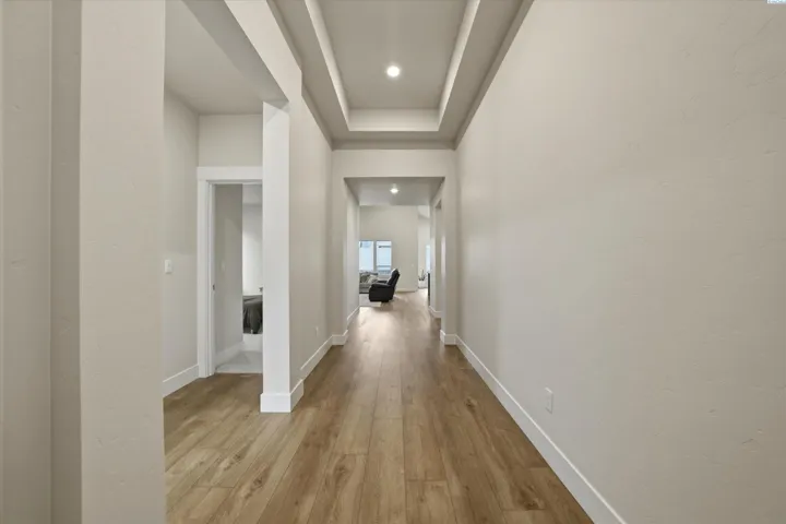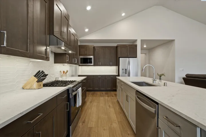 Located in the sought-after Horn Rapids community of Richland, this nearly new Pahlisch home offers access to a golf course, resort-style pool, clubhouse, fitness center, scenic walking and biking trails, parks, and over 100 acres of open space woven throughout the neighborhood. It’s a setting that supports an active lifestyle or simply offers beautiful surroundings to enjoy at your own pace. This popular Chase floor plan pairs refined design with polished finishes delivering the benefits of newer construction without the wait. Inside, natural light fills the open-concept great room, highlighted by vaulted ceilings, architectural detailing, and a gas fireplace with designer tile surround. The kitchen is both functional and impressive, featuring quartz countertops, rich espresso soft-close cabinetry, full tile backsplash, stainless steel appliances including a gas range, and an oversized island with contrasting cabinetry that creates a natural gathering space. A walk-through pantry provides direct access to the garage. Privately positioned, the primary suite offers a spacious walk-in closet, dual vanities, a spa-inspired bath tub, and tiled walk-in shower creating a comfortable retreat at the end of the day. Smart home features, including a smart thermostat, smart lock, and smart garage system. The home is also EV-ready, equipped with a 30-amp plug and charger included. The covered patio extends your living space outdoors, while the fully fenced yard and completed landscaping provide a finished, move-in-ready feel. Seller is offering a $10,000 credit, providing flexibility for rate buy-down, closing costs, or personal touches. A nearly new home in one of Richland’s most desirable communities — ready to step into and enjoy.