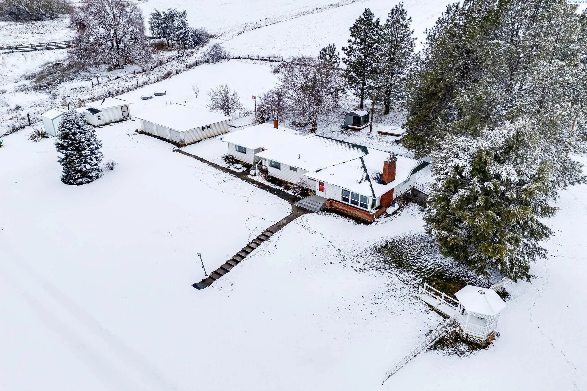 MLS# 290683 Step into this spacious home nestled among the rolling hills of the Palouse.The stunning main level has beautiful built-ins and an open floor plan that feels rock solid. At the heart of the home, the light-filled kitchen features charming custom tile work, lots of natural light, ample counterspace and storage, and a farmhouse sink. The living room is enhanced by newer windows that frame the gas fireplace, creating a warm and inviting atmosphere. Several newly installed mini-splits provide efficient heating and cooling year-round. The main level offers four generously sized bedrooms and a full bathroom, providing plenty of space. Downstairs, the walk-out basement expands your options with endless storage, an additional bedroom, and a partial bathroom complete with a walk-in shower. A new exterior door adds convenience, and the lower level offers a comfortable, versatile space ready to fit your needs. Outside, you’ll find a detached three-car garage, a mower shed, and a pump house/chicken coop. The beautifully landscaped yard is both easy to maintain and a joy to relax in. Don’t miss the matching gazebo for even more outdoor enjoyment. This Palouse property offers space, character, and functionality — all in a picturesque setting.
