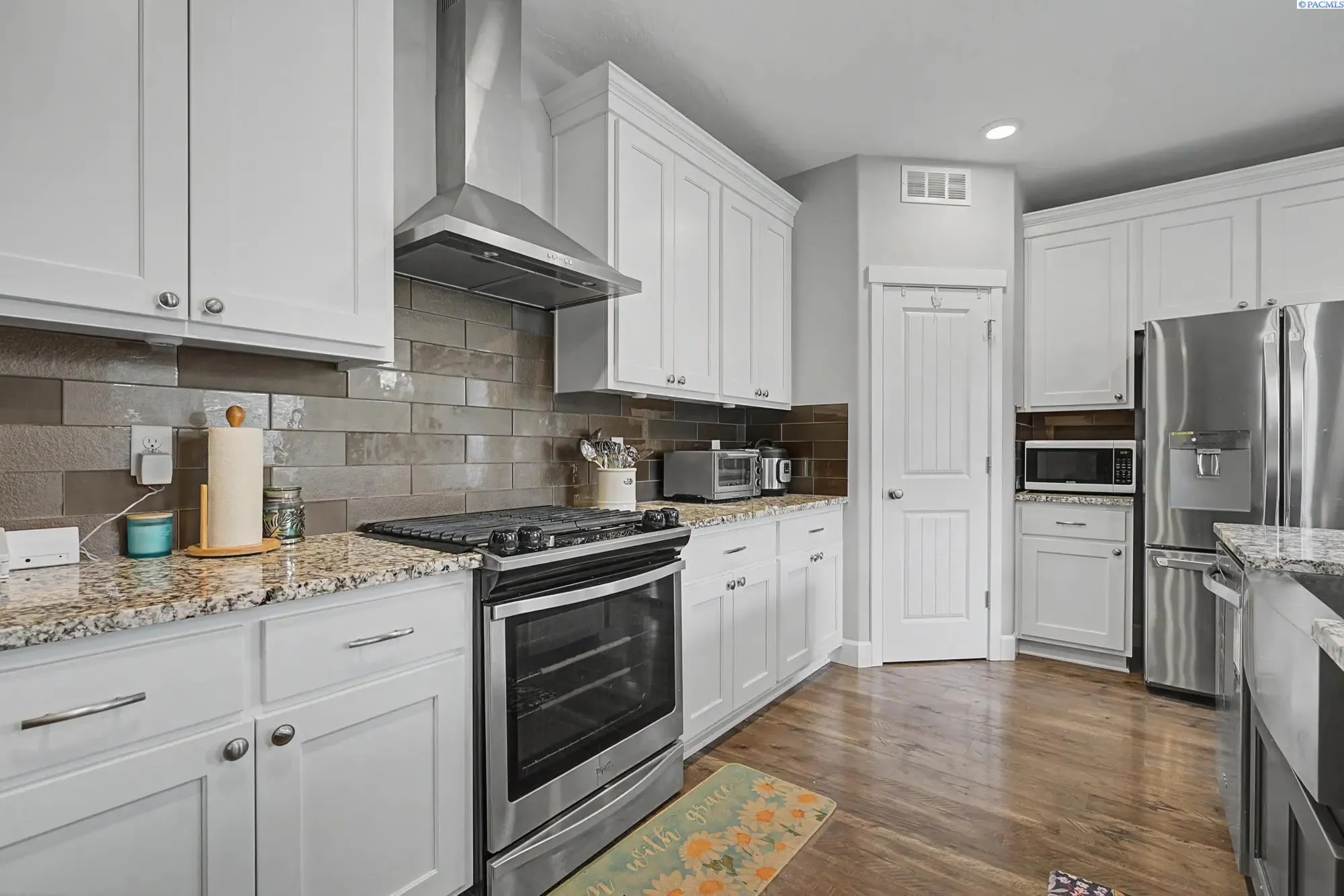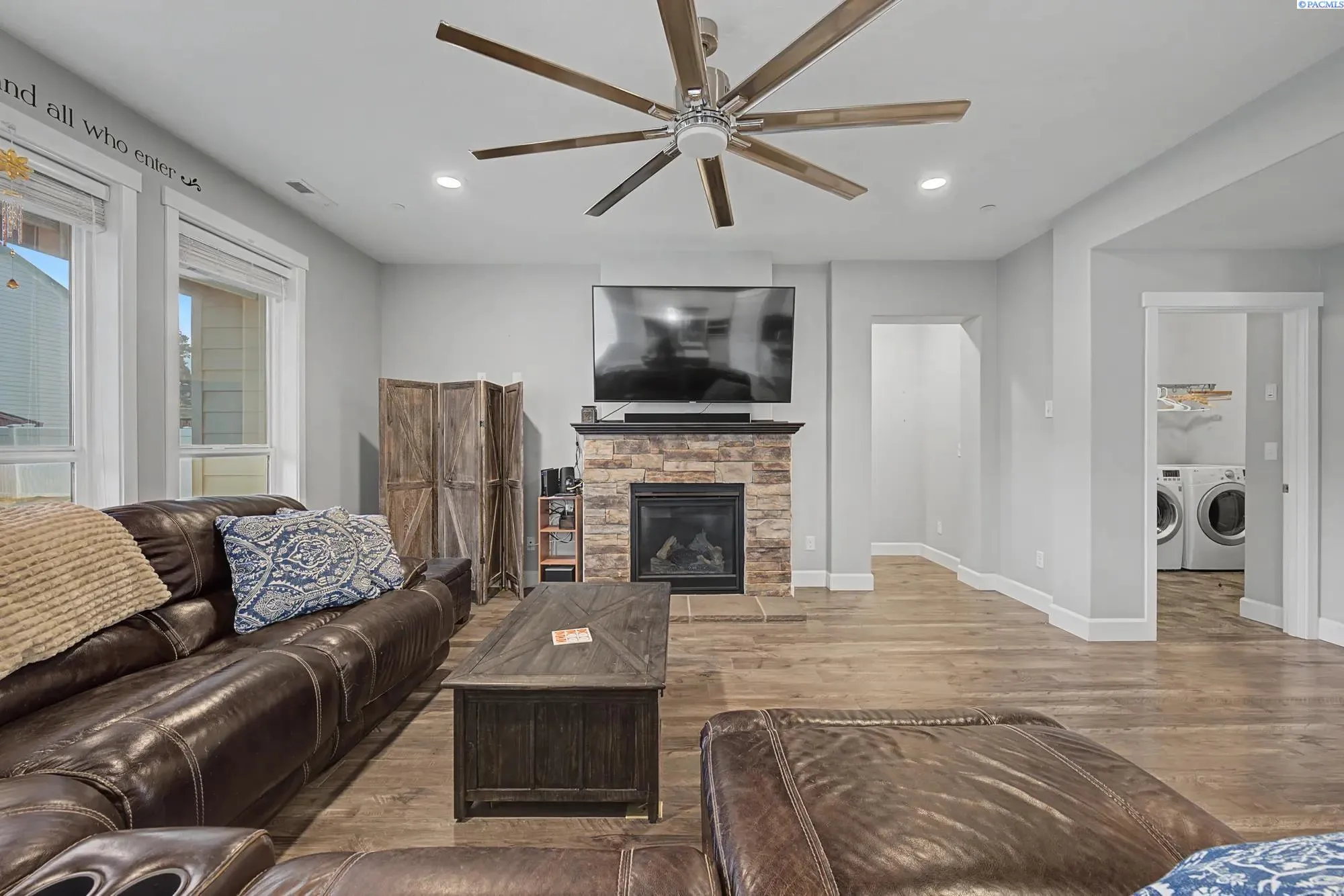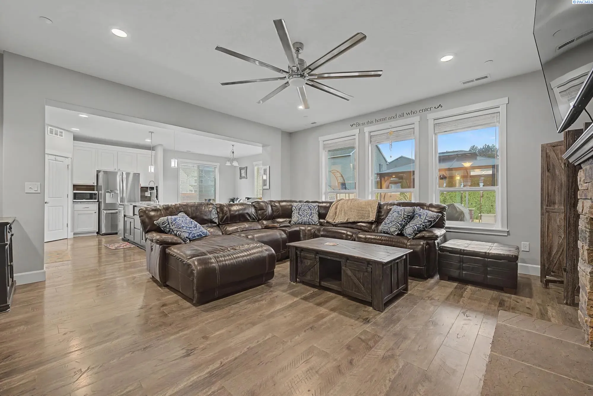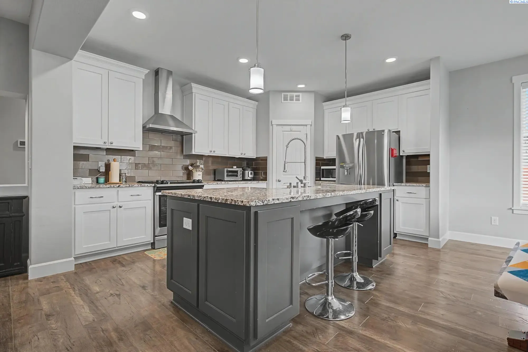 MLS# 290674 Welcome to this stunning one-story rambler located in the highly desirable Southridge area of Kennewick, one of the fastest-growing communities in the Tri-Cities. This 3-bedroom, 2-bath home with a spacious two-car garage offers a perfect blend of comfort, design, and functionality.As you enter, you’re welcomed by a wide, inviting entryway and a thoughtfully designed layout that provides separation between the secondary bedrooms and the primary suite for added privacy. The home features beautiful LVP flooring throughout, creating a modern and cohesive feel.The open-concept living space is bright and spacious, enhanced by gorgeous lighting throughout the home and triple-pane windows in the living room and abundant natural light. The kitchen is a true centerpiece, featuring a large island perfect for entertaining, elegant pendant light fixtures above the island, stylish cabinetry, and a beautiful range hood that adds a custom touch.The primary suite offers a relaxing retreat. The spa-like primary bathroom includes a soaking tub, a beautiful walk-in shower, custom cabinetry, and a spacious dual vanity.Step outside to a fully fenced backyard complete with concrete patio space — perfect for entertaining, relaxing, or creating your own outdoor oasis. The property also includes installed gutters and ample space with potential for additional parking. This home truly combines modern finishes, thoughtful upgrades, and an incredible location in Southridge Kennewick — a rare opportunity you don’t want to miss.