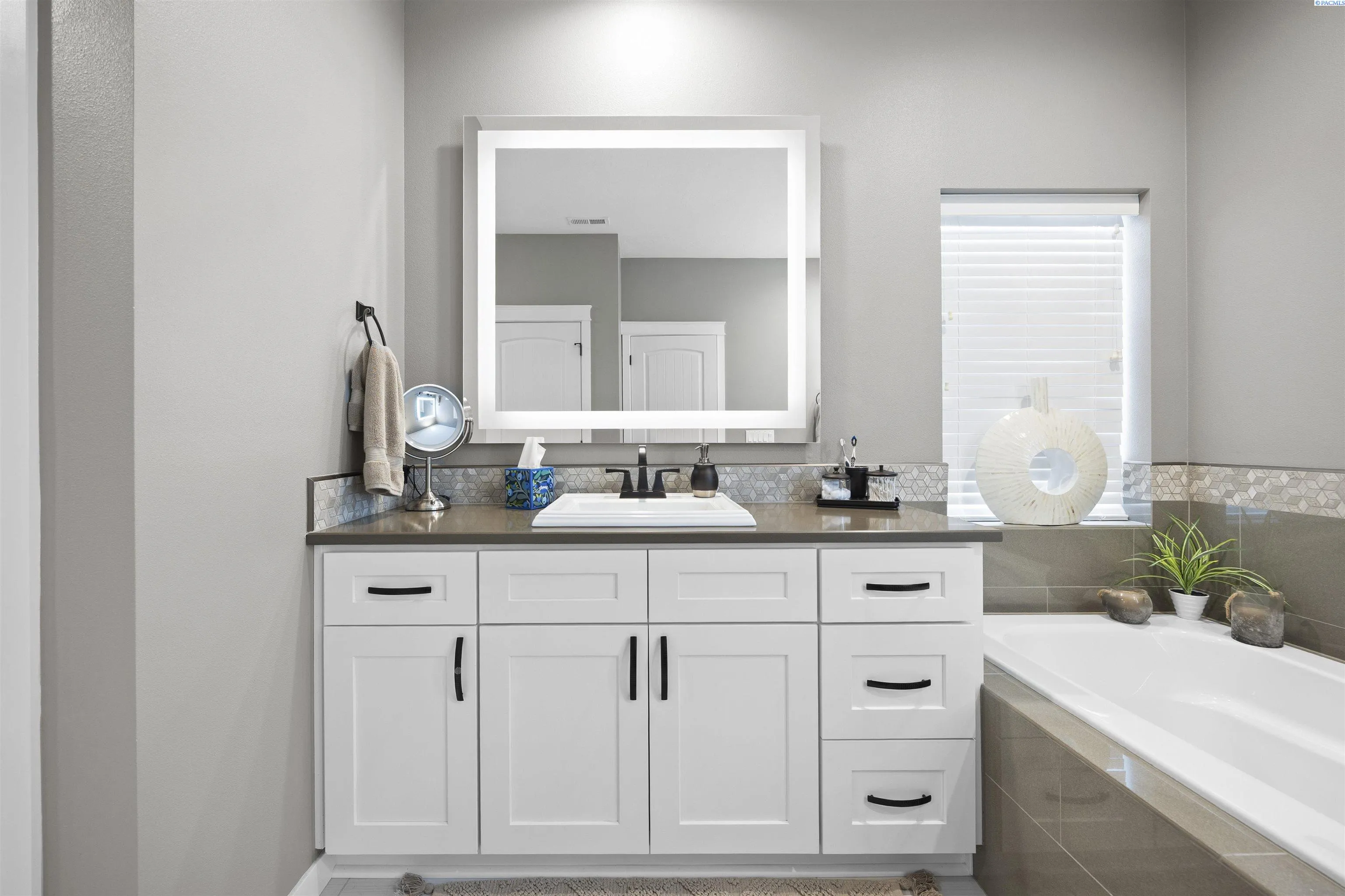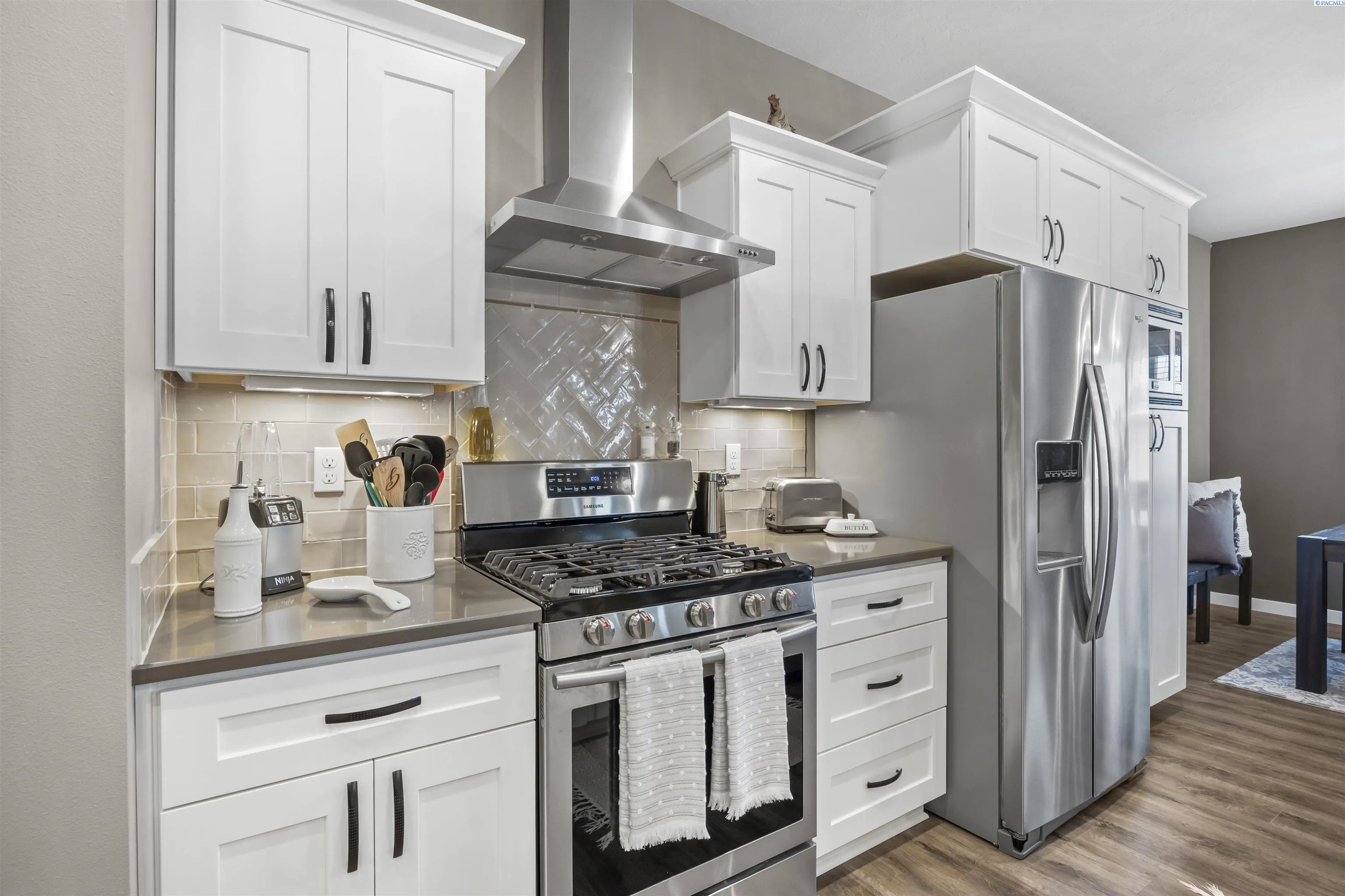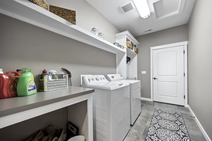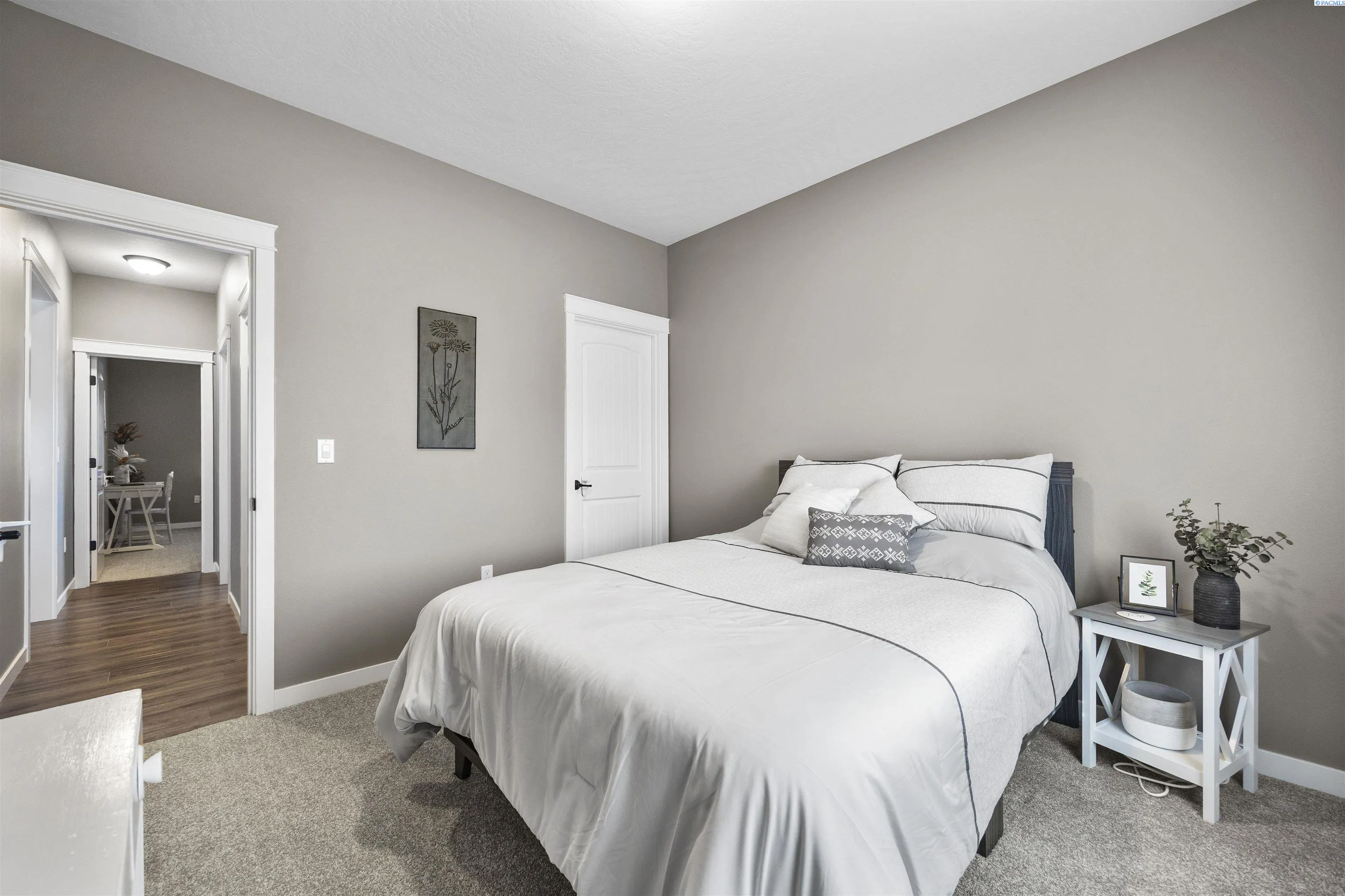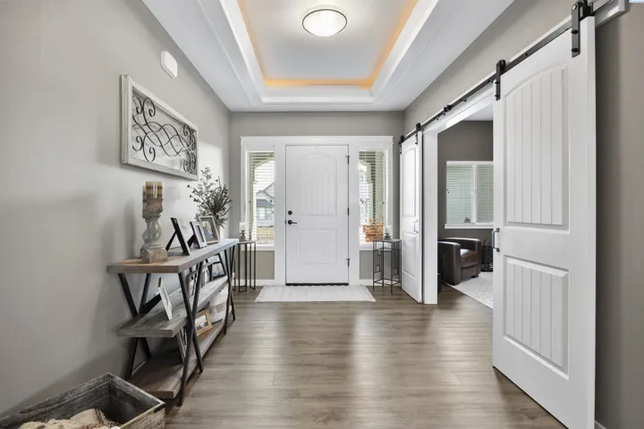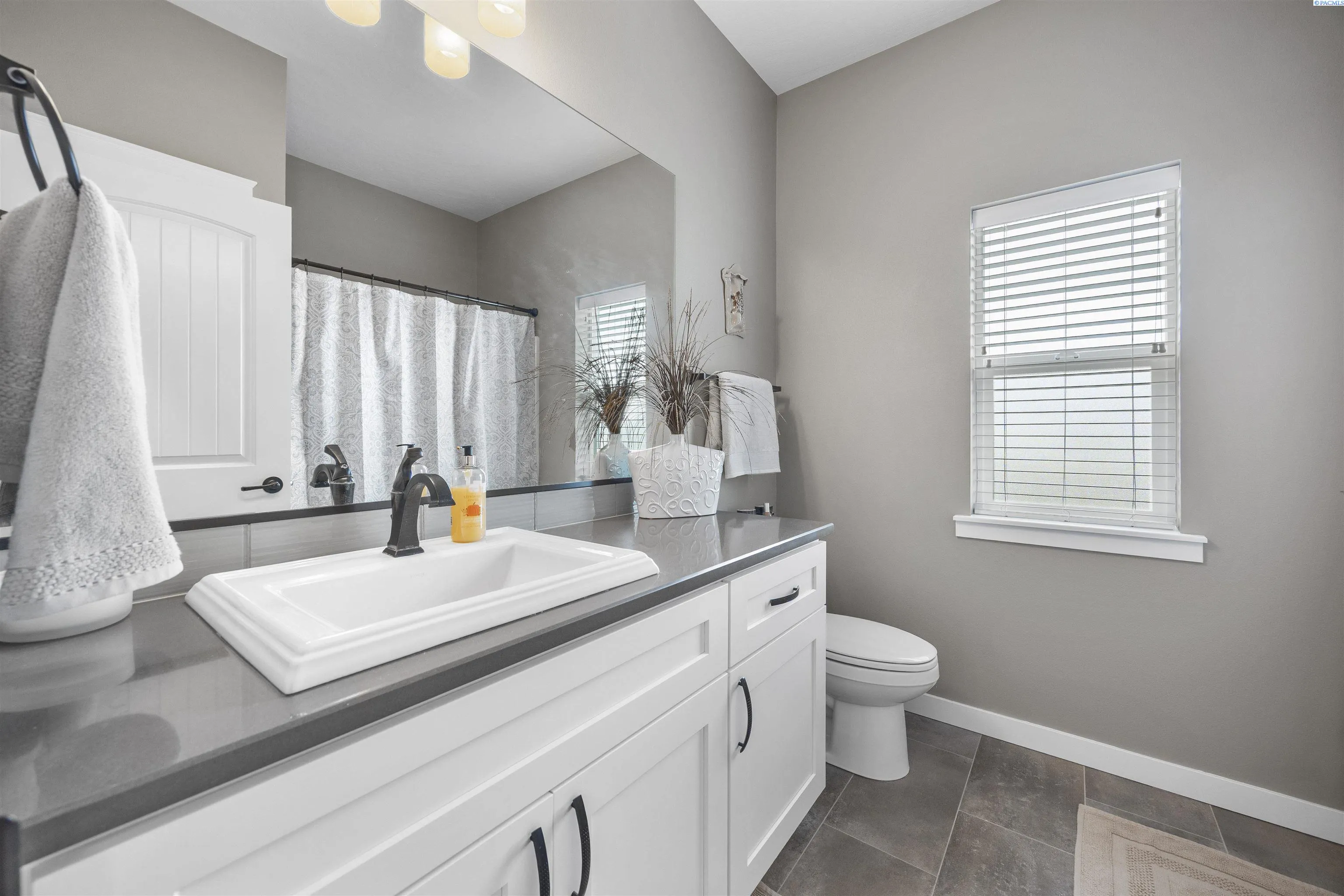 Your West Richland dream home awaits! Nestled in the beautiful Sunset Heights neighborhood, this stunning single-level home offers inviting curb appeal from the moment you arrive. With 2,242 sq ft of thoughtfully designed living space, this home features 4 bedrooms and 2 bathrooms in a spacious open-concept layout. As you step inside, you’re welcomed by a striking coffered ceiling, beautiful laminate wood flooring in the foyer, and a private den/office tucked behind a stylish barn door—perfect for a quiet work-from-home retreat. The great room is truly impressive, showcasing a dramatic detailed ceiling, a gorgeous gas fireplace, and abundant natural light that fills the space. The seamless open design creates an ideal setting for both everyday living and entertaining. The kitchen is a showstopper, complete with a large two-tier island with raised breakfast bar and apron-front sink, quartz countertops, a beautifully tiled backsplash, white cabinetry, stainless steel appliances with a gas range, and a dedicated beverage area featuring a wine chiller and wine rack. Just off the kitchen, the dining area offers lovely backyard views and direct patio access for effortless indoor-outdoor dining. The primary suite is a relaxing retreat with a tray ceiling, a generously sized custom closet, and a spa-inspired bathroom featuring dual vanities, a soaking tub, and an oversized tiled shower. Need space for hobbies, toys, or storage? The extra-large 6+ car garage provides incredible flexibility and room for projects. Situated on a .32-acre lot, the fully fenced backyard offers privacy with block fencing and two gates, a large covered patio, pristine landscaping with curbing, raised garden beds, a graveled area, and plenty of space for pets and play. Located in a wonderful West Richland setting near schools, parks, and fantastic amenities—this home truly checks all the boxes.