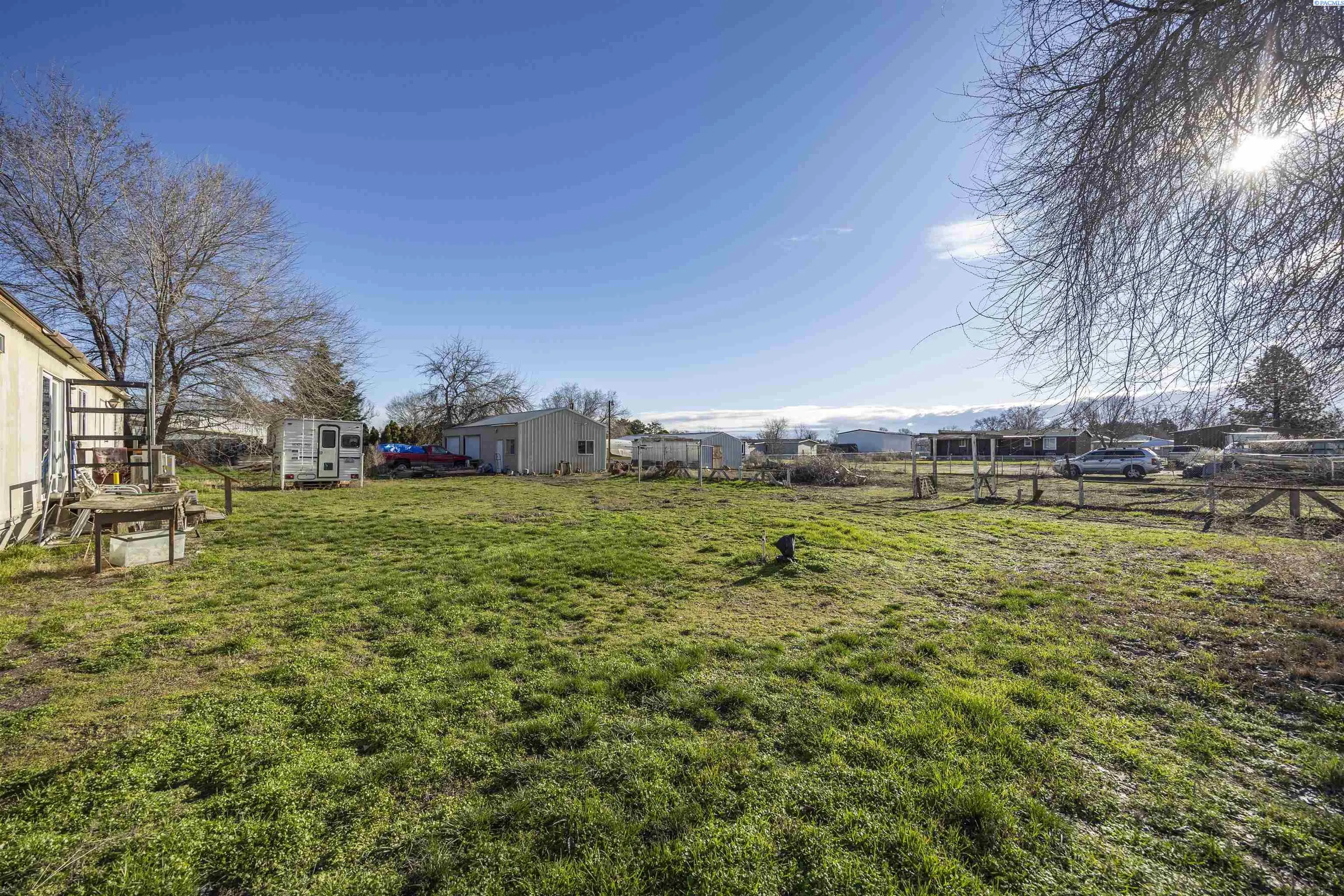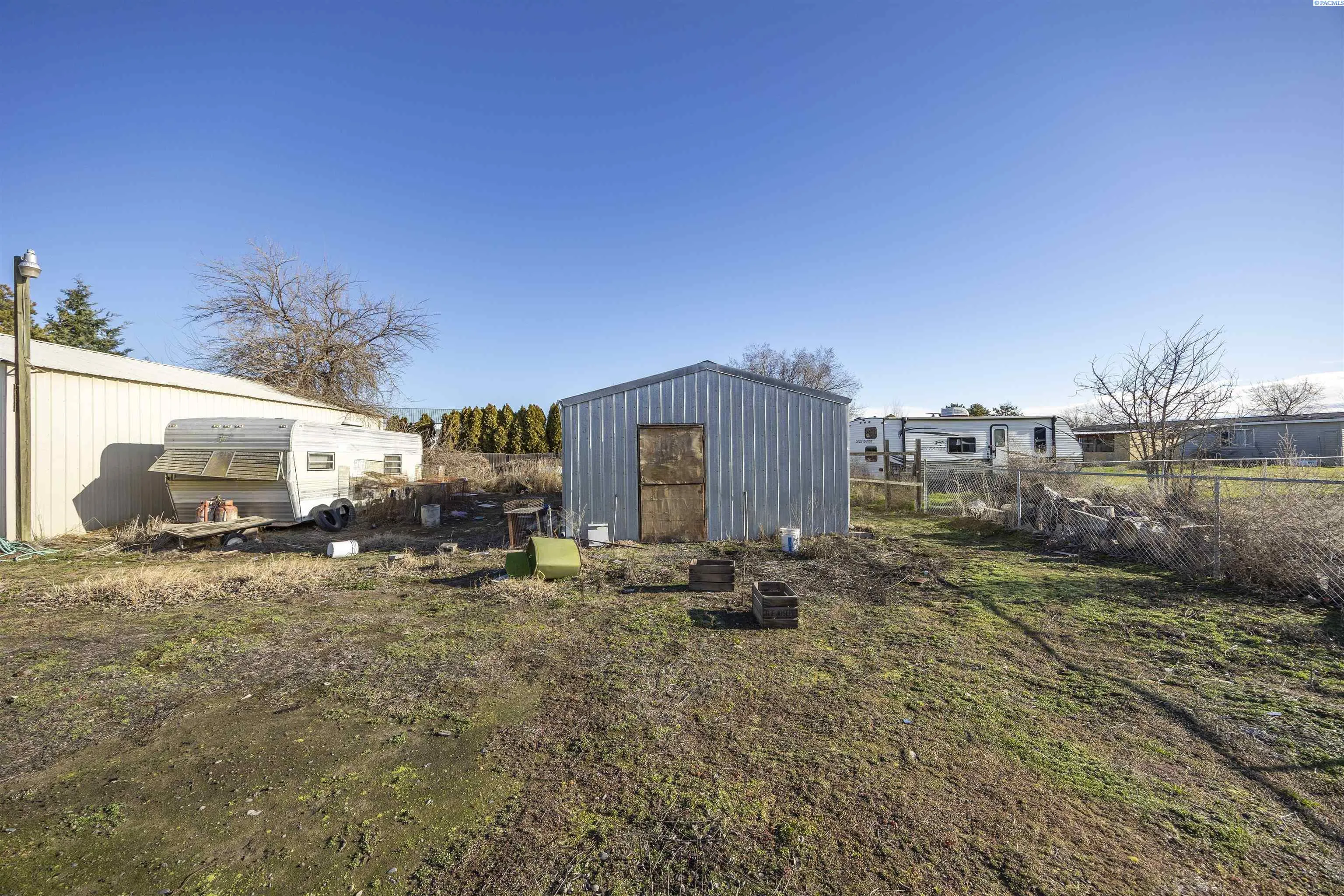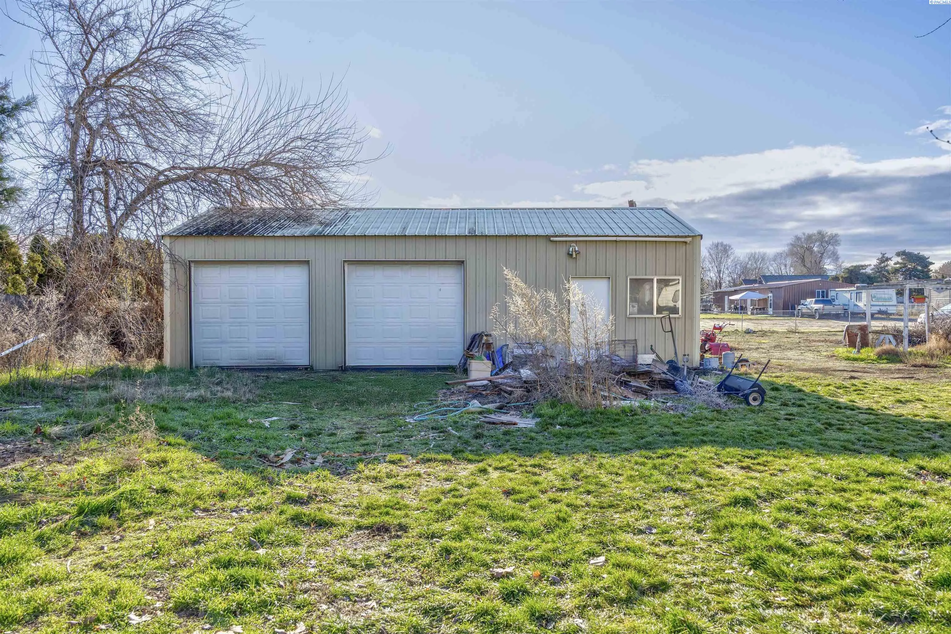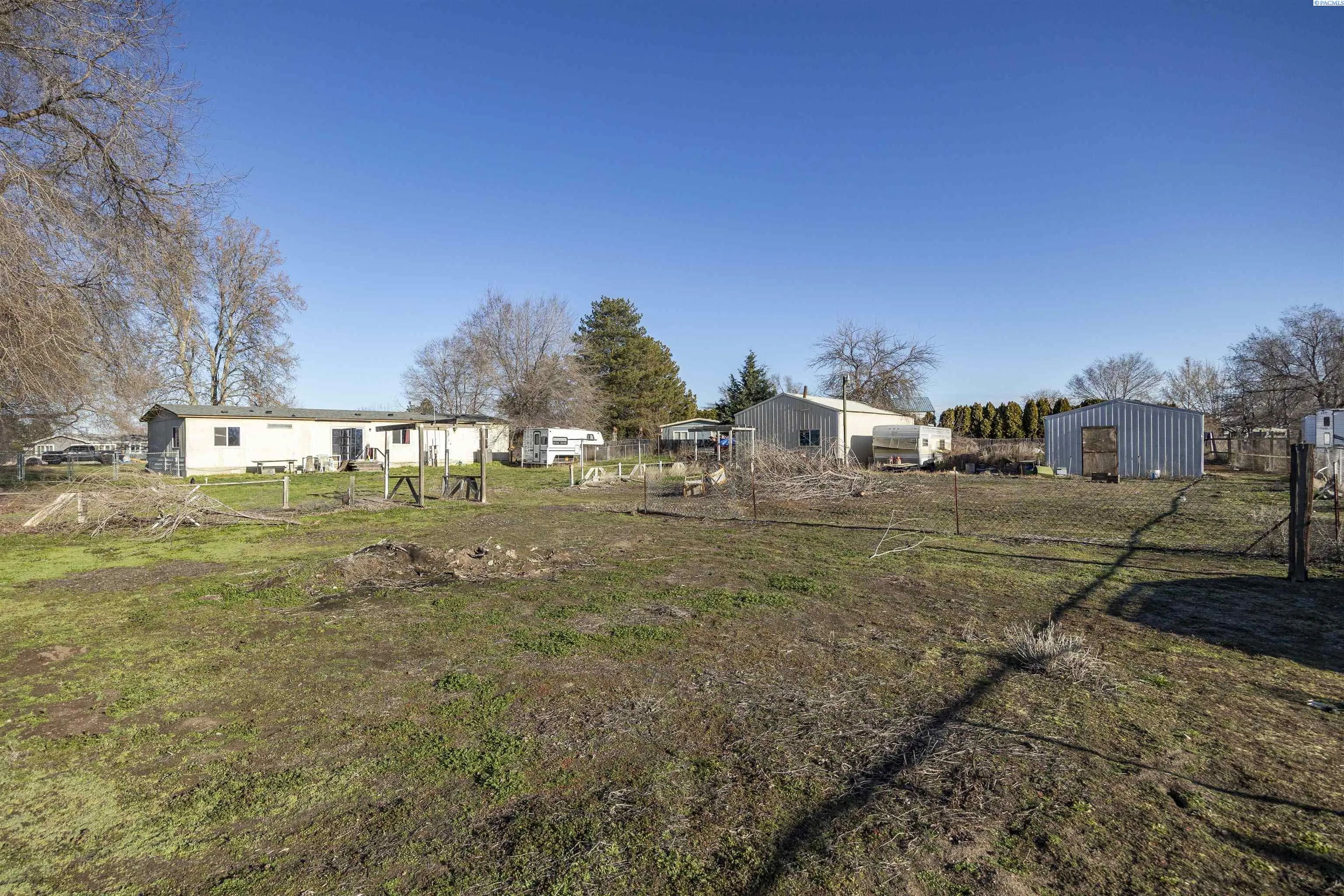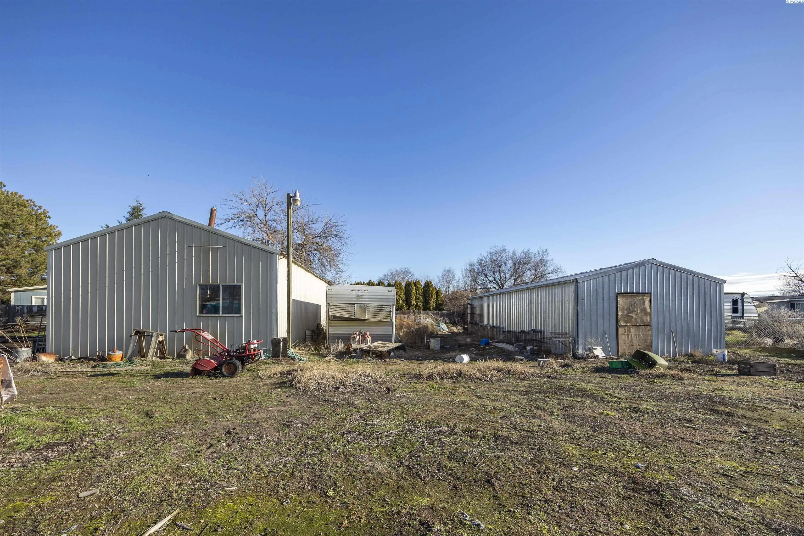 Welcome home to peaceful country living on over half an acre in Burbank! Situated on a spacious .54-acre lot, this property offers affordability, flexibility, and the opportunity to add your own personal touch. The 1,440 sq ft manufactured home features 3 bedrooms and 2 bathrooms with a functional layout. Enjoy a spacious living room with a large window that fills the space with natural light. The kitchen includes an island, abundant cabinetry, and plenty of counter space for meal prep, with an adjacent dining area and sliding glass door that leads to the backyard—perfect for indoor-outdoor living. The primary suite offers a private bath complete with a dual-sink vanity, soaking tub, and separate shower. All bedrooms feature generously sized closets, and a laundry room with storage cabinets and a utility sink adds convenience and practicality. Outside, you’ll find a fully fenced front yard ideal for pets and play, mature shade trees, ample off-street parking, and room to garden or expand. The large shop provides excellent space for vehicles, hobbies, or storage, along with an additional outbuilding that could serve as a workshop for your next project. Located just on the outskirts of town, you’ll enjoy a quiet country feel while still being close to downtown Burbank amenities. This home is being sold as-is, presenting a wonderful opportunity for buyers with vision. With a few updates and personal touches, this property holds incredible potential to become the home you’ve been waiting for.