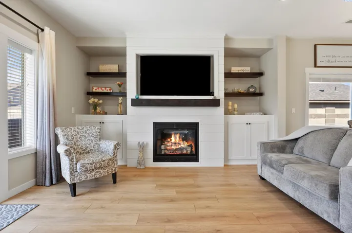 Welcome to this beautiful West Village home in highly desirable South Richland. This thoughtfully designed residence blends modern elegance with warm farmhouse charm. Featuring 4 bedrooms, 3.5 bathrooms, and a spacious upstairs bonus room, the flexible layout offers comfort and versatility, including a double primary suite ideal for multi generational living or guest accommodations. High end finishes throughout include custom kitchen island, a breakfast bar, wet bar with wine cooler, soft close cabinetry, gas appliances, and beautiful quartz countertops throughout. Luxury vinyl plank flooring, designer lighting, and a 2 car garage complete this well appointed home.
