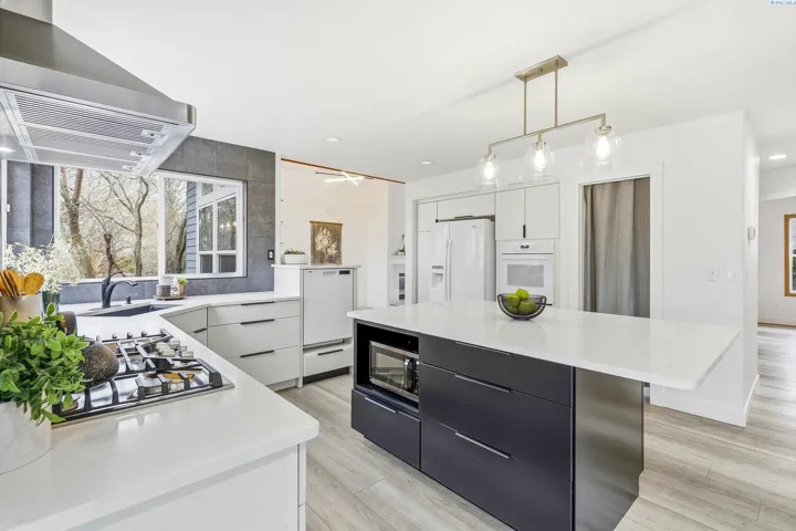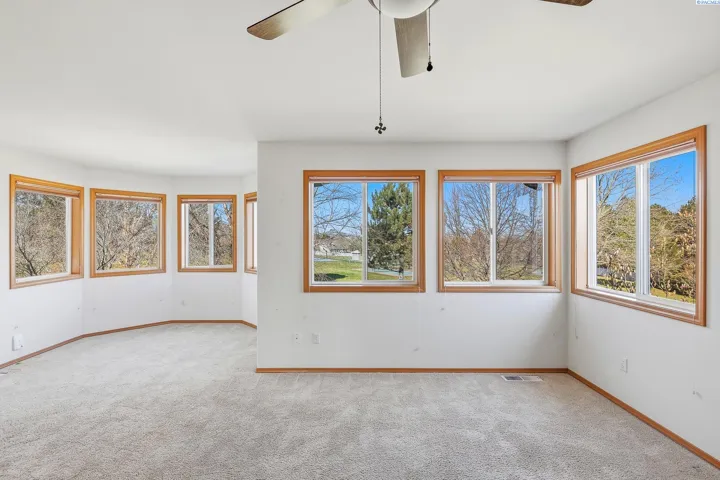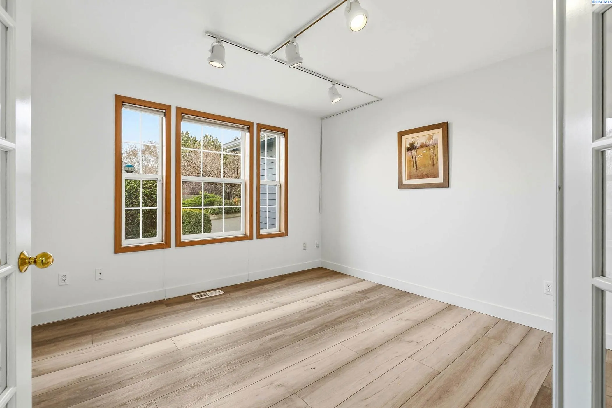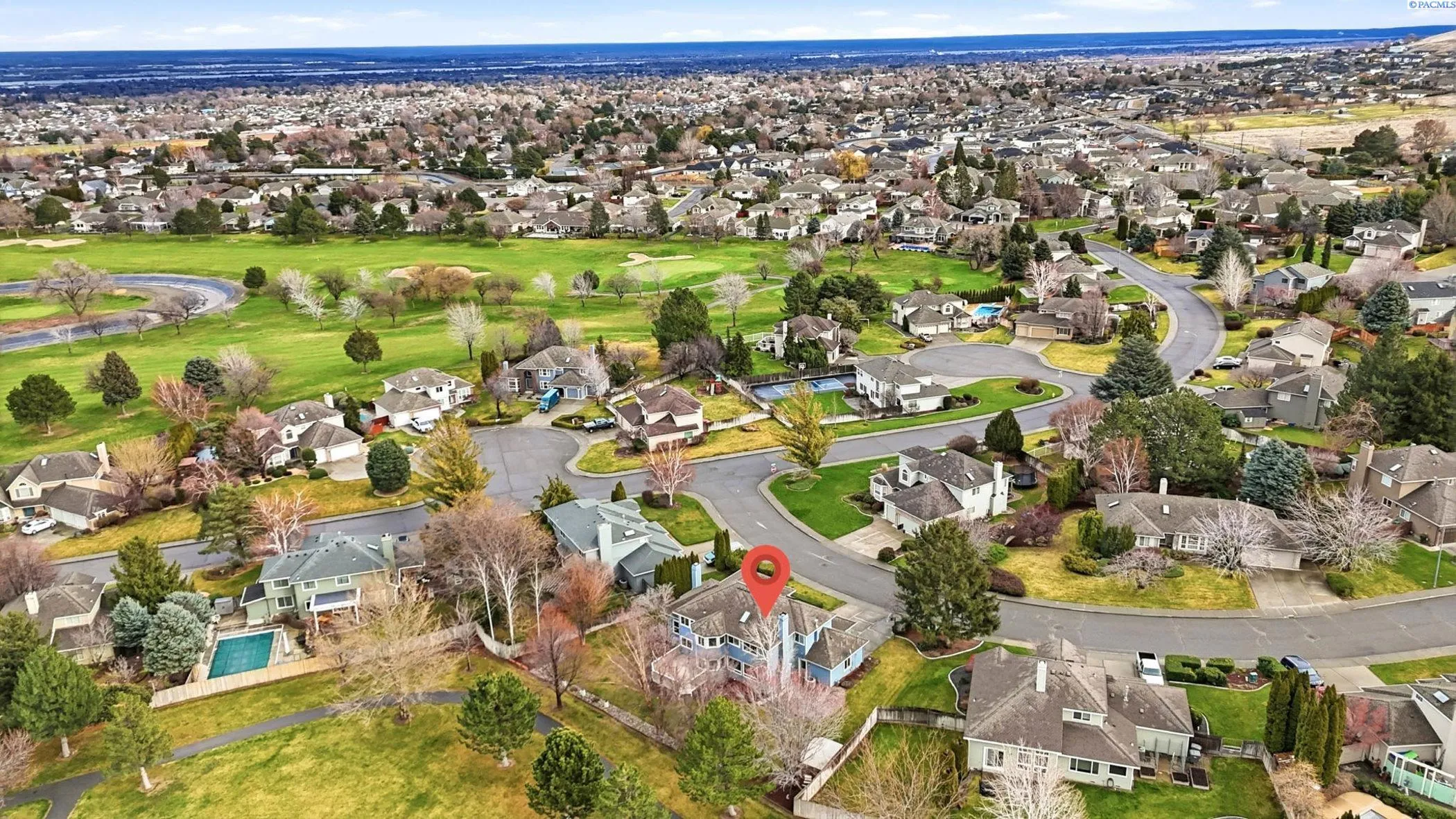 MLS# 290613 Welcome to this beautifully maintained 2,640 sq ft home in the highly sought-after Canyon Lakes golf community—where space, functionality, and an unbeatable backyard setting come together.Built in 1992 and lovingly cared for by only two owners, this home offers a rare and special location: the backyard opens directly onto the sprawling lawns and trees of Canyon Lakes Park. Enjoy the expansive feel of your yard flowing seamlessly into green space, without the worry of stray golf balls. The park provides pickleball and basketball courts, walking paths, a playground, and wide-open areas to play, relax, bike, or walk the dog.Inside, the layout is both spacious and functional. The main level features two living areas, formal and informal dining spaces, and a dedicated office—ideal for remote work or a quiet retreat. Vaulted ceilings add to the open, airy feel.The recently remodeled kitchen shines with new cabinetry, updated countertops, and modern lighting. A standout design, thoughtfully inspired by a formative Parade of Homes experience, is the elevated dishwasher, making loading and unloading more comfortable.Storage is abundant throughout the home, including full wall cabinets, a walk-in pantry with room for small appliances and bulk storage, and additional under-stair storage accessed through a hidden passageway—a practical and fun bonus space.Upstairs, all bedrooms are conveniently located on the same level. The home features three bedrooms plus a spacious bonus room, providing flexibility for family, guests, hobbies, or a media room. There are three bathrooms total: two full baths upstairs and a half bath on the main level.Outside, the expansive yard offers multiple seating areas, gardens, and established fruit plants – perfect for entertaining, relaxing, or cultivating your own harvest. The three-car garage provides ample room for vehicles, a golf cart, bikes, tools, and storage. A stand alone laundry room adds everyday convenience.This is a rare opportunity to enjoy space, privacy, and community amenities. On your quiet street with peaceful neighbors, you’ll enjoy incredible sunsets from the largest backyard in Kennewick!