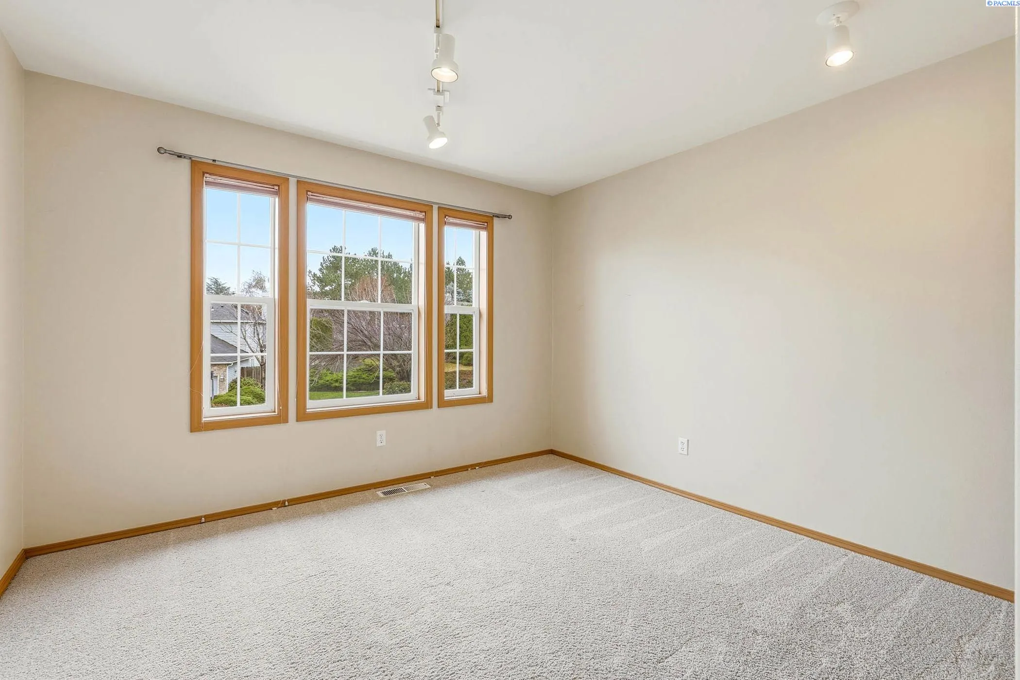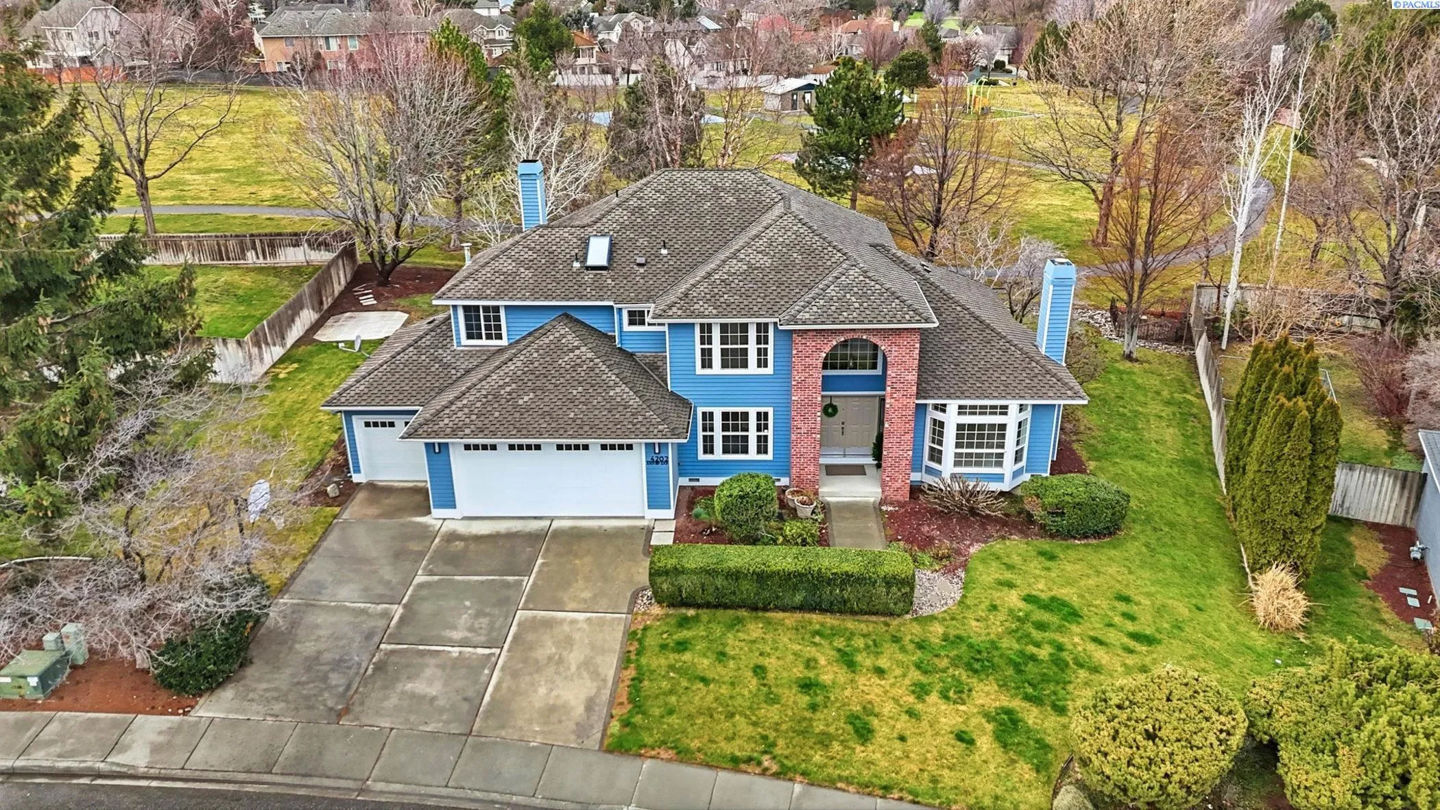MLS# 290613 Welcome to this beautifully maintained 2,640 sq ft home in the highly sought-after Canyon Lakes golf community—where space, functionality, and an unbeatable backyard setting come together.Built in 1992 and lovingly cared for by only two owners, this home offers a rare and special location: the backyard opens directly onto the sprawling lawns and trees of Canyon Lakes Park. Enjoy the expansive feel of your yard flowing seamlessly into green space, without the worry of stray golf balls. The park provides pickleball and basketball courts, walking paths, a playground, and wide-open areas to play, relax, bike, or walk the dog.Inside, the layout is both spacious and functional. The main level features two living areas, formal and informal dining spaces, and a dedicated office—ideal for remote work or a quiet retreat. Vaulted ceilings add to the open, airy feel.The recently remodeled kitchen shines with new cabinetry, updated countertops, and modern lighting. A standout design, thoughtfully inspired by a formative Parade of Homes experience, is the elevated dishwasher, making loading and unloading more comfortable.Storage is abundant throughout the home, including full wall cabinets, a walk-in pantry with room for small appliances and bulk storage, and additional under-stair storage accessed through a hidden passageway—a practical and fun bonus space.Upstairs, all bedrooms are conveniently located on the same level. The home features three bedrooms plus a spacious bonus room, providing flexibility for family, guests, hobbies, or a media room. There are three bathrooms total: two full baths upstairs and a half bath on the main level.Outside, the expansive yard offers multiple seating areas, gardens, and established fruit plants – perfect for entertaining, relaxing, or cultivating your own harvest. The three-car garage provides ample room for vehicles, a golf cart, bikes, tools, and storage. A stand alone laundry room adds everyday convenience.This is a rare opportunity to enjoy space, privacy, and community amenities. On your quiet street with peaceful neighbors, you’ll enjoy incredible sunsets from the largest backyard in Kennewick!