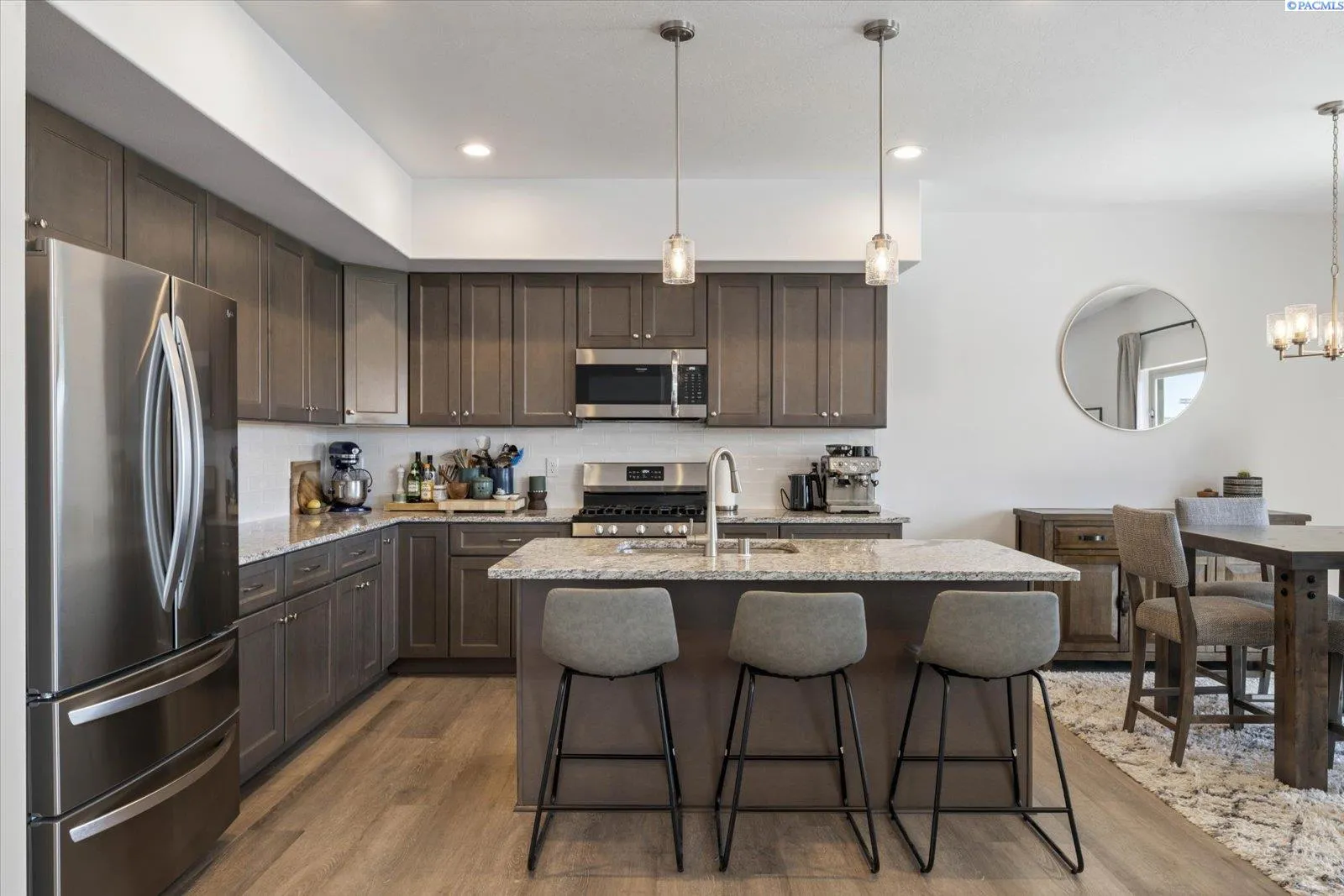 Preferred lender offering up to $2500.00 towards lender costs upon approval. Nothing to do, just move in & start relaxing on the extended patio (33’x8′) with the southern views! The kitchen has stainless steel appliances, cabinets with soft close drawers and doors, a pantry & the island all make preparing home cooked meals for family or entertaining enjoyable. The family/great room is a perfect open space off the kitchen & dining nook for all your gatherings, holiday, business or those special sports events. Three spacious upstairs bedrooms include a master suite to relax in when you call it a night with a walk in closet (8’6″x 6’7″) and master bathroom. The laundry room(6×6’9″) is conveniently located upstairs with all the bedrooms. The back and front yards are professionally landscaped, arranged with minimal flowers, shrubbery, curbing and gravel with an extra storage place behind the fence for boat, RV or trailer parking. The finished 3 car garage has extra space and storage with 2 garage openers. There is also a tankless hot water heater that allows everyone to have hot water even while doing laundry or dishes! The location is ideal, so close to schools, parks, hospitals, doctors offices, restaurants, coffee shops, stores and highway entrances. Don’t miss this one, only two owners & lightly lived in with pride of ownership visible throughout. Buyer to verify all information.