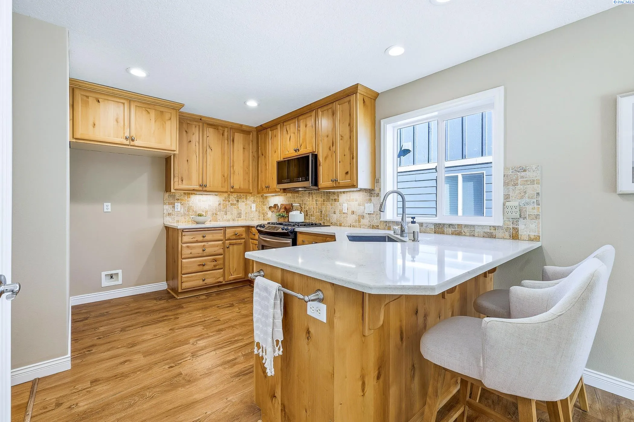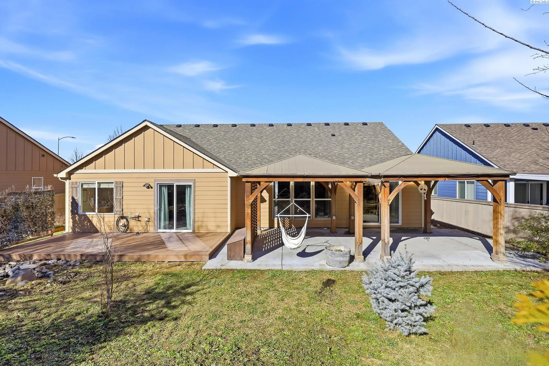 Welcome to your elevated retreat in the heart of Creekstone. Step inside and be greeted by vaulted ceilings and an airy open layout, anchored by a beautiful gas fireplace. The kitchen is a chef’s dream with elegant quartz countertops, a statement farmhouse sink, and a premium gas range. The dining space offers serene views of the backyard oasis. Every inch of the home has been refreshed with new carpet and paint. The luxurious primary suite features a spa-like jetted tub, tranquil pond views, and spacious his and her walk-in closets. Outside, enjoy a fully fenced yard, two garden areas, a covered patio, and a spacious Trex deck of the primary suite. To top it off, a home warranty is included. Shedule your private tour today!