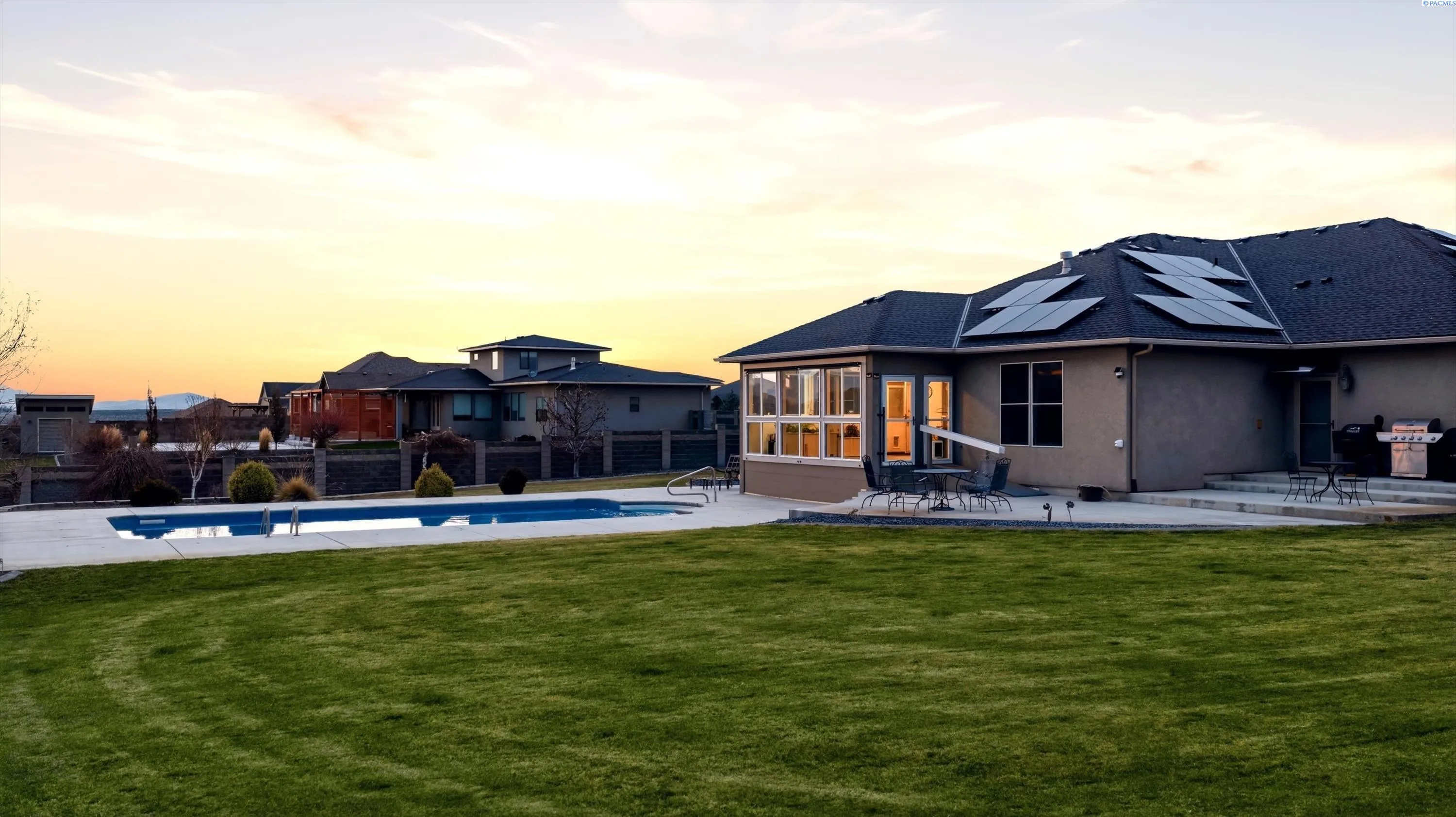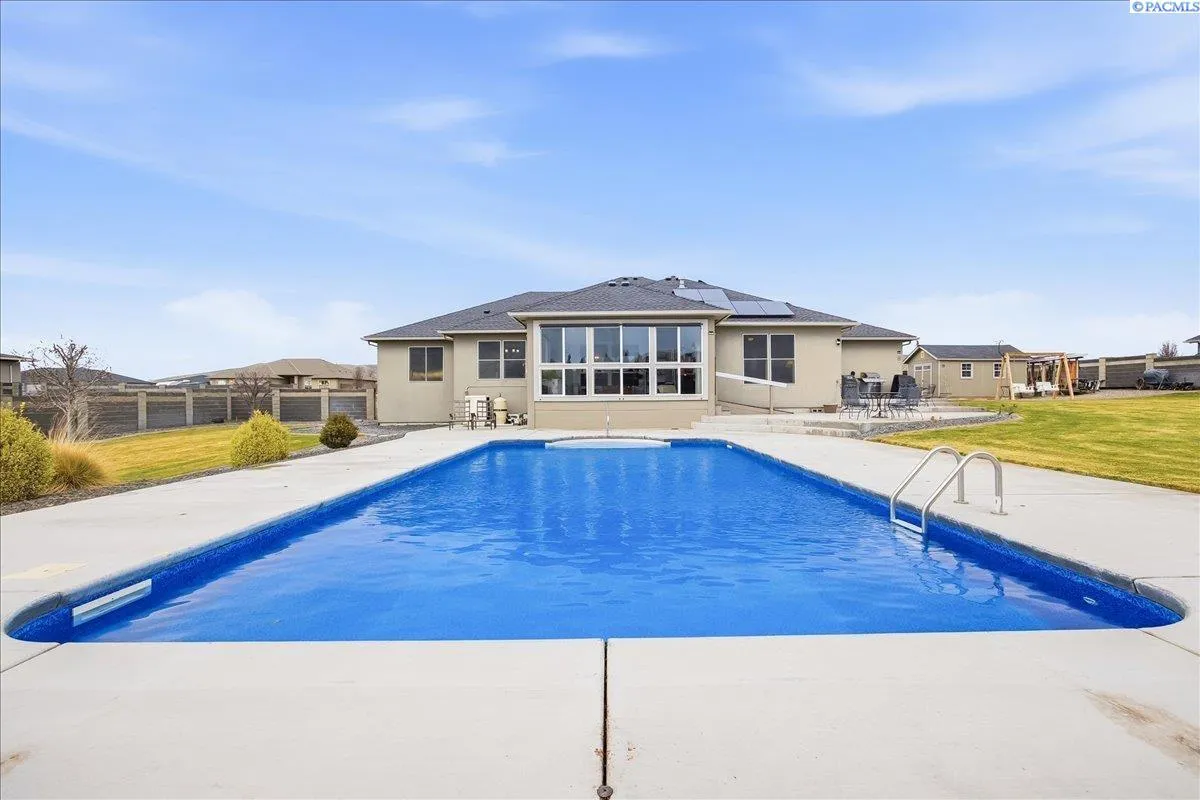 MLS#290578 Welcome to 74203 E Reata Rd. -Here is your chance to own a beautiful slice of country living on .75 Acres in the heart of Wine Country. Nestled on a spacious lot with beautiful sweeping views of the surrounding hills, and open skies you’ll fall in love with the sunsets and the morning sunlight on your enclosed covered sunroom overlooking your very own pool. Ready for the summer and opened. This stunning home has the perfect blend of privacy with the surrounding trees, and spacious lot that keeps going with yards on either side of the pool. As you step inside your entry way you have a large office, spare bedroom, or your very own walk-in closet room with built in shoe storage and custom clothing cabinets for all your clothes and purses. The living room has a propane fireplace and has an open concept living and kitchen perfect for entertaining guests for holidays or game nights. Abundant natural light, ample cabinets and space to cook that flows seamlessly into the dining and living areas. Two bedrooms off the Kitchen have their own full-size bathroom with a tub and shower. The primary bedroom is on the opposite side of the home with a beautiful relaxing bathroom with a walk-in shower, double vanity sinks, large walk in closet, and private loo. This home is perfect for outdoor entertaining with a sunroom that you can escape to rain or shine overlooking the stunning heated and cooled 6ft pool. Alarms on the doors that enter the pool area. You’ll love the BBQ area and seating areas for all your guests. Storage shed 10×16 with concrete tile, and a dog run for your pups. RV/boat parking with a gate. The four-car garage has an enormous workspace and built-in storage. The garage is insulated and has a brand-new mini split so you can have a home gym or workspace in your garage and stay comfortable all year long. Can’t forget to mention the brand-new roof with a 30-year warranty done in 2021. The front driveway wraps around in a loop so you can easily exit onto the roadway without having to back out. This home has it all. Including owned solar panels so you will have a very low electric bill. What a savings! The septic was recently pumped and inspected. HVAC Serviced twice a year on a schedule. Close to nearby wineries, quick access to the highway, minutes from shopping. You won’t want to miss this stunning home! Schedule your showing today before it is gone!