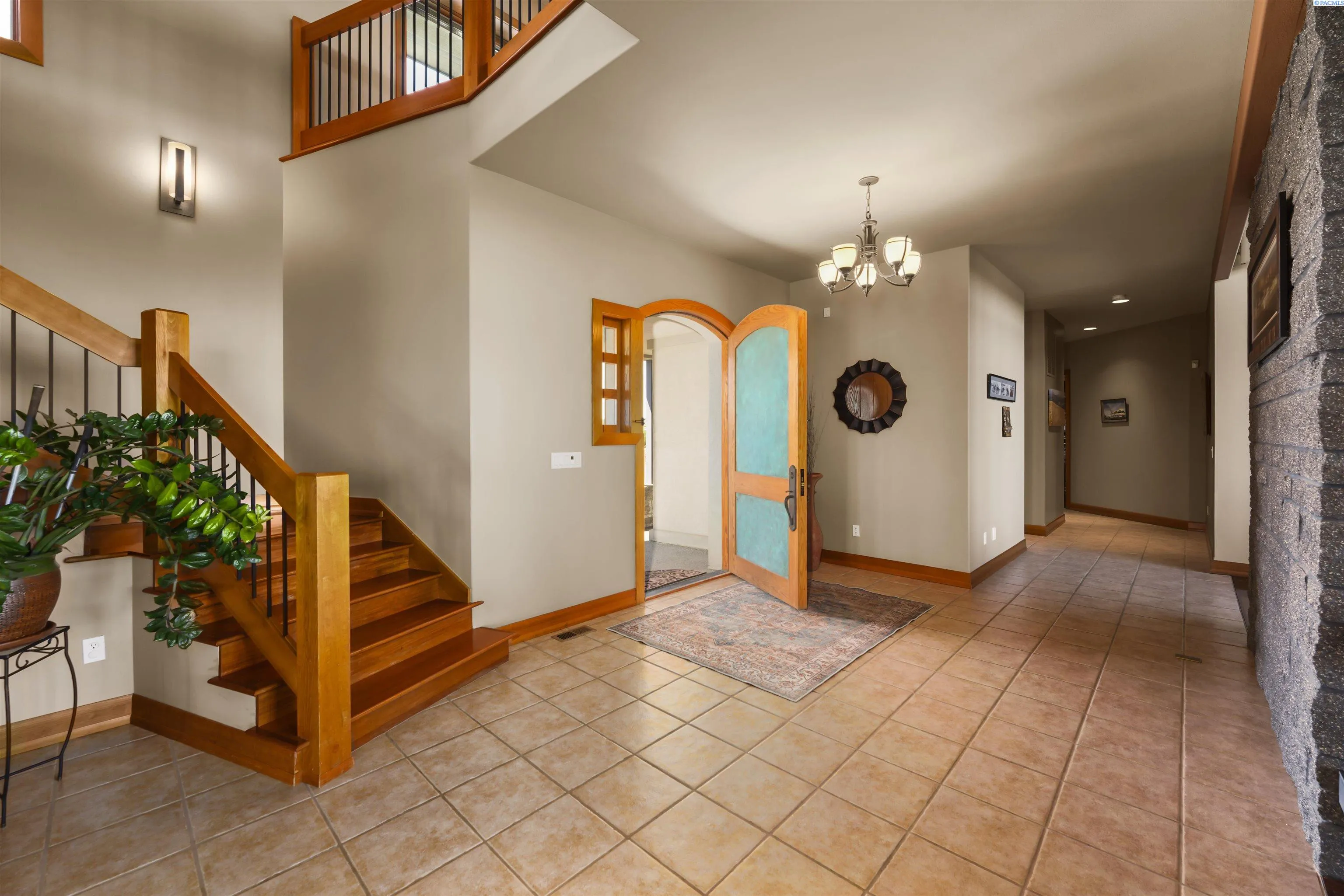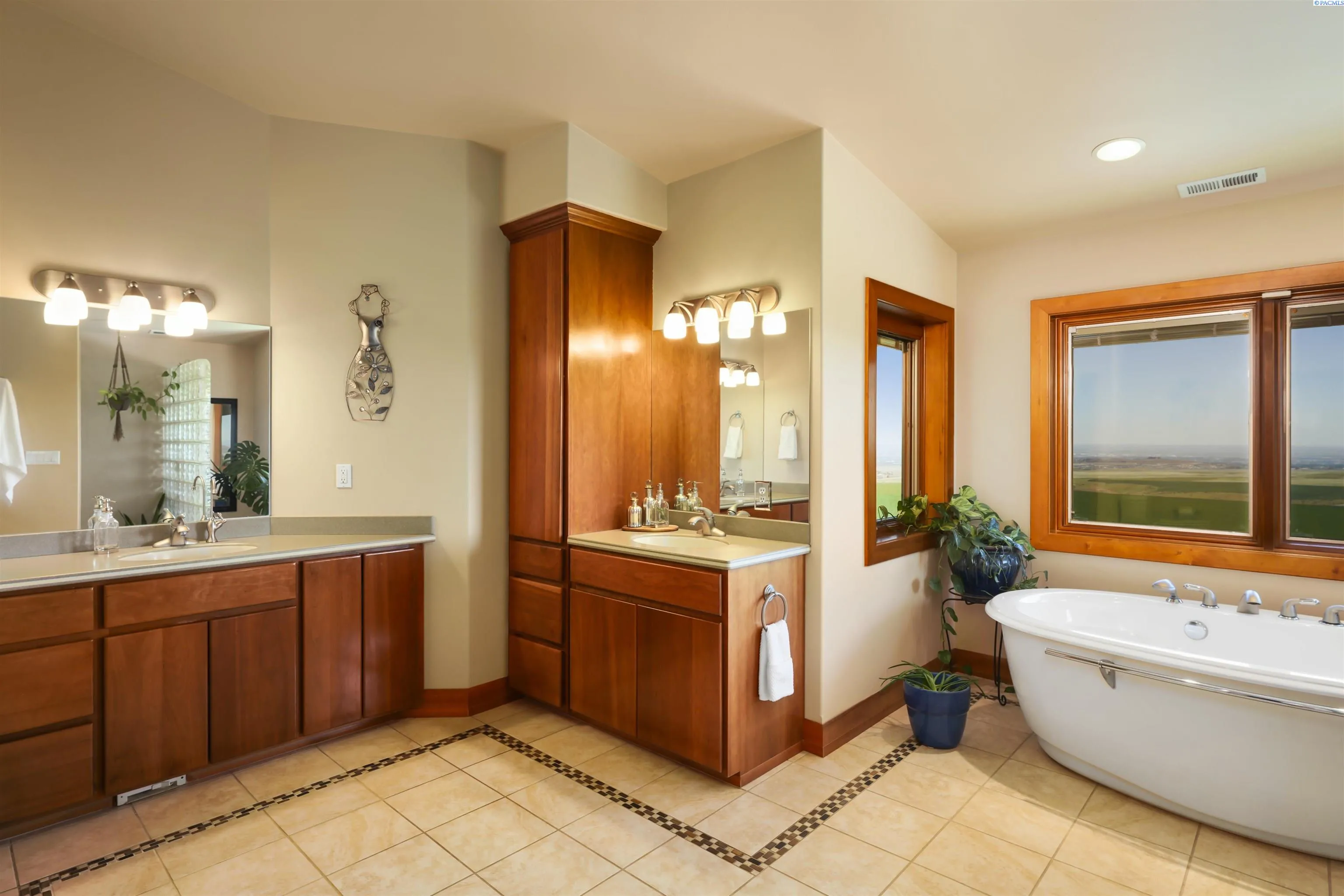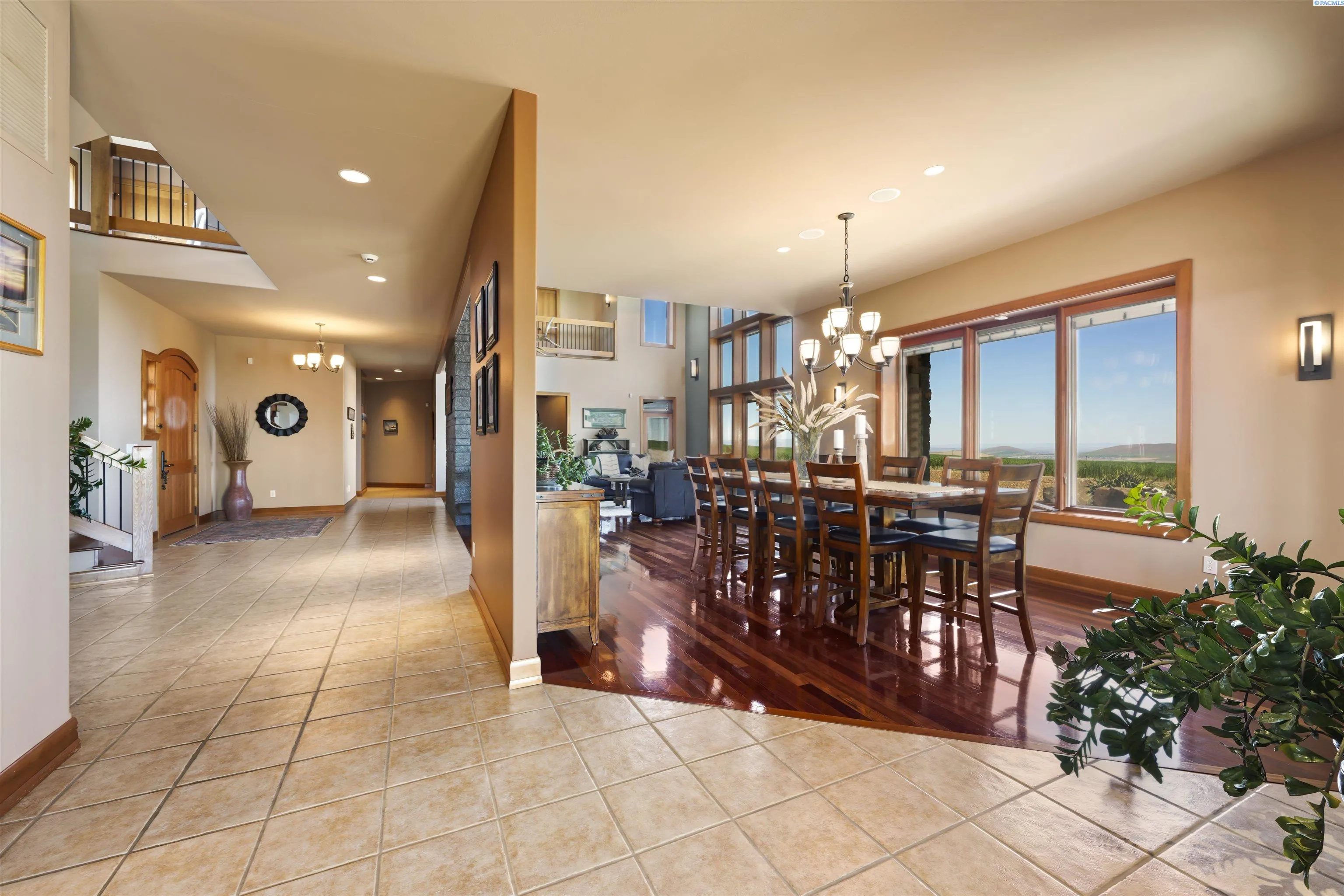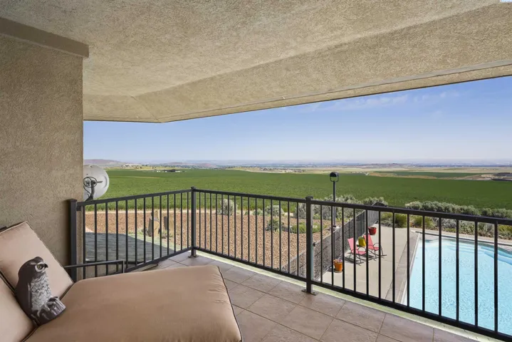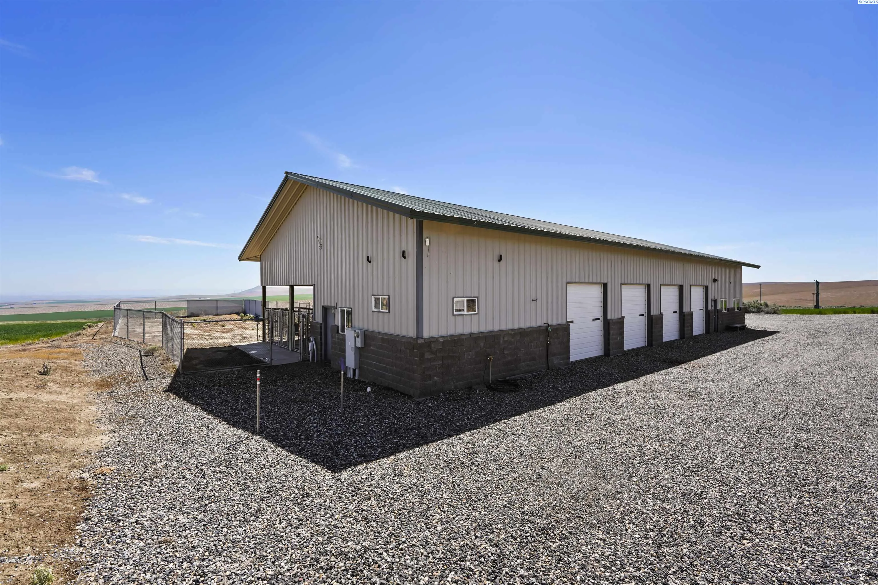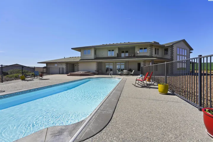 MLS# 284086 Discover Elevated Living at its Finest. Nestled atop the picturesque Horse Heaven Hills, surrounded by majestic wheat fields, this contemporary masterpiece offers unparalleled privacy and panoramic views. Envision waking up to the dramatic vistas through impressive Pella windows, where every day is graced with breathtaking sunrises, sunsets, and a daily parade of wildlife.Step through custom copper-inlaid doors into a world of luxury. The main level boasts a primary suite with a private entrance, while the upper floor hosts a second suite with a balcony and propane fireplace. Experience effortless accessibility with a three-stop elevator connecting all floors.Culinary dreams come alive in the spacious kitchen, featuring custom cherry cabinetry and premium stainless appliances, alongside a sophisticated wine bar. Enjoy cinematic experiences in the private media room or unwind in the massive den with exterior access. An open library with custom-built-ins overlooks the great room, adding a touch of elegance.Beyond the main residence, the estate boasts a 2,800 sq ft basement recreation area, heated fiberglass pool, hot tub, cabana, and a separate 1200 sq ft 2 bed 1 bath guest house. A 4,800 sq ft shop with 6 garage bays complete with bathroom and workshop. In the middle of approximately 50 acres of income-producing (leases in place) wheat fields complete this haven.Additional features include 7 bathrooms (5 in the main house), an automated wrought iron gated entrance, a security lighting system, geo-thermal floor heating, Kinetico water treatment systems in all buildings and more—all designed for the ultimate in luxury and comfort. Escape the city and embrace serenity. Schedule your private tour today to witness the harmony of nature and luxury living.