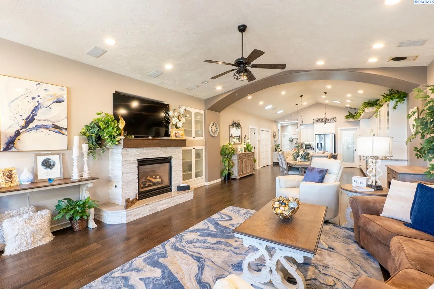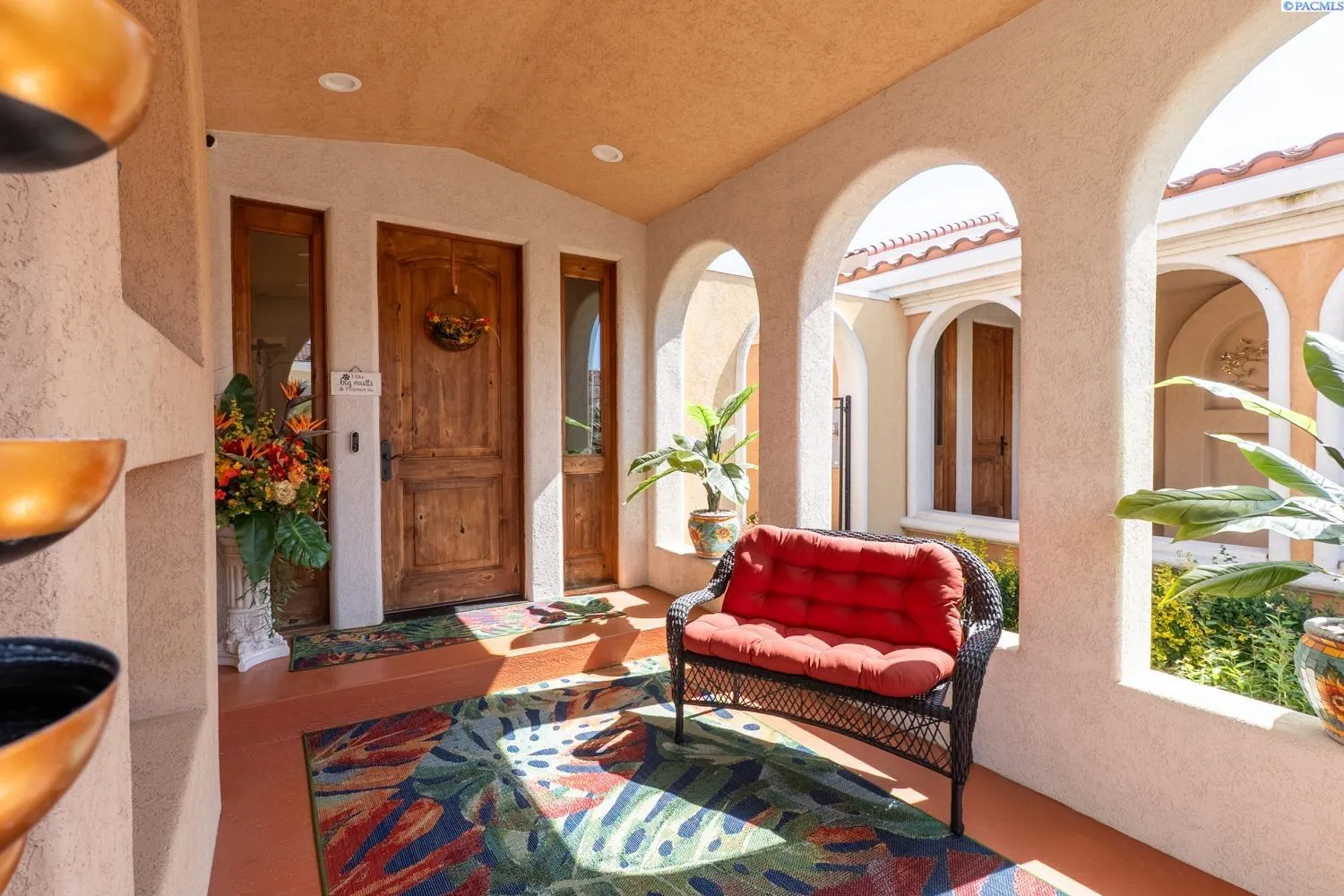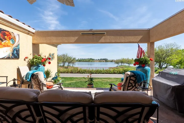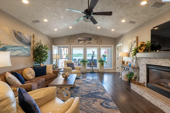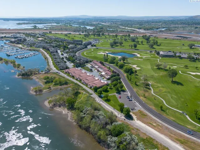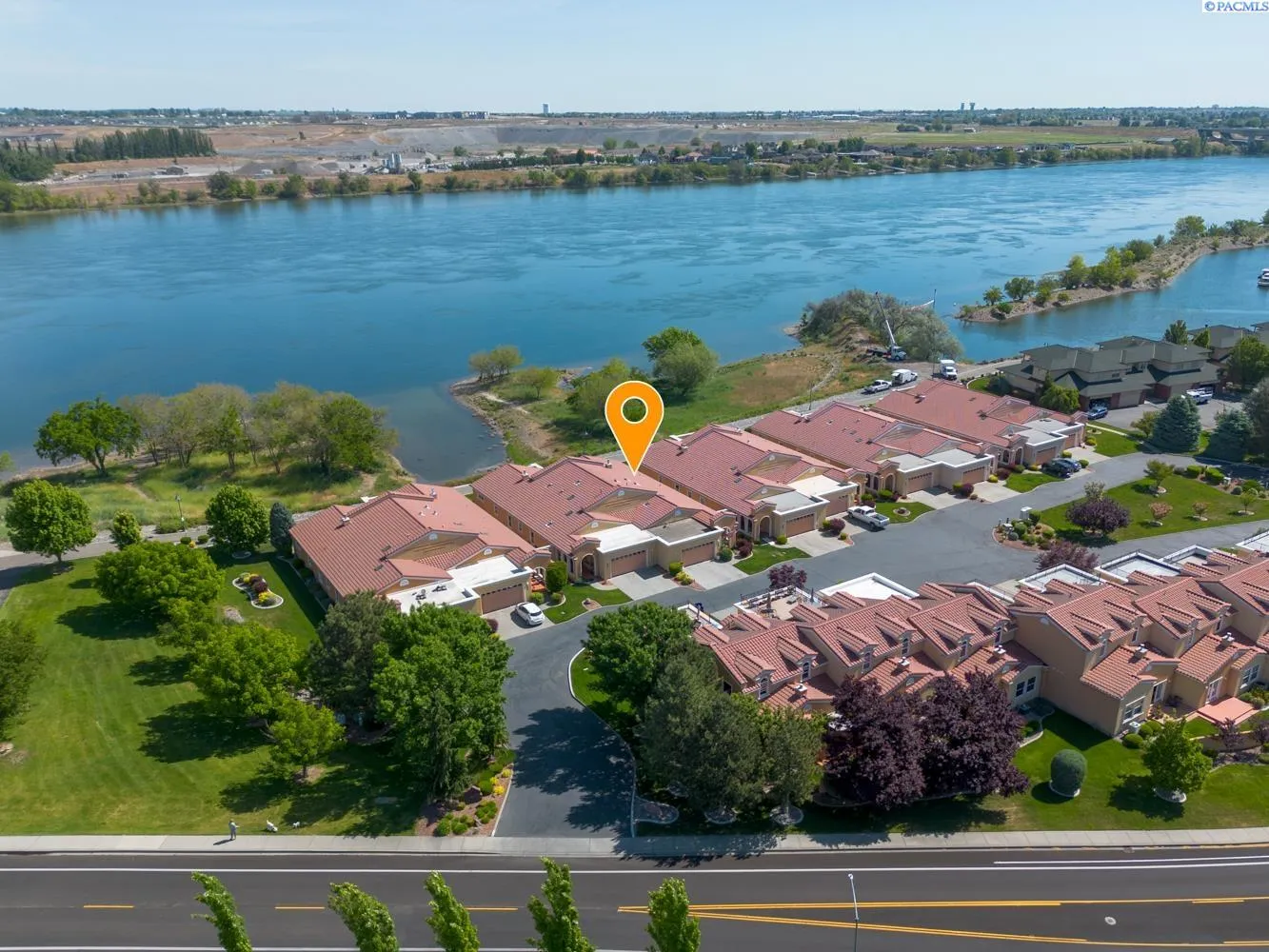 MLS# 284045 Experience sophisticated riverfront living in this stunning high-end condo within the coveted Marina Vista Estates at Columbia Point. Perfectly positioned along the Columbia River and bordering the Columbia Point Golf Course, this 3 BD 3 BA residence offers an extraordinary blend of elegance, comfort, and breathtaking views. Step into an open-concept great room where beautiful hardwood flooring flows throughout, and a wall of windows frames unobstructed views of the river. A cozy gas fireplace and remote-controlled Hunter Douglas blinds add both warmth and convenience to the living space. The gourmet kitchen is designed to impress with granite countertops, a stylish tiled backsplash, large island, and a spacious walk-in pantry—ideal for entertaining or everyday luxury. The expansive primary suite is a private retreat featuring patio door access, dual walk-in closets, dual vanities, a jetted soaking tub, and a separate walk-in shower. Enjoy outdoor living year-round on the back patio, thoughtfully outfitted with a Bromec 1600W infrared heater, natural gas hookup, gas fire table with under-mounted LED lighting, and Bluetooth-enabled weatherproof speakers—offering an unbeatable vantage point for river views and evening ambiance. A finished, attached two-car garage delivers showroom quality with colored lacquer epoxy flooring and custom hexagon lighting—an ideal space for car enthusiasts or additional storage. Located just steps from the Richland riverwalk and all the lifestyle offerings of Columbia Point, this is luxury riverfront living at its finest.