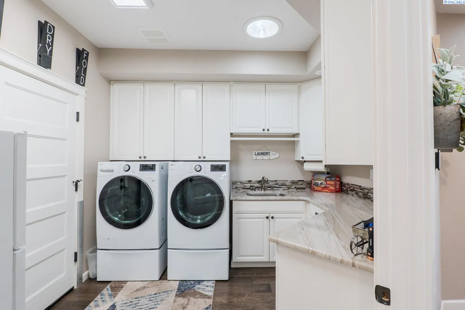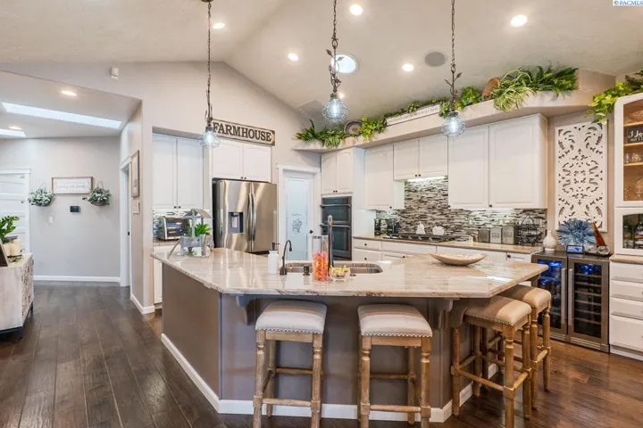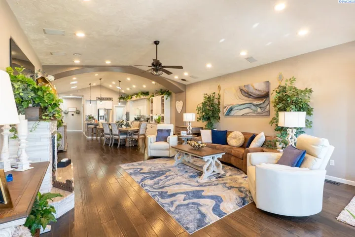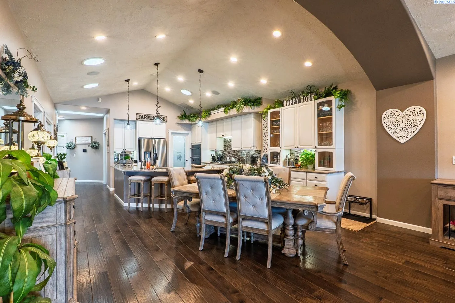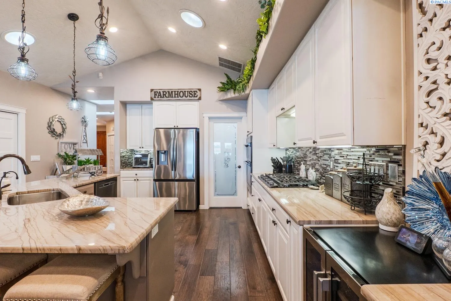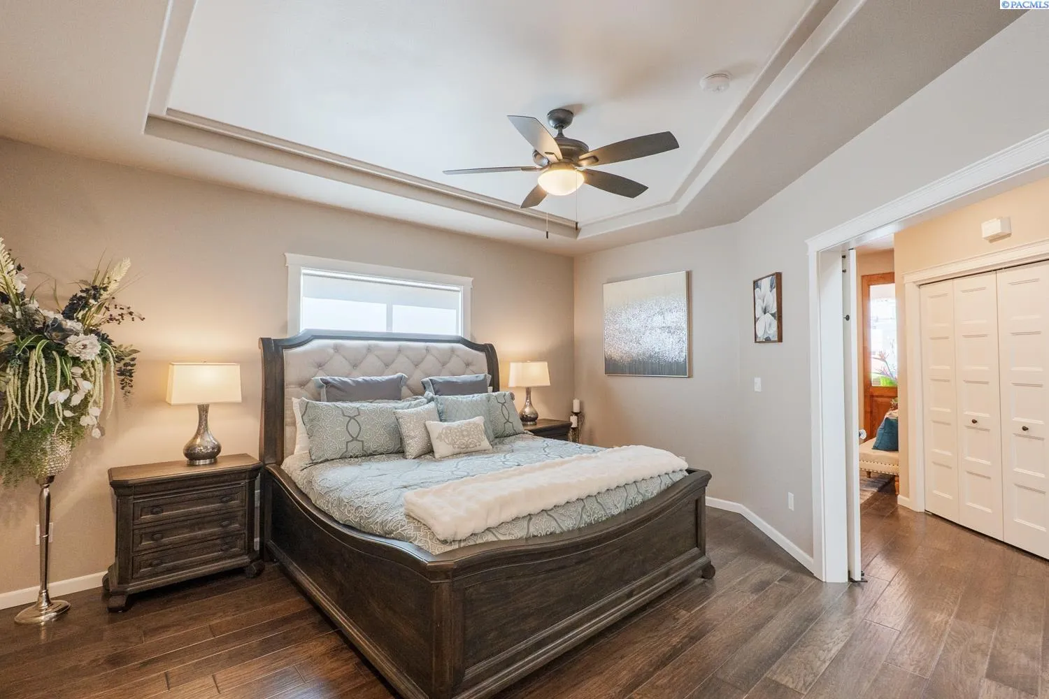 MLS# 284045 Experience sophisticated riverfront living in this stunning high-end condo within the coveted Marina Vista Estates at Columbia Point. Perfectly positioned along the Columbia River and bordering the Columbia Point Golf Course, this 3 BD 3 BA residence offers an extraordinary blend of elegance, comfort, and breathtaking views. Step into an open-concept great room where beautiful hardwood flooring flows throughout, and a wall of windows frames unobstructed views of the river. A cozy gas fireplace and remote-controlled Hunter Douglas blinds add both warmth and convenience to the living space. The gourmet kitchen is designed to impress with granite countertops, a stylish tiled backsplash, large island, and a spacious walk-in pantry—ideal for entertaining or everyday luxury. The expansive primary suite is a private retreat featuring patio door access, dual walk-in closets, dual vanities, a jetted soaking tub, and a separate walk-in shower. Enjoy outdoor living year-round on the back patio, thoughtfully outfitted with a Bromec 1600W infrared heater, natural gas hookup, gas fire table with under-mounted LED lighting, and Bluetooth-enabled weatherproof speakers—offering an unbeatable vantage point for river views and evening ambiance. A finished, attached two-car garage delivers showroom quality with colored lacquer epoxy flooring and custom hexagon lighting—an ideal space for car enthusiasts or additional storage. Located just steps from the Richland riverwalk and all the lifestyle offerings of Columbia Point, this is luxury riverfront living at its finest.