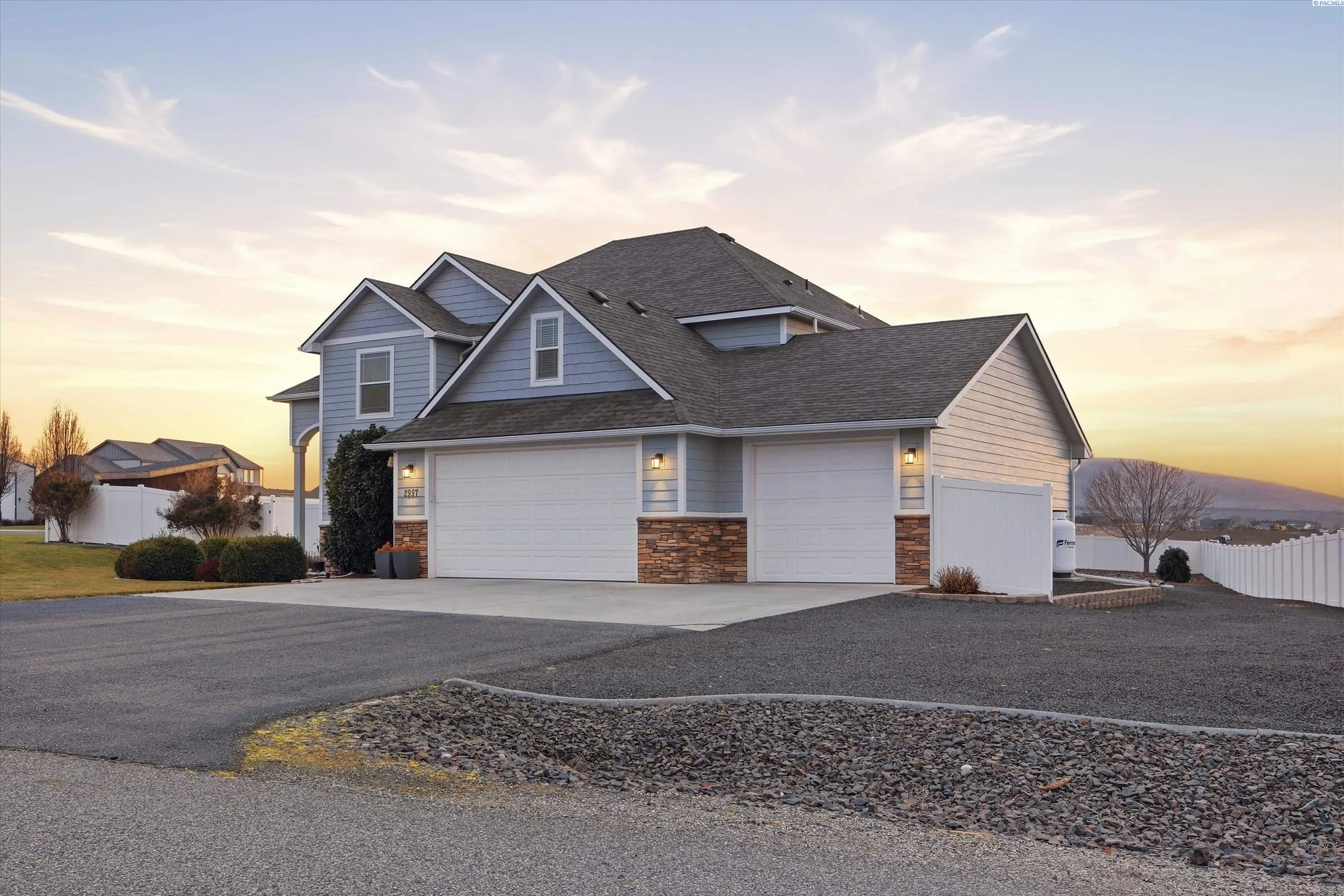 MLS# 290519 Experience the pinnacle of South Richland living at 2997 Karlee Drive. Perched in the prestigious Reata Ridge, this 4-bedroom sanctuary offers more than just a home—it offers a daily front-row seat to Washington’s most breathtaking sunsets.Step inside to an airy, open-concept floor plan where soaring ceilings and floor-to-ceiling windows frame panoramic views of the Badger Mountain foothills. The chef’s kitchen—complete with custom countertops and a social breakfast island—flows seamlessly into the living space, making it the ultimate hub for entertaining. Retreat to a primary suite that feels like a private spa, featuring a deep jetted tub and a massive walk-in closet. Outside, your 0.60-acre canvas awaits, featuring a covered patio and ample room for your RV or boat.