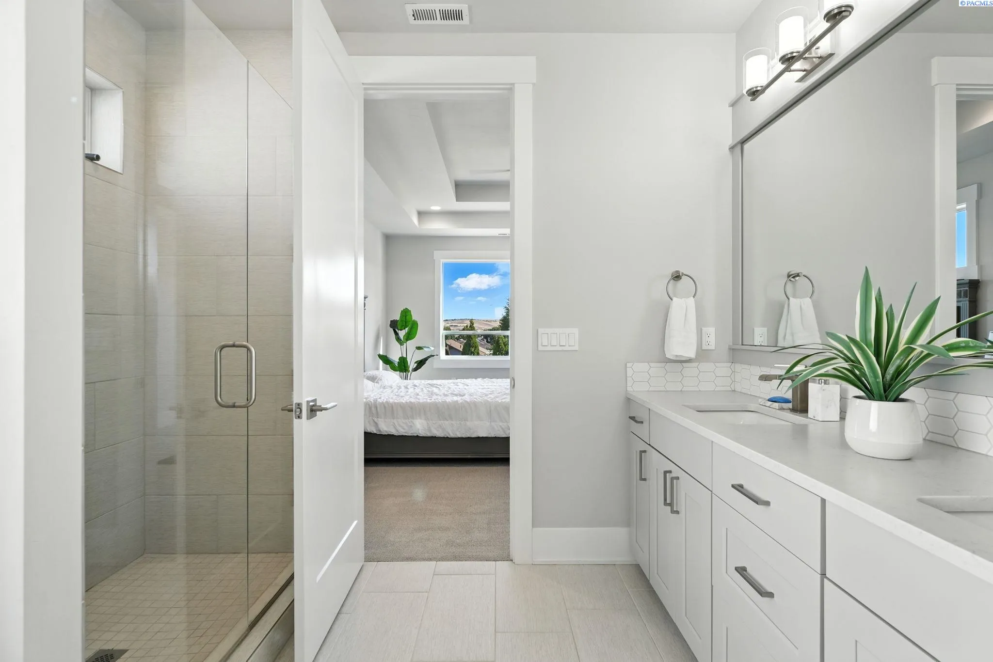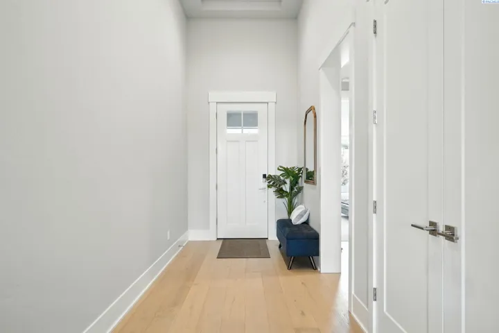 MLS# 286567 $4,000 buyer closing cost credit with preferred lender! Beautiful 2022 fully upgraded rambler. Covered front porch opens to soaring entry way, engineered hardwood throughout living areas, guest bathroom and bedroom to the left, entry way opens to great room with 18′ ceilings fully wood wrapped windows with craftsman trim, white quartz kitchen with island, grey cabinets soft close cabinets with full backsplash, gas stainless steel appliances, glass door to pantry, master bedroom behind great room, full tile shower, pedestal soaker tub, private access to oversized back patio with vaulted ceiling, junior master suite located behind the kitchen, laundry room located off of the hallway to the garage, garage is fully finished with epoxy floors. Large community pool and rec center access. Great for hosting events and enjoying hot days!