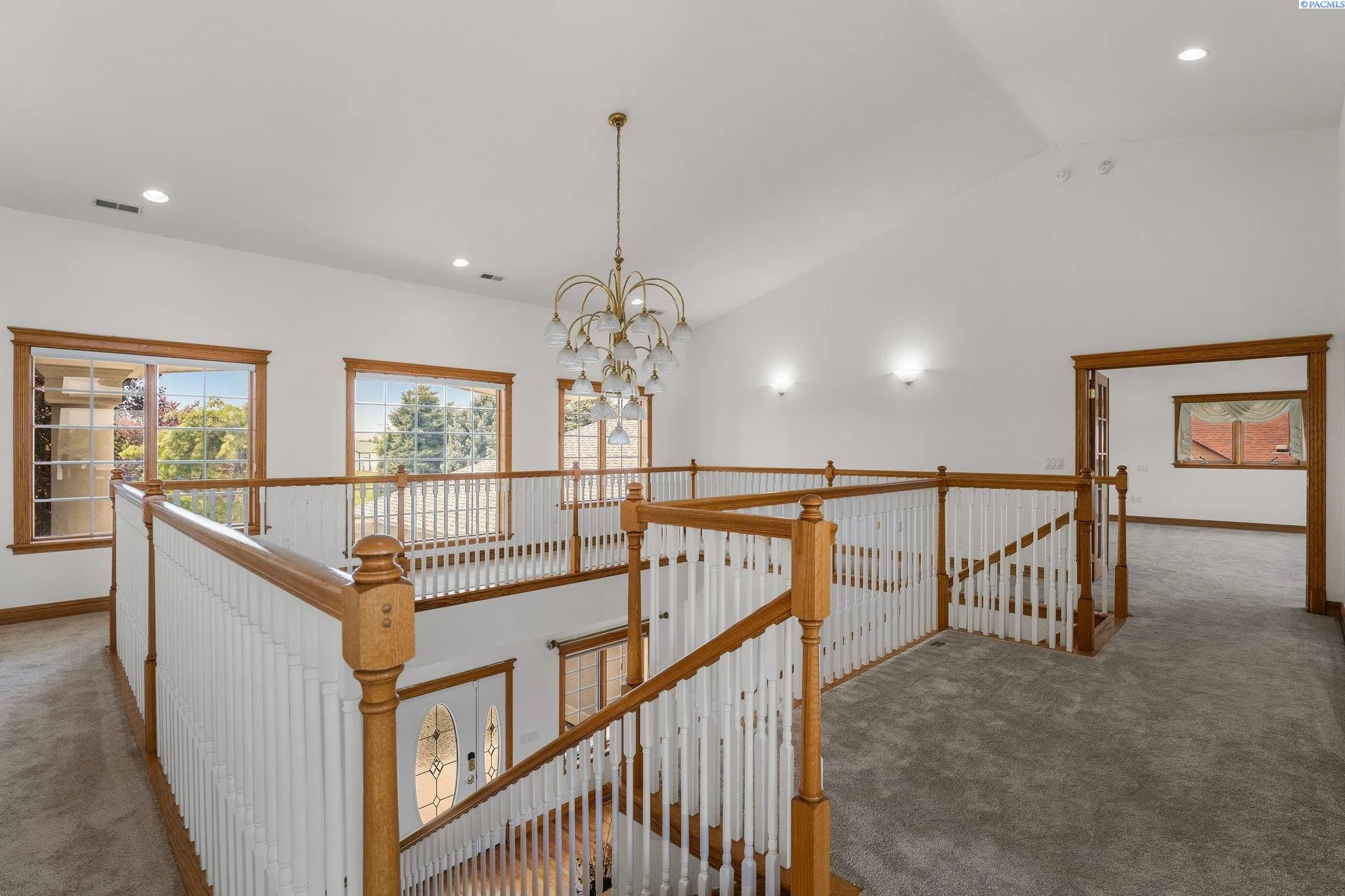 Step into timeless elegance and breathtaking Columbia River views in this custom-designed riverfront estate offering over 5,000 square feet of living space across three thoughtfully designed levels. From the moment you enter, expansive windows frame sweeping panoramic river views, drawing the outdoors in and setting the tone for this remarkable home. The grand foyer features a striking double staircase that leads to the upper level, where the luxurious primary suite awaits—complete with a private retreat and spa-inspired bath. A second upstairs bedroom includes its own en-suite bathroom, ideal for guests or multigenerational living. The main level also offers a bedroom with a private bath, providing flexibility and convenience. Lovingly designed and built by the original owners, this one-of-a-kind residence showcases exceptional craftsmanship and architectural detail throughout. The layout is open yet well-defined, seamlessly blending spaces across levels while offering both intimacy and grandeur. Enjoy formal gatherings in the dining room, relaxed evenings in the great room with floor-to-ceiling windows, or quiet moments in one of the multiple living areas—all designed to celebrate the home’s stunning riverfront setting. The lower level includes a half bath and two additional non-conforming rooms, perfect for hobbies, storage, or flex space. A new roof was installed on 6/20/2025. An additional parcel of land across from the property offers the rare opportunity to build a shop. This is a truly unique riverfront estate—rich in character, craftsmanship, and unforgettable views.