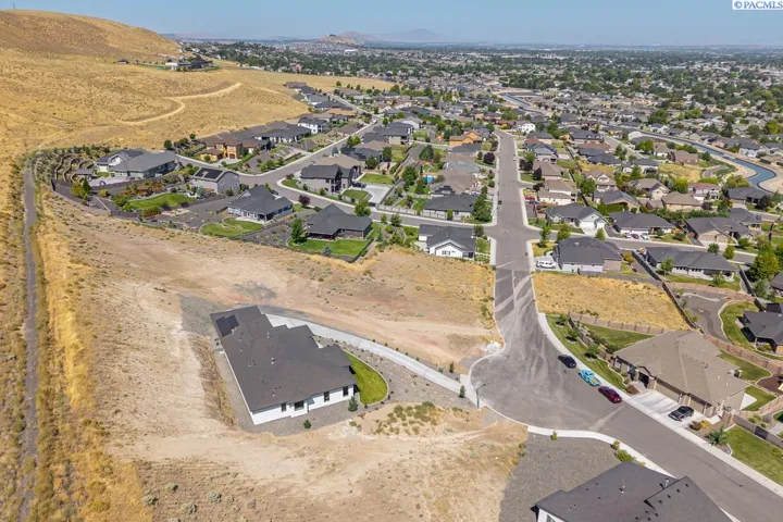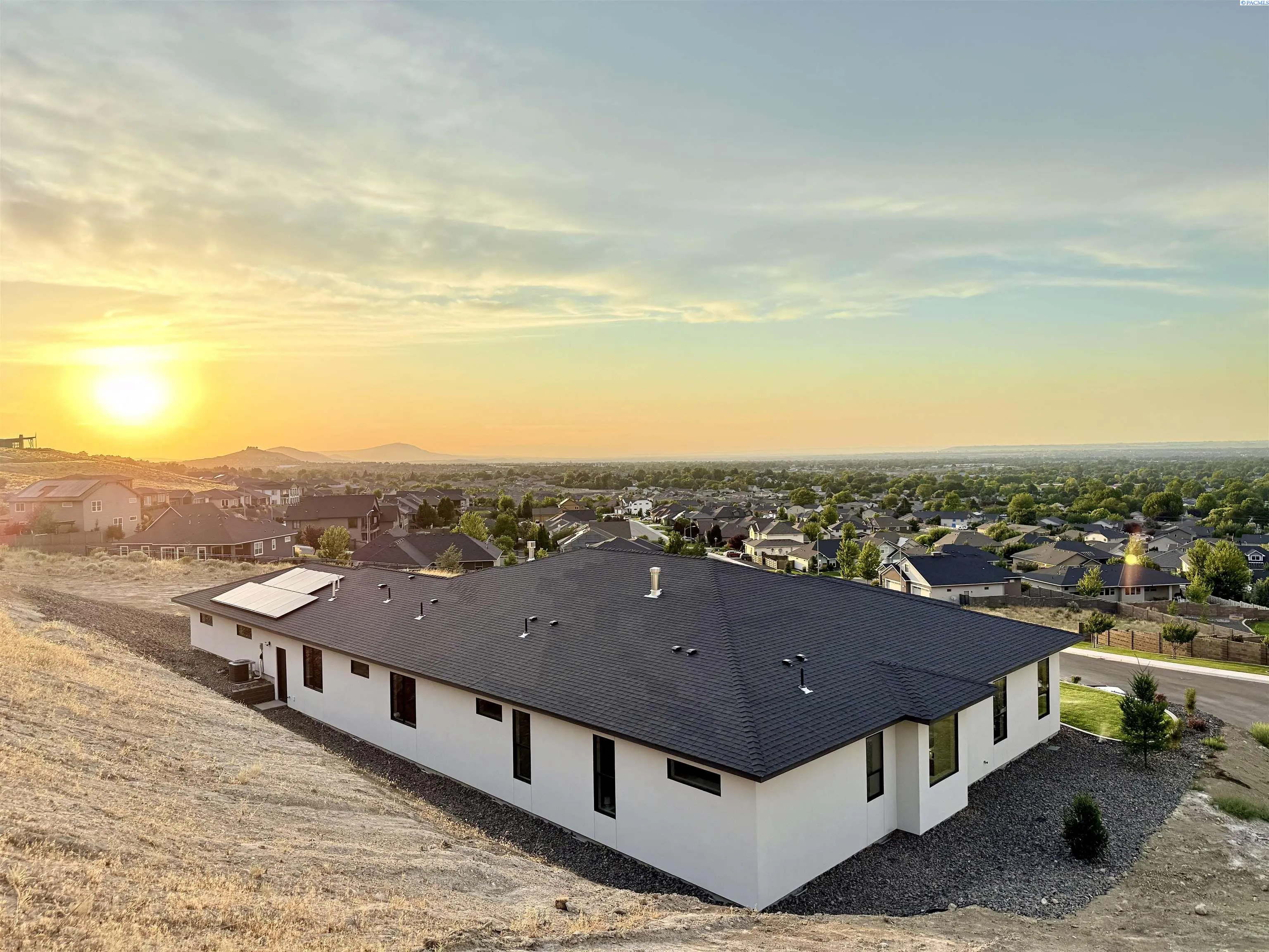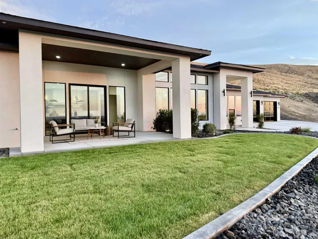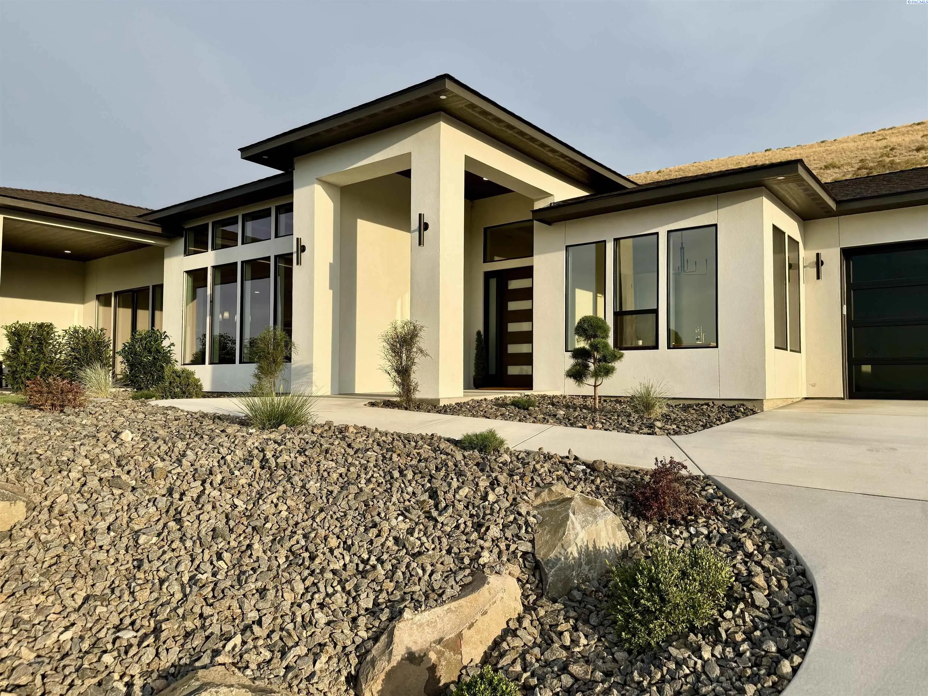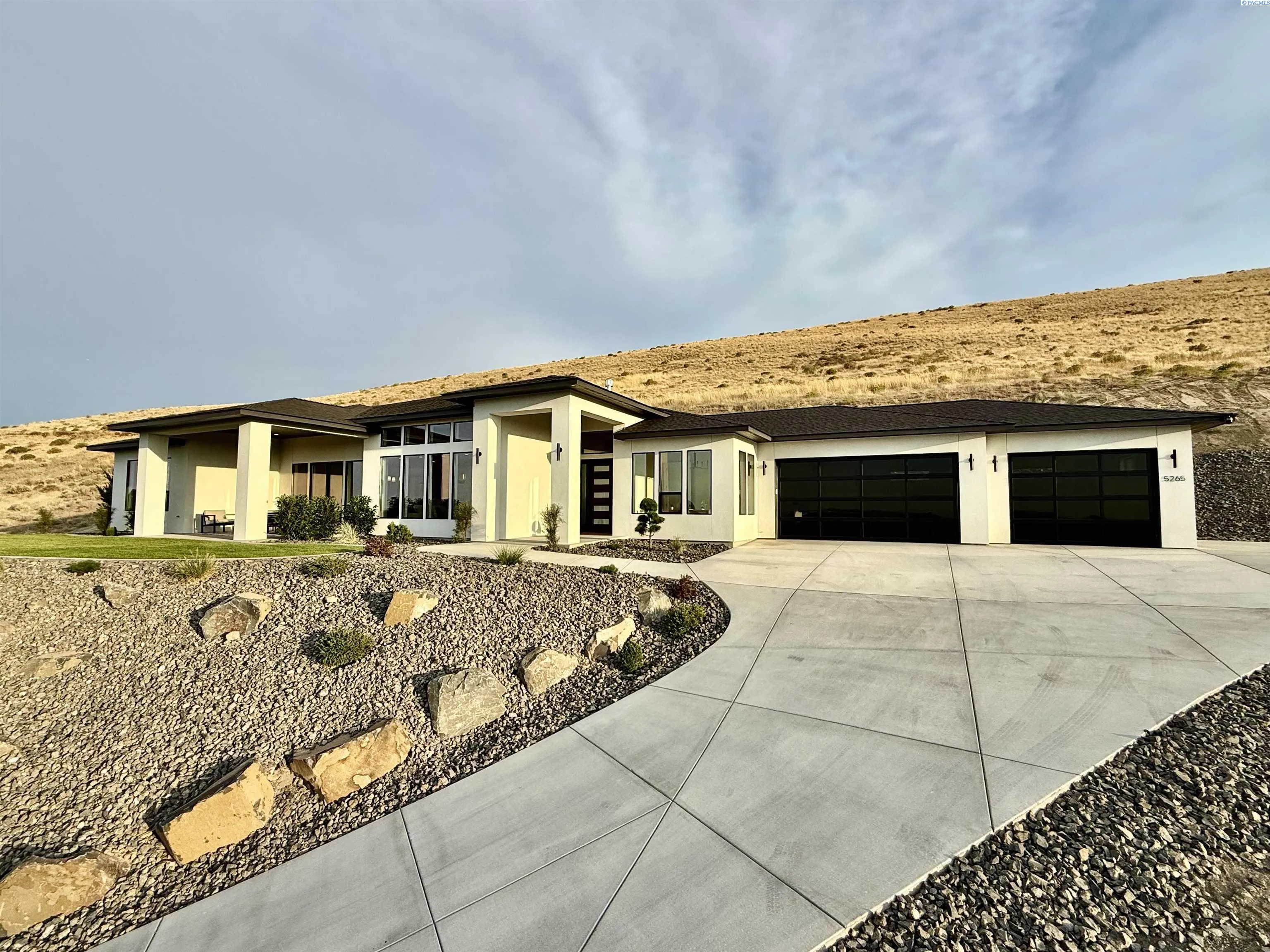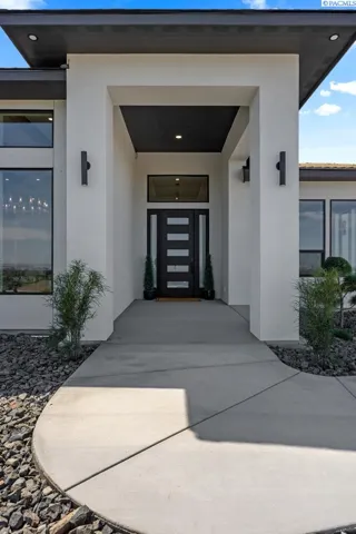 MLS# 286327 This exquisite 4-BR + Den, 3.5-BA rambler is situated in the esteemed Inspiration Estates. This home has a linear style, highlighted by black windows for you to enjoy the view sweeping from Badger Mt to the Blue Mountains, making for incredible sunrises and sunsets. The privacy-glassed, oversized garage gives extra space for projects or storage. This home comes fully landscaped with TUGS. This architectural masterpiece features a no-step entry, ensuring convenience and accessibility. The covered patio is perfect to extend your entertainment area and the BBQ stub is ready for your grill or future outdoor kitchen. The solar panels, EV outlet in garage and the tankless water heater increase energy efficiency. The designed flow starts with a grand entry foyer, leading into the Great Room with 12’ ceilings, open concept with the kitchen and dining room. The fireplace is strategically placed in the hand-troweled limestone column in the Great Room with built in shelving that is illuminated by sconces. The ceiling shows off the custom beam work that shares options in an overhead lighting system and a dimmable, gold ring chandelier. Engineered white oak hardwood flooring is in main living areas and Berber carpet in the bedrooms. All bathrooms are tiled –no fiberglass here! There are Quartz countertops throughout the kitchen, bathrooms and Mudroom. Creating in this kitchen will be a total joy with the Z-Line 48” SS Professional Range/Oven with Champagne Bronze Accents. It has an electric Double oven with 6.7 cu ft for larger cooking and a side, baking oven. The 8 auto-re ignition gas burners combine the elegance of a hand-finished porcelain cooktop with an electric convection oven. Sconces are placed on either side of the limestone vent hood for ambiance. Matching Z-Line Drawer Microwave and Dishwasher compliment this impressive look. Custom stained cabinets are showcased with the toe-kick lighting, and under island lighting as well. The 10’ x 4’ quartz waterfall island has full cabinet storage beneath. The pantry has generous shelving. The Main BR is spacious and has breathtaking views. The Owner’s Bath is welcoming and set apart by a privacy-tinted glass sliding door; featuring a makeup bar with lighted mirror, tiled shower with undershelf lighting, free-standing tub with chandelier, built in shelving with dimmable lighting, large closet with custom shelving, and separate area for the Owners Washer/Dryer. 2 yr snow removal included with full price.