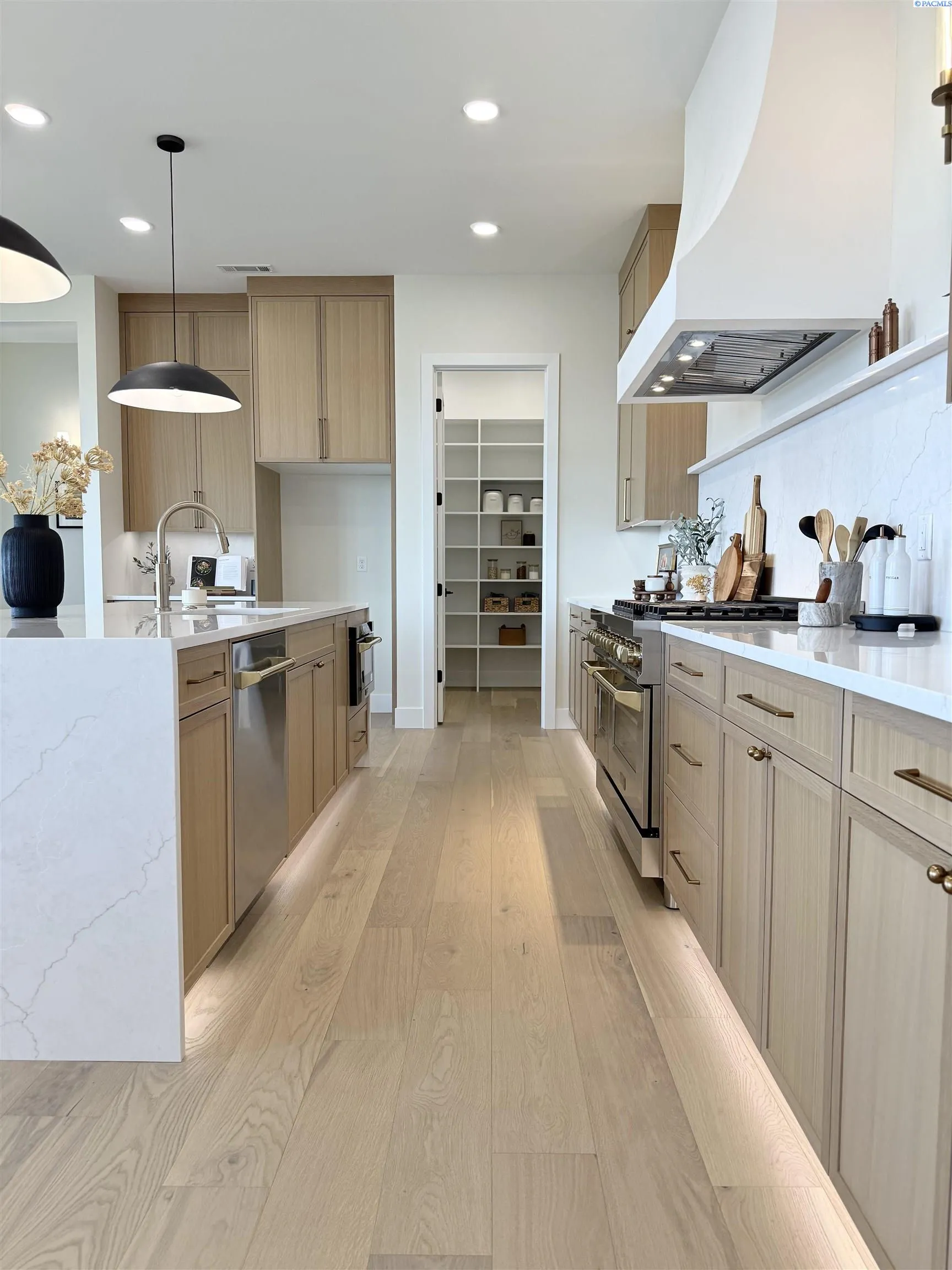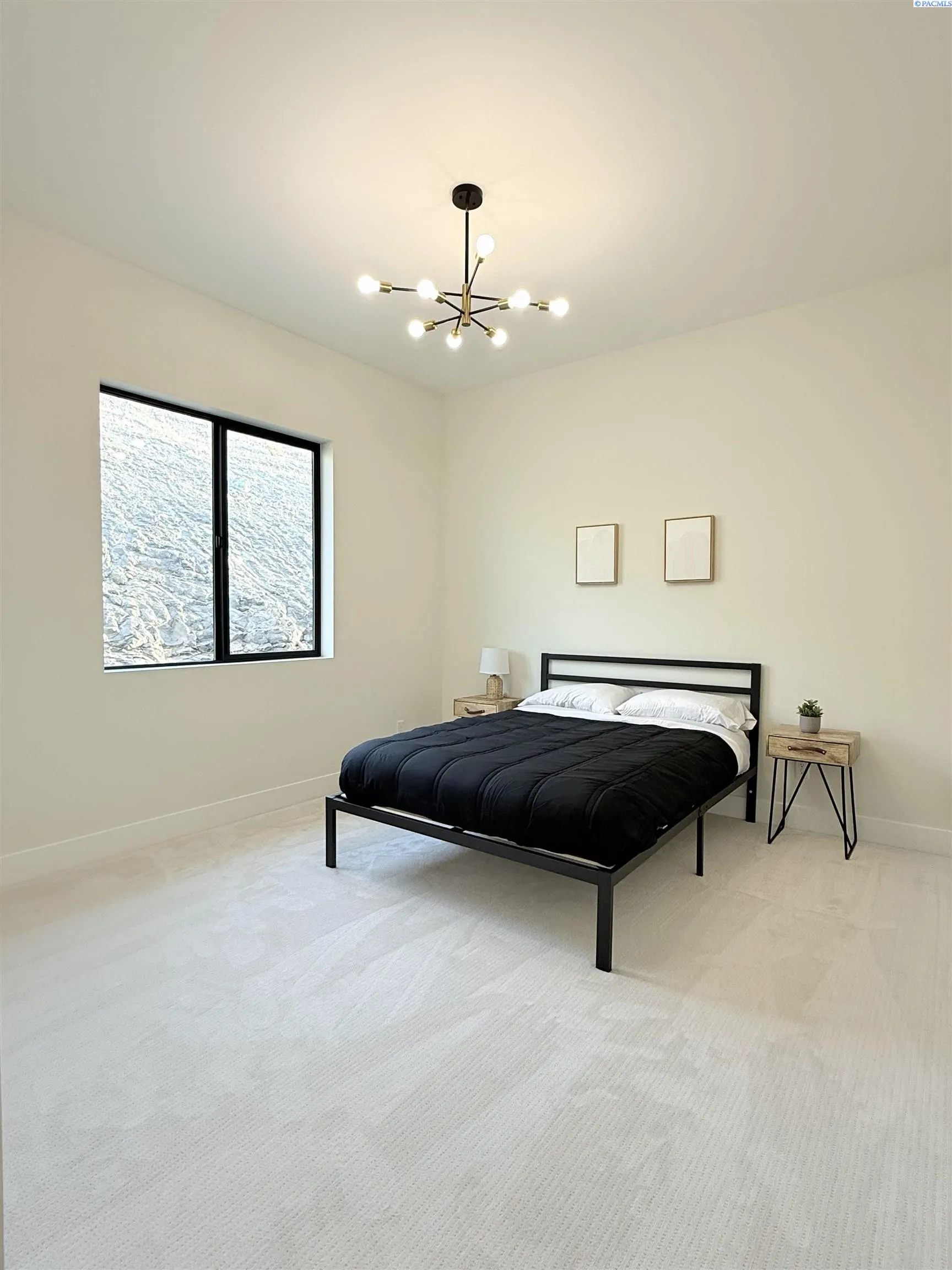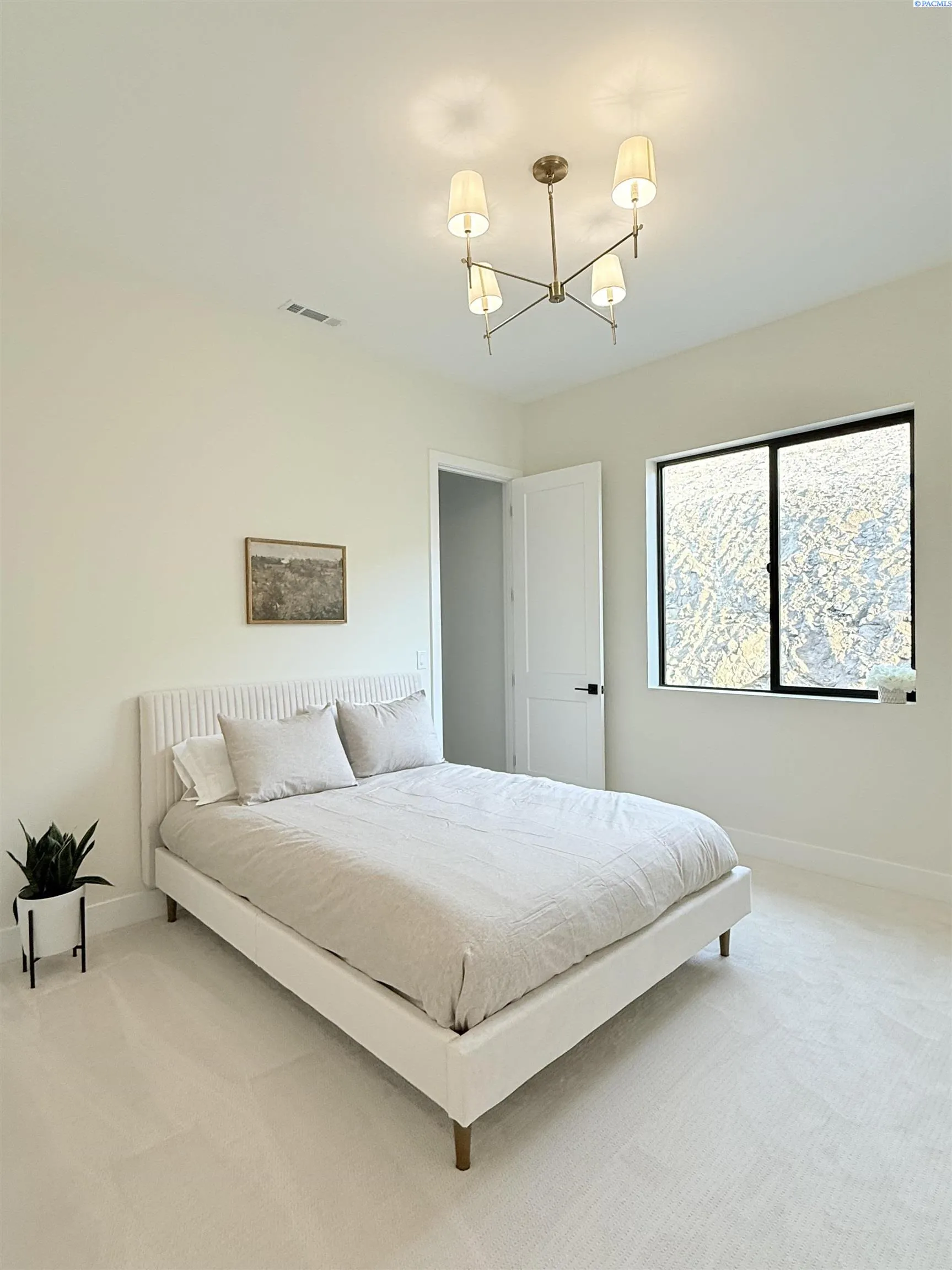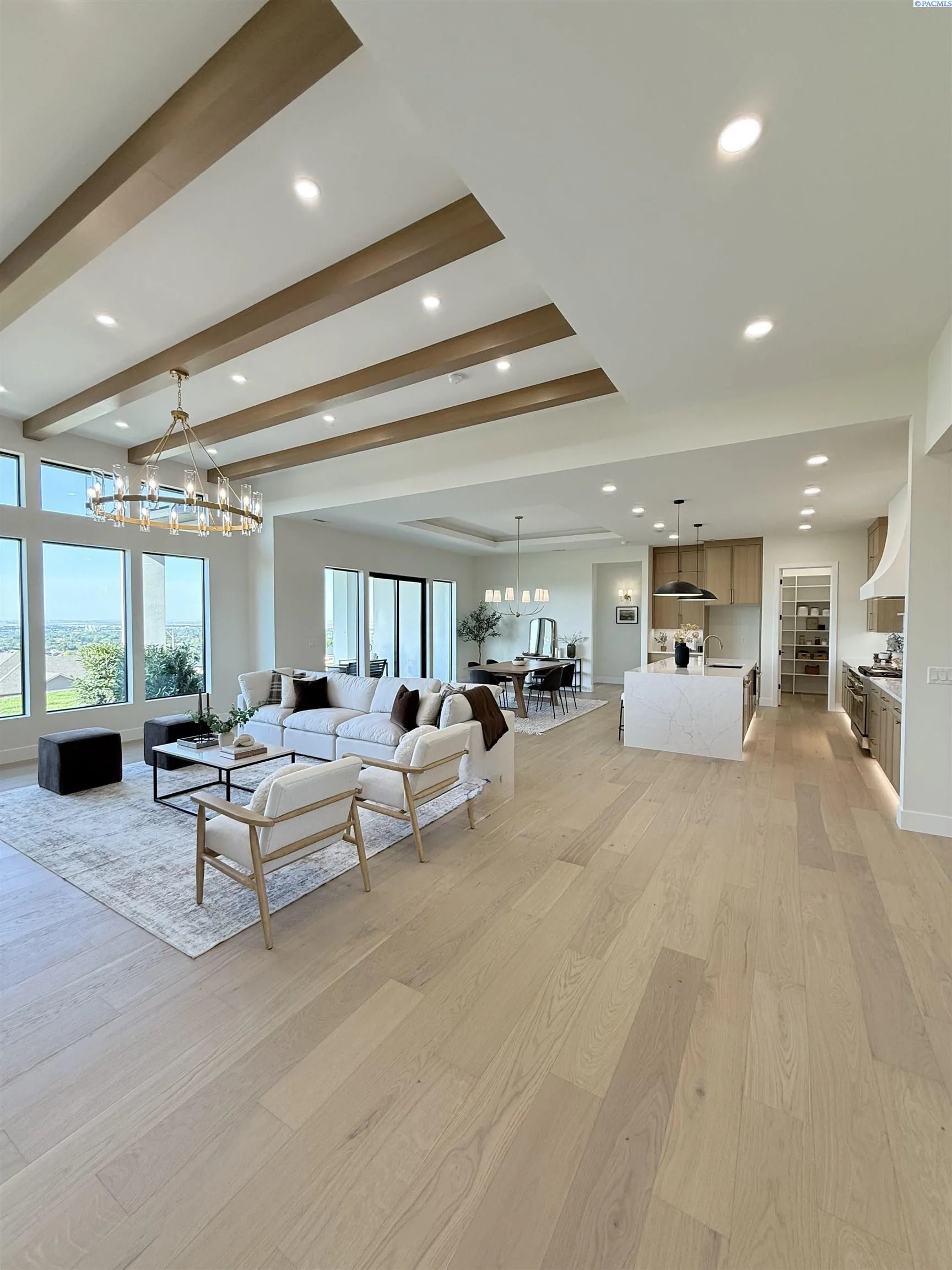 MLS# 286327 This exquisite 4-BR + Den, 3.5-BA rambler is situated in the esteemed Inspiration Estates. This home has a linear style, highlighted by black windows for you to enjoy the view sweeping from Badger Mt to the Blue Mountains, making for incredible sunrises and sunsets. The privacy-glassed, oversized garage gives extra space for projects or storage. This home comes fully landscaped with TUGS. This architectural masterpiece features a no-step entry, ensuring convenience and accessibility. The covered patio is perfect to extend your entertainment area and the BBQ stub is ready for your grill or future outdoor kitchen. The solar panels, EV outlet in garage and the tankless water heater increase energy efficiency. The designed flow starts with a grand entry foyer, leading into the Great Room with 12’ ceilings, open concept with the kitchen and dining room. The fireplace is strategically placed in the hand-troweled limestone column in the Great Room with built in shelving that is illuminated by sconces. The ceiling shows off the custom beam work that shares options in an overhead lighting system and a dimmable, gold ring chandelier. Engineered white oak hardwood flooring is in main living areas and Berber carpet in the bedrooms. All bathrooms are tiled –no fiberglass here! There are Quartz countertops throughout the kitchen, bathrooms and Mudroom. Creating in this kitchen will be a total joy with the Z-Line 48” SS Professional Range/Oven with Champagne Bronze Accents. It has an electric Double oven with 6.7 cu ft for larger cooking and a side, baking oven. The 8 auto-re ignition gas burners combine the elegance of a hand-finished porcelain cooktop with an electric convection oven. Sconces are placed on either side of the limestone vent hood for ambiance. Matching Z-Line Drawer Microwave and Dishwasher compliment this impressive look. Custom stained cabinets are showcased with the toe-kick lighting, and under island lighting as well. The 10’ x 4’ quartz waterfall island has full cabinet storage beneath. The pantry has generous shelving. The Main BR is spacious and has breathtaking views. The Owner’s Bath is welcoming and set apart by a privacy-tinted glass sliding door; featuring a makeup bar with lighted mirror, tiled shower with undershelf lighting, free-standing tub with chandelier, built in shelving with dimmable lighting, large closet with custom shelving, and separate area for the Owners Washer/Dryer. 2 yr snow removal included with full price.
