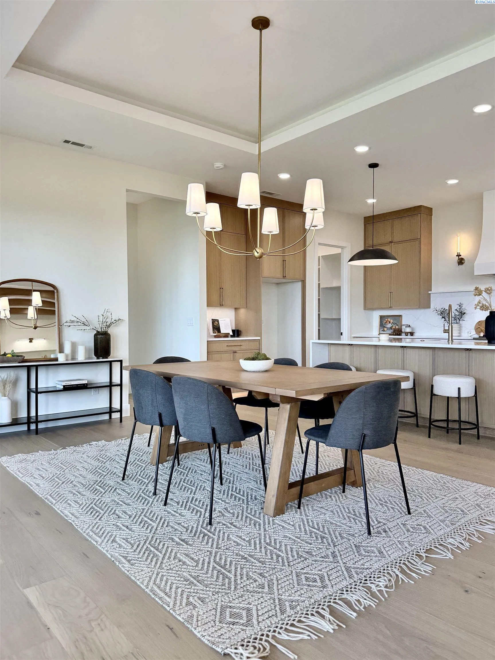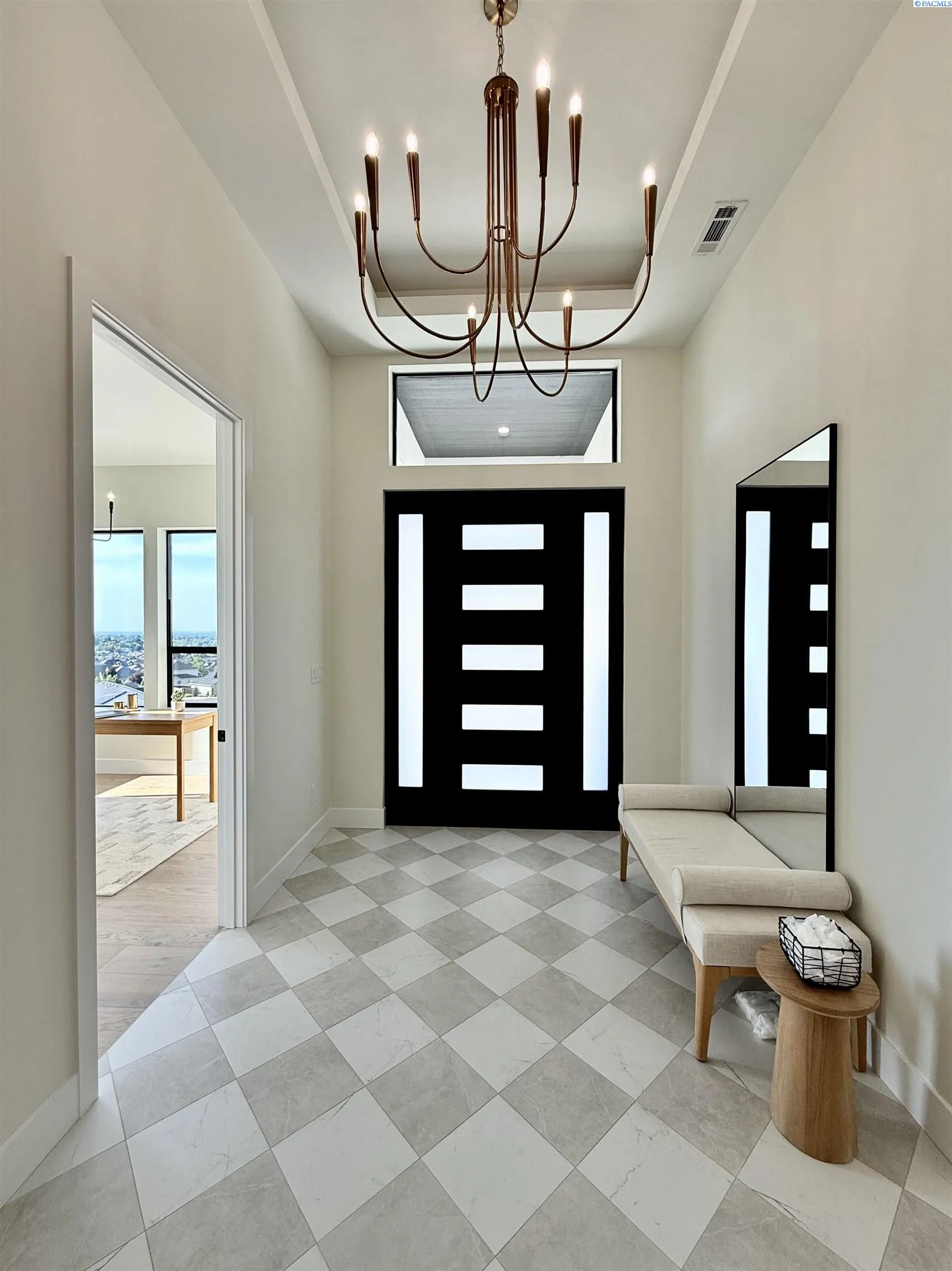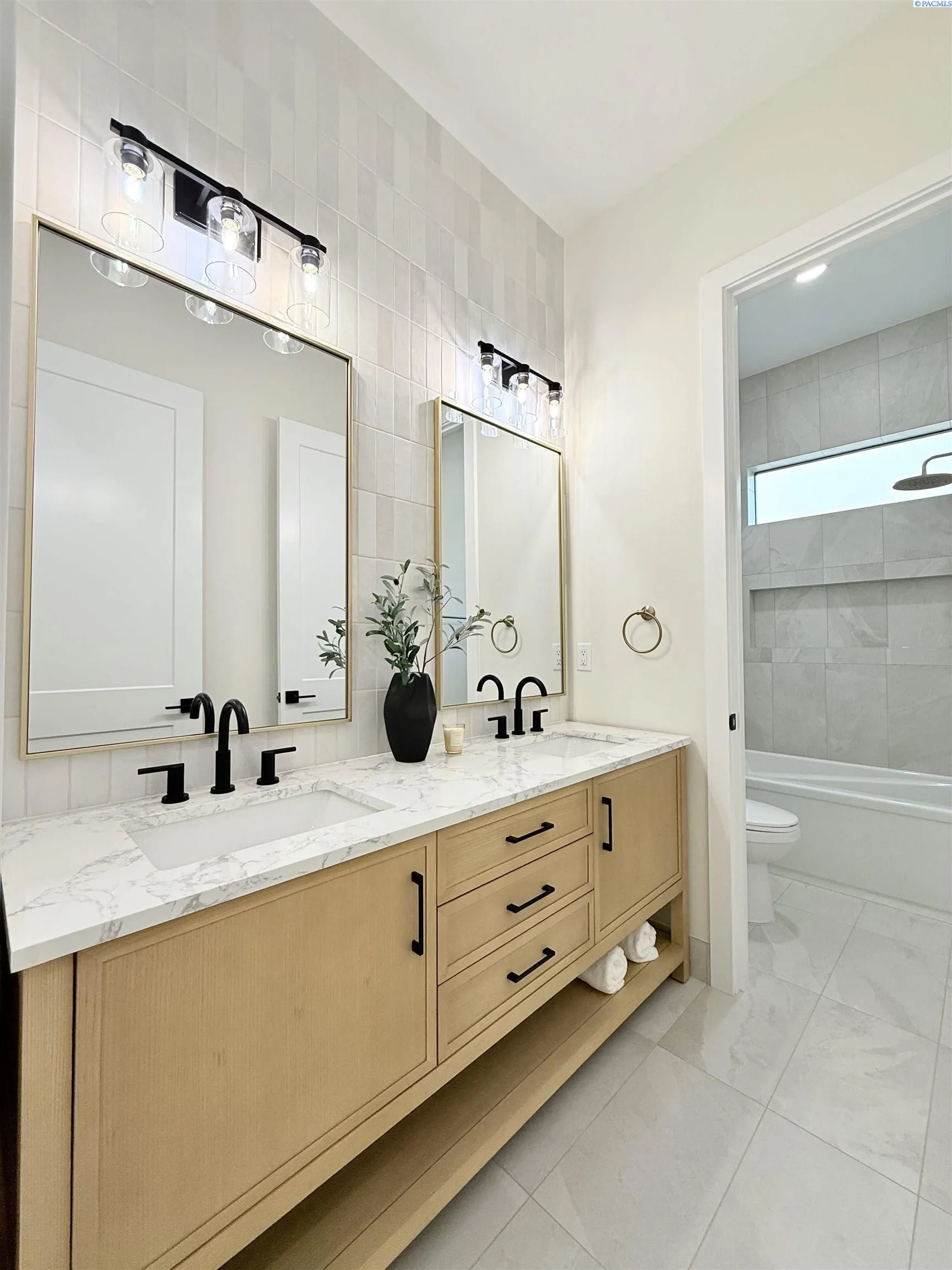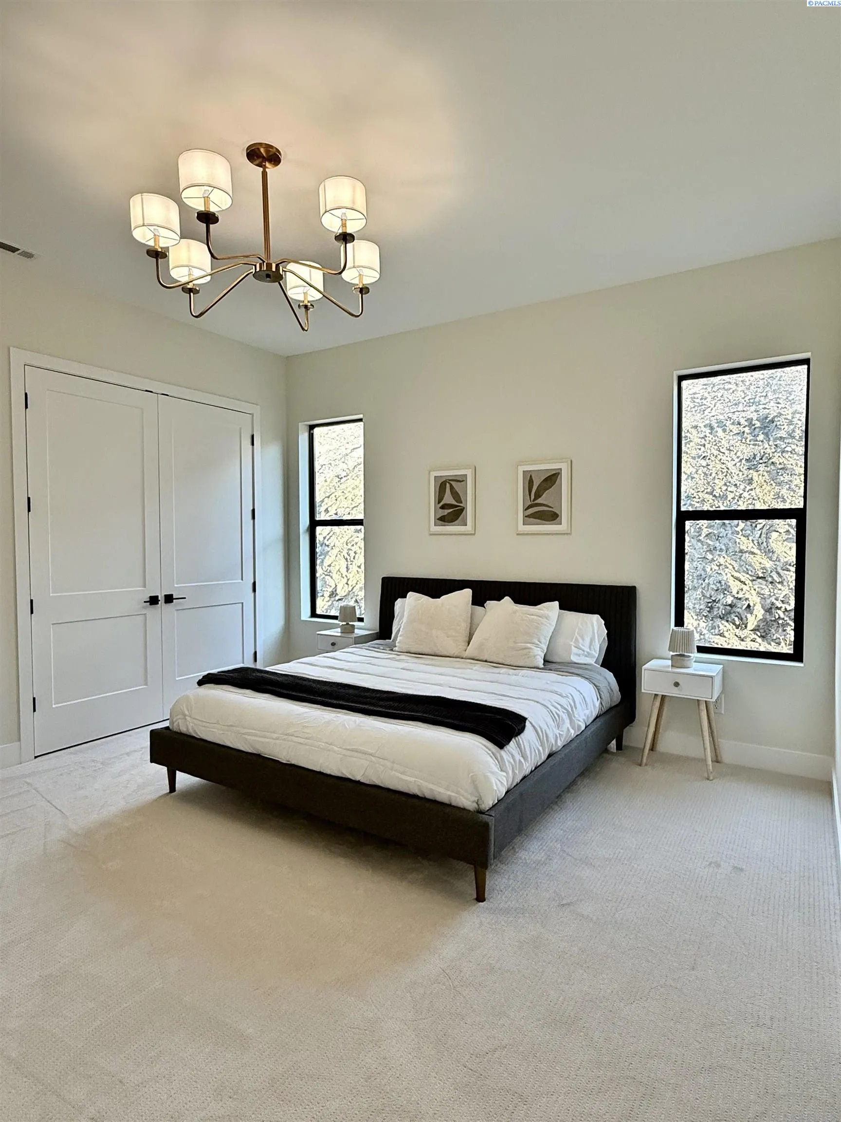 MLS# 286327 This exquisite 4-BR + Den, 3.5-BA rambler is situated in the esteemed Inspiration Estates. This home has a linear style, highlighted by black windows for you to enjoy the view sweeping from Badger Mt to the Blue Mountains, making for incredible sunrises and sunsets. The privacy-glassed, oversized garage gives extra space for projects or storage. This home comes fully landscaped with TUGS. This architectural masterpiece features a no-step entry, ensuring convenience and accessibility. The covered patio is perfect to extend your entertainment area and the BBQ stub is ready for your grill or future outdoor kitchen. The solar panels, EV outlet in garage and the tankless water heater increase energy efficiency. The designed flow starts with a grand entry foyer, leading into the Great Room with 12’ ceilings, open concept with the kitchen and dining room. The fireplace is strategically placed in the hand-troweled limestone column in the Great Room with built in shelving that is illuminated by sconces. The ceiling shows off the custom beam work that shares options in an overhead lighting system and a dimmable, gold ring chandelier. Engineered white oak hardwood flooring is in main living areas and Berber carpet in the bedrooms. All bathrooms are tiled –no fiberglass here! There are Quartz countertops throughout the kitchen, bathrooms and Mudroom. Creating in this kitchen will be a total joy with the Z-Line 48” SS Professional Range/Oven with Champagne Bronze Accents. It has an electric Double oven with 6.7 cu ft for larger cooking and a side, baking oven. The 8 auto-re ignition gas burners combine the elegance of a hand-finished porcelain cooktop with an electric convection oven. Sconces are placed on either side of the limestone vent hood for ambiance. Matching Z-Line Drawer Microwave and Dishwasher compliment this impressive look. Custom stained cabinets are showcased with the toe-kick lighting, and under island lighting as well. The 10’ x 4’ quartz waterfall island has full cabinet storage beneath. The pantry has generous shelving. The Main BR is spacious and has breathtaking views. The Owner’s Bath is welcoming and set apart by a privacy-tinted glass sliding door; featuring a makeup bar with lighted mirror, tiled shower with undershelf lighting, free-standing tub with chandelier, built in shelving with dimmable lighting, large closet with custom shelving, and separate area for the Owners Washer/Dryer. 2 yr snow removal included with full price.