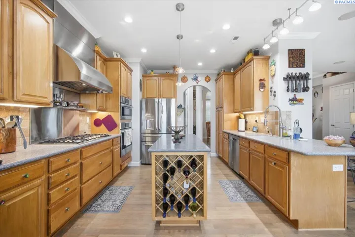 MLS# 290202 MLS# 288692 Welcome to 649 Clermont in South Richland’s sought-after Crested Hills neighborhood—an established community known for its monument entrance, quiet streets, mature landscaping, and nearby park. This stunning custom-built Pischel home offers single-level living at its finest, with thoughtful upgrades, quality ICF construction, and breathtaking views of the river, lights and mountains. Step inside to find soaring ceilings, rich Laurel Wood Flooring throughout, and an inviting gas fireplace that anchors the open living space. The kitchen features a natural gas range, plenty of counter space, and updated LED lighting for a bright, modern feel. Windows are double paned and some windows have casement openings. The oversized extended garage is a dream and has beautiful, finished epoxy floors. It provides ample storage and space for hobbies, while extra side parking accommodates a boat or trailer. Relax on the back patio and take in the sweeping views—especially spectacular when the skyline glows on the 4th of July. Enjoy peace of mind with a Trane HVAC system (2023), sealed and cleaned ducts, whole-house fan with air filter, and newer water heater (2020). With easy access to shopping, dining, and top-rated schools, this meticulously cared-for home combines comfort, privacy, and style in one beautiful package. This home is located only 6 houses from the lovely park. Call your favorite Realtor to check out this awesome home.