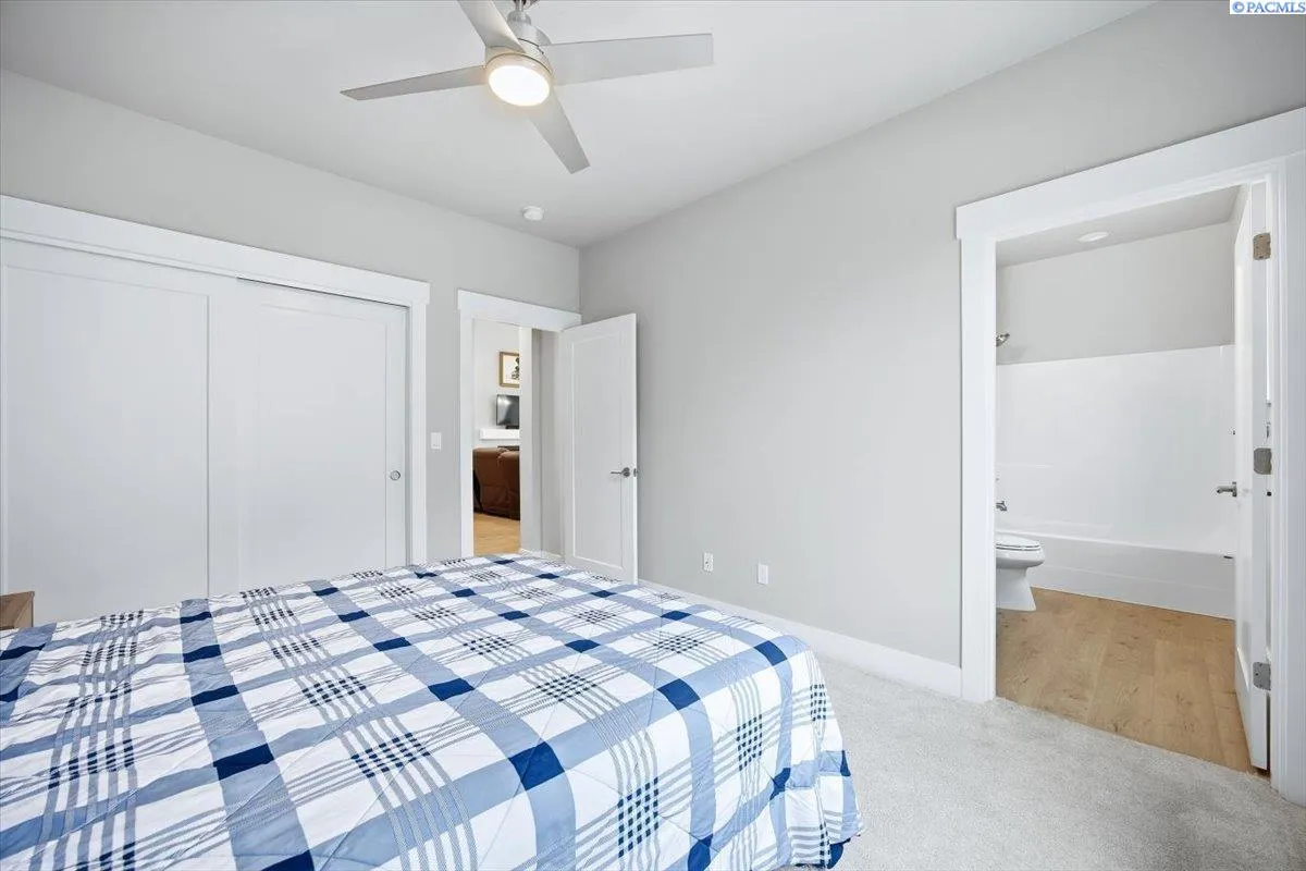 MLS# 290197 Welcome to this move in ready 2022 Palisch 3 bed and 3 bath Carrington floor plan. 2248 square feet of luxury with all the details in mind. Three private spaces with private baths! Top bottom pull blinds, silestone countertops plus warm neutral laminate flooring. The kitchen provides a generous walk in pantry. You will enjoy cooking and entertaining on your gas range with a large island and plenty of counter space. Enjoy the vaulted ceilings in the spacious living room with gas fireplace. Tall windows blend the outside with the inside. A designated laundry creates an easy traffic pattern from the spacious 3 car garage through the mini entryway. Enjoy your private sanctuary in this luxurious primary suite with coffered ceiling, private entry to covered porch, separate shower and soaker tub and generous walk in closet. Enjoy 2 guest spaces with private baths, each nestled into their own corner of the home. This home comes with custom landscaped backyard with garden beds plus an extended patio. The refrigerator and washer and dryer are included in the sale price plus so much more! This home is part of the Quail Ridge neighborhood providing access to the Quail Ridge clubhouse and pool and the Horn Rapids club house and pool. Schedule your showing today!