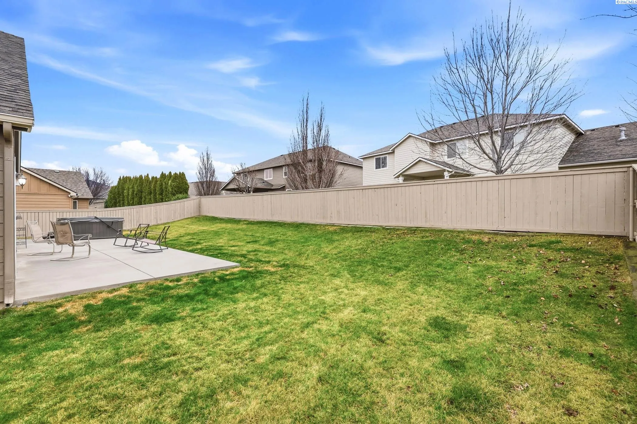 MLS# 290195 Beautifully maintained home in a highly desirable neighborhood! This inviting property features a spacious great room concept with a vaulted ceiling and abundant natural light, creating an open and airy feel. The thoughtfully designed split-bedroom floor plan offers privacy and functionality. The kitchen is well-appointed with a pantry, center island, stainless steel appliances, gorgeous cabinetry, and stylish tile backsplash that continues into both bathrooms for a cohesive look. The home offers 3 bedrooms and 2 bathrooms, including a generous primary suite with vaulted ceiling, a large en-suite bathroom featuring double sinks, a walk-in closet with built-in drawers. Wood laminate flooring enhances the entryway, adding warmth and durability. Step outside to enjoy the fully fenced backyard complete with a large patio and relaxing hot tub-perfect for entertaining or unwinding. The beautifully landscaped front yard adds to the home’s excellent curb appeal. This home is move-in ready.