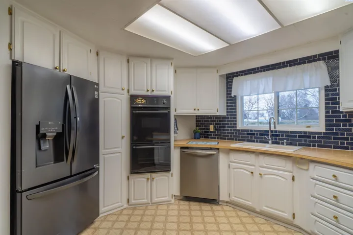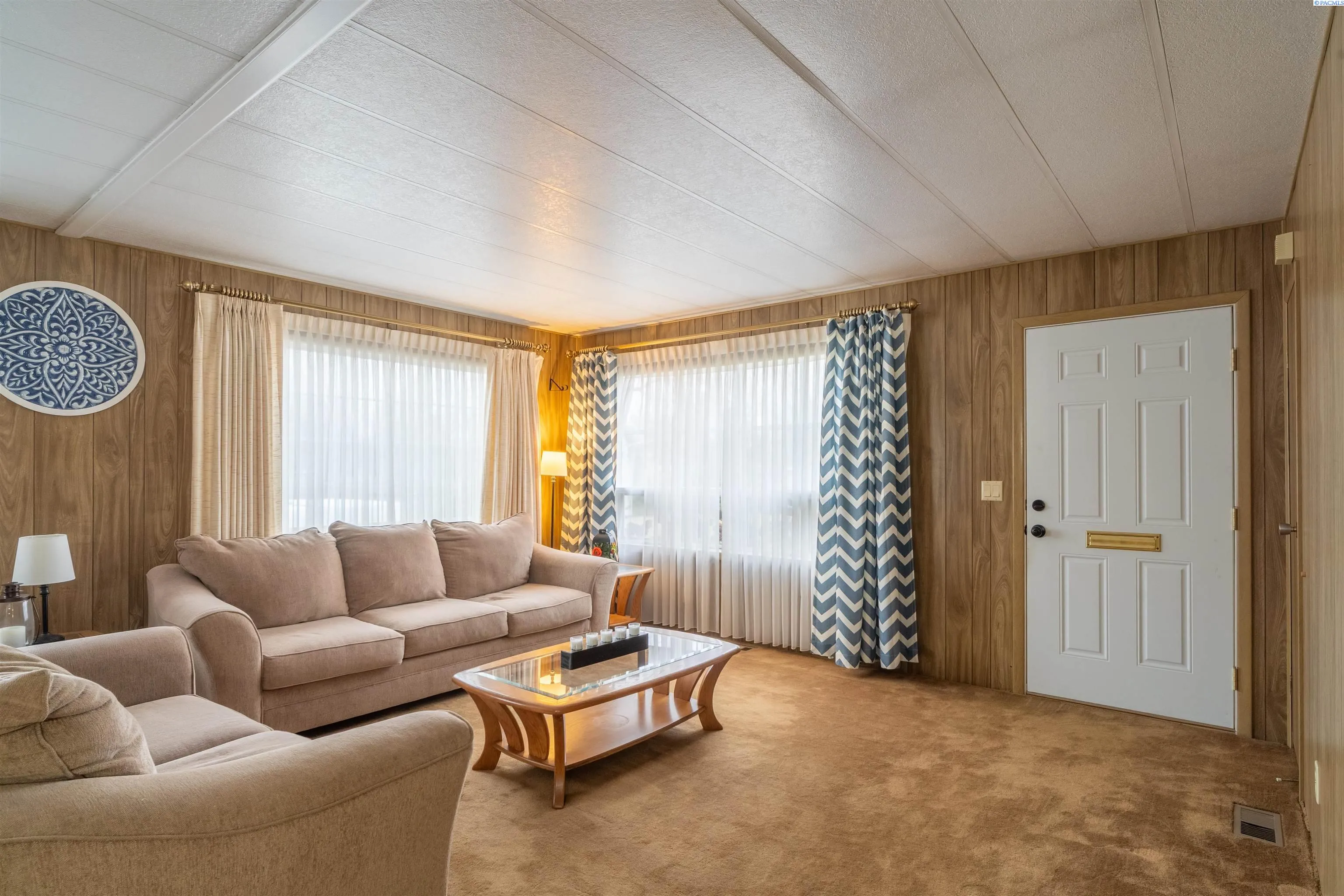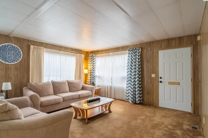 MLS# 289792 For Sale is a home in a park. The lot rent is $450 per month. This home is in great condition and has kept its original charm. Nice kitchen appliances including gas stove and double oven. The majority of the windows have been updated. Covered porch. Vinyl siding. Newer heat pump for the central heat and air. Insulated storage shed with power and lean to for the lawn mower that Stays. The lot is landscaped, and the lawn has underground sprinklers with newer valves and control box.