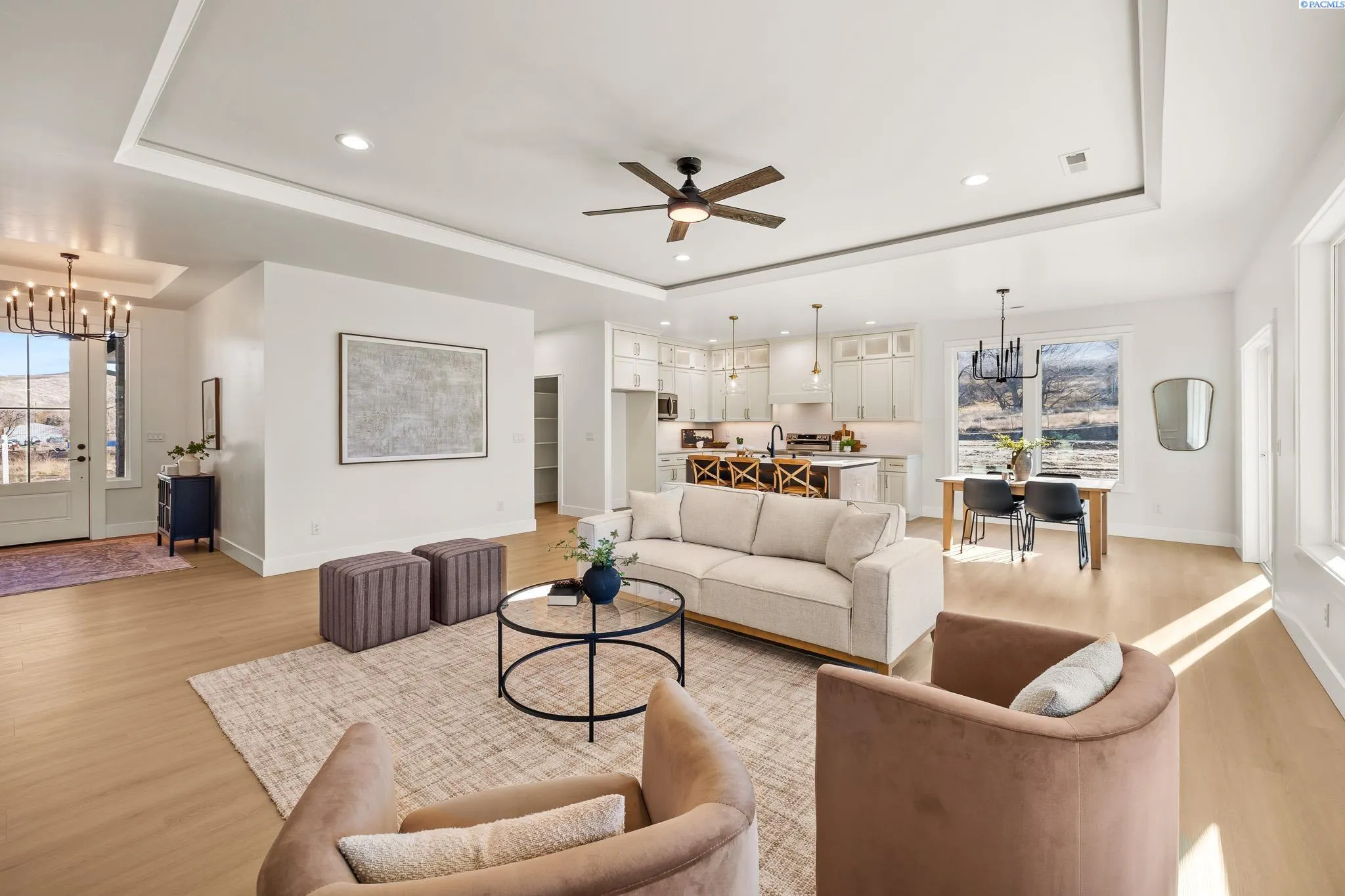 MLS# 289688 Welcome home! This new construction home built by a local distinguished builder is perfectly located on a .66 acre lot in a serene, rural neighborhood, surrounded by the beautiful Kiona Hills and vineyards. Wake up to the breathtaking rolling hills, scenic views, and tranquility! This home includes 4 bedrooms + den/office, 3 full bathrooms, 3-car garage, and a fully sized attached 14ft by 50ft RV Bay/Shop! Need room for your RV, boat, and extra toys? This is the home for you! Special features include: expansive and open great area, electric fireplace, walk-in pantry, luxurious master suite and master bathroom, bonus room, fully sized RV bay/shop, and an oversized backyard covered patio- perfect for family gatherings and summer BBQs! The kitchen showcases sleek stainless-steel appliances, a large island, soft-close cabinets, a walk-in pantry, modern countertops, and luxurious glass pendants. Discover warmth, comfort, and elegance within the details and design of this home! Perfectly located in a quiet neighborhood, this home is close to schools, shopping, dining, and quick freeway access. Contact your favorite realtor today!