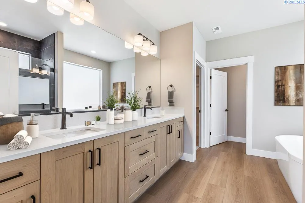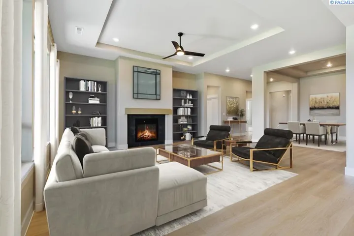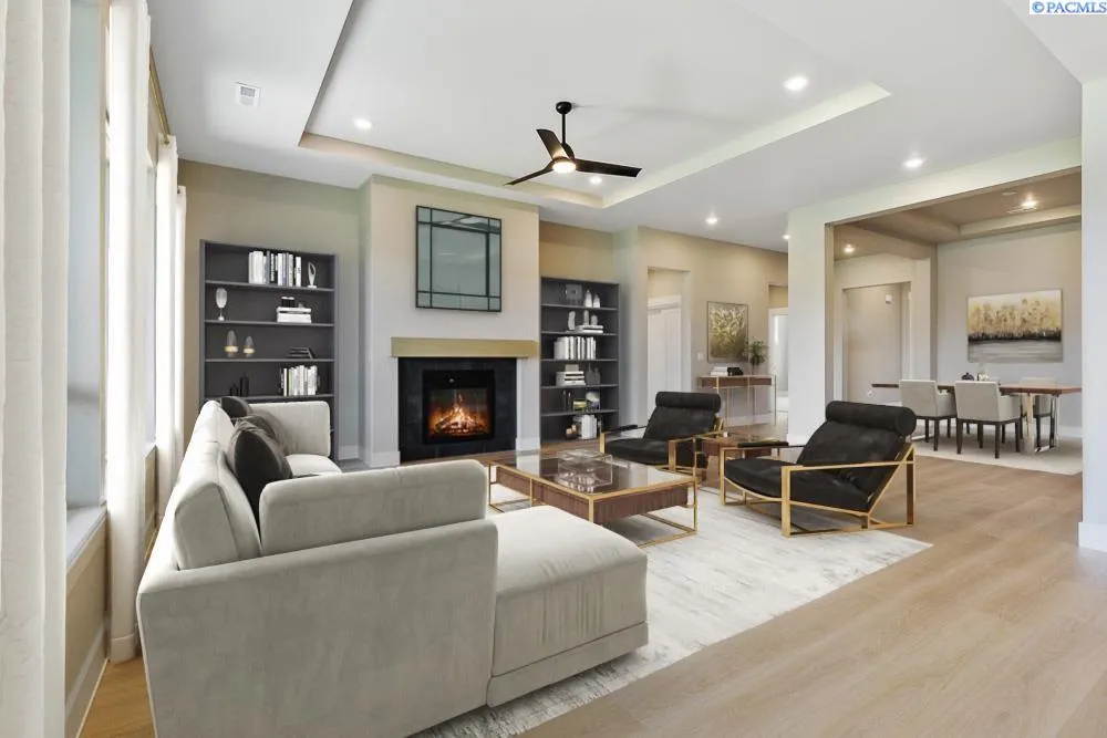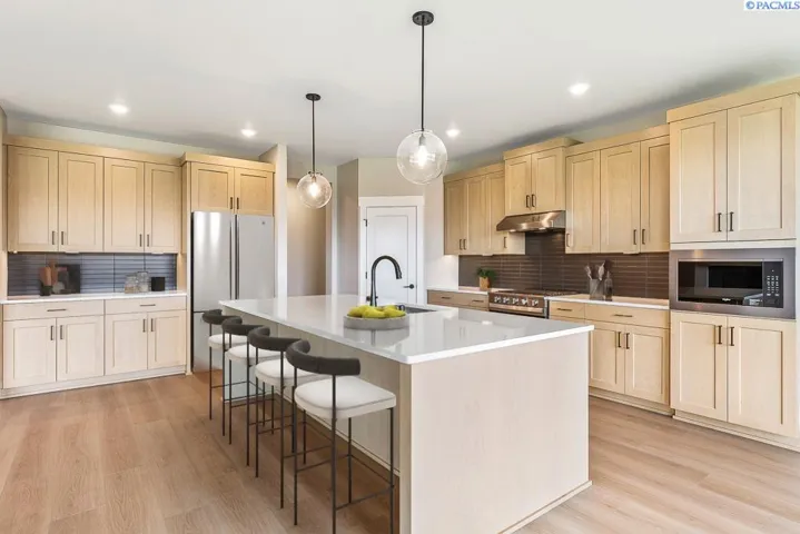 MLS# 280361 Luxury Living in Quail Ridge at Horn Rapids Welcome to Lot 49, Phase III in the prestigious Quail Ridge community by Pahlisch Homes—where resort-style amenities including a sparkling pool, clubhouse, and fitness center elevate everyday living. The stunning Bentley floor plan offers 2,571 sq. ft. of thoughtfully designed living space, blending elegance with functionality. The open-concept great room showcases soaring ceilings and expansive windows, flowing seamlessly into the gourmet kitchen featuring sand-stained soft-close cabinetry, quartz countertops, stainless steel appliances—including a premium refrigerator—walk-in pantry, and a formal dining area, making it ideal for hosting in style. Retreat to the luxurious primary suite, privately positioned for peace and relaxation. Additional highlights include a guest suite, dedicated home office, floating base cabinetry, cozy gas fireplace, and a spacious covered patio—perfect for enjoying outdoor living year-round. Smart Home features are seamlessly integrated, including a smart thermostat, smart deadbolt, and garage door opener for modern convenience. Professionally landscaped front and rear yards with full fencing are included, making this home truly move-in ready. This exceptional home offers refined comfort, designer upgrades, and access to one of the Tri-Cities’ most sought-after communities. * Lot 49, Phase III of Quail Ridge *Open for tours Friday–Tuesday, Please contact to schedule a private tour. * Photos are of actual home.