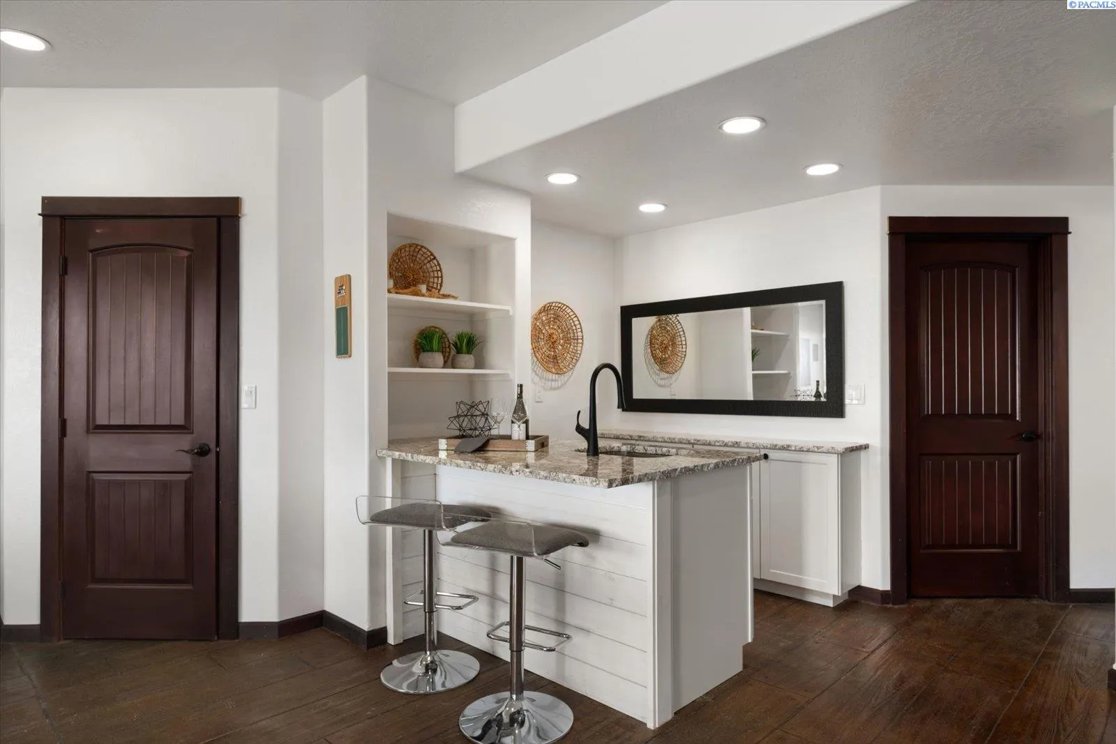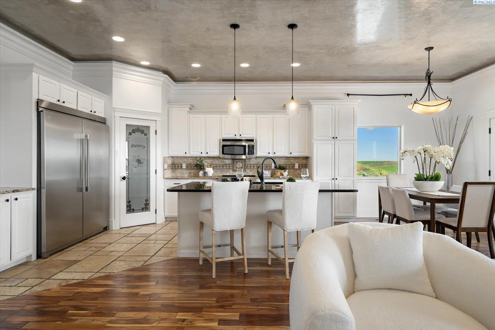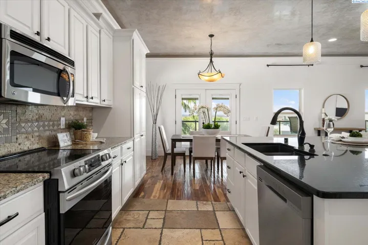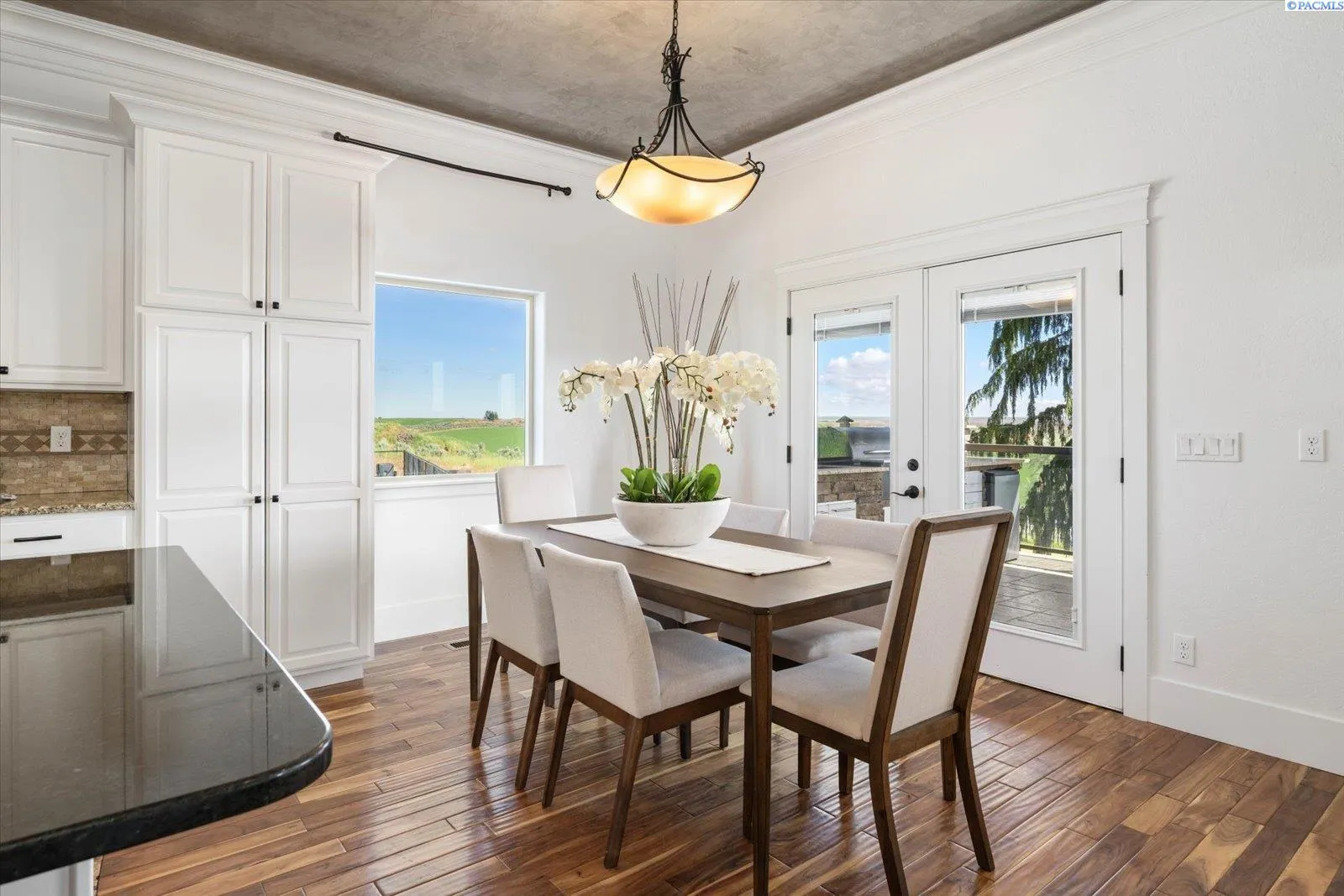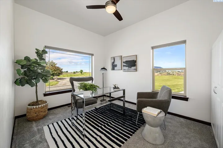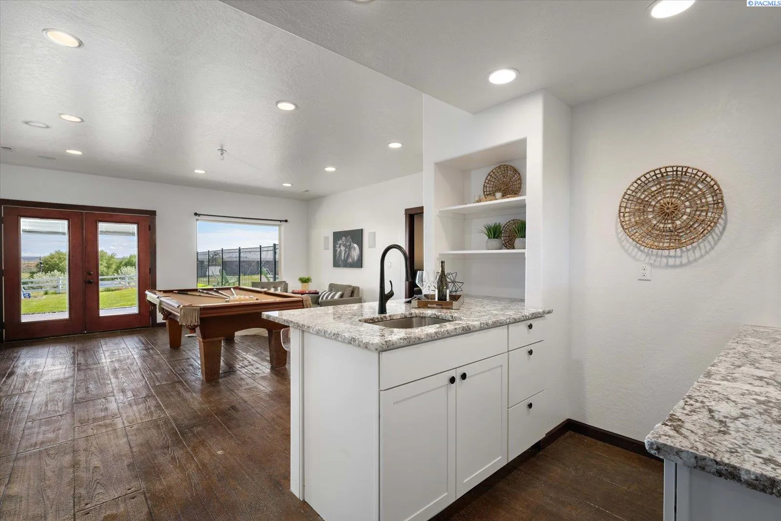 MLS# 284267 Presenting this exclusive premier listing – Discover unparalleled privacy and resort-style living just 12 minutes north of Pasco, Washington. Nestled on 4.34 acres, this extraordinary 4-bedroom, 5-bath estate offers 3,356 sq ft of luxury and functionality, thoughtfully designed for upscale entertaining and everyday comfort. The open-concept kitchen and living area exude modern elegance with an oversized granite island, brand new built-in fridge/freezer, large pantry, Venetian plaster ceiling, custom millwork, and ambient LED up-lighting. The main level features a versatile bedroom or office, full bath, and spacious laundry/mudroom with oversized sink. The massive primary suite is a private retreat with French doors opening to the outdoor oasis and covered patio, a large walk-in closet, and a spa-like en-suite with self-heated two-person Jacuzzi tub, dual showerheads with rain feature, dual vanities, heated towel rack, and smart TV. The daylight basement continues the luxury experience with stamped and stained wood-look concrete floors, two additional bedrooms (one with walk-in closet), full bath, game room with pool table, and a custom wet bar with sink and luxury cabinetry. The professionally designed theater room includes a half bath, no-touch urinal, climate control, and 8” steel-reinforced safe room. Outdoor living is truly unmatched, featuring a 43,000-gallon lagoon-style pool with swim-up bar, grotto rock waterfall, waterslide, two white sand beaches, bridge, 20+ person hot tub with waterfalls, and a gas fire pit. Additional highlights include a miniature lake with sand beach and firepit, an outdoor amphitheater with 200”+ drop-down screen and built-in bar, and an outdoor bathroom with shower for pool guests. The upper stamped concrete deck offers panoramic territorial views of the Basin and Blue Mountains and includes a custom built-in Traeger grill, outdoor kitchen, sink, and refrigerator. The lower covered patio features outdoor speakers and more stamped concrete for seamless entertainment. A newly added sport court with pickleball and a fully fenced, irrigated pasture for horses or livestock make this property both luxurious and functional. With a private drive, low-maintenance pre-stained concrete siding, standing seam metal roof, and proximity to schools, highway access, and Country Mercantile nearby, this one-of-a-kind estate is a rare opportunity in the Tri-Cities.