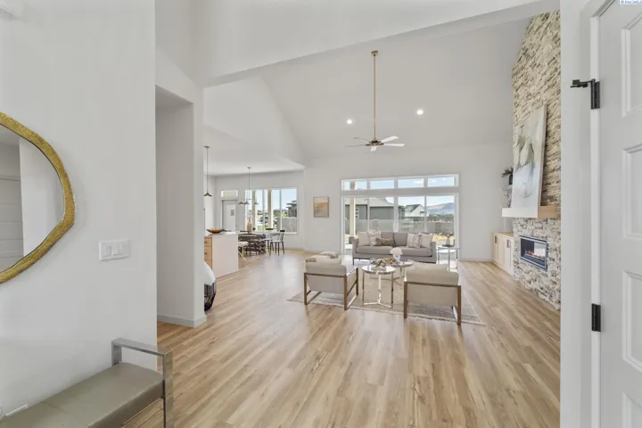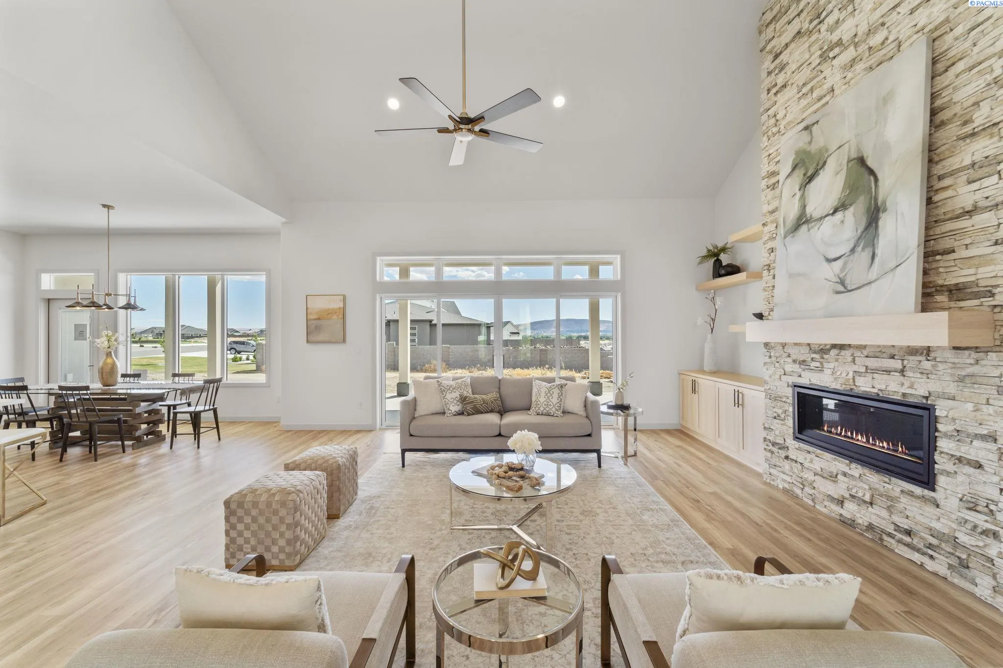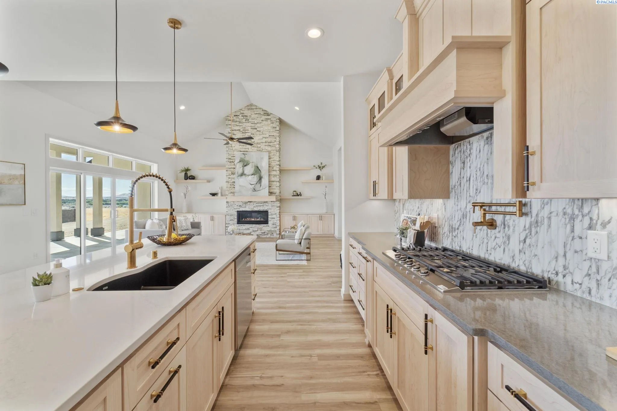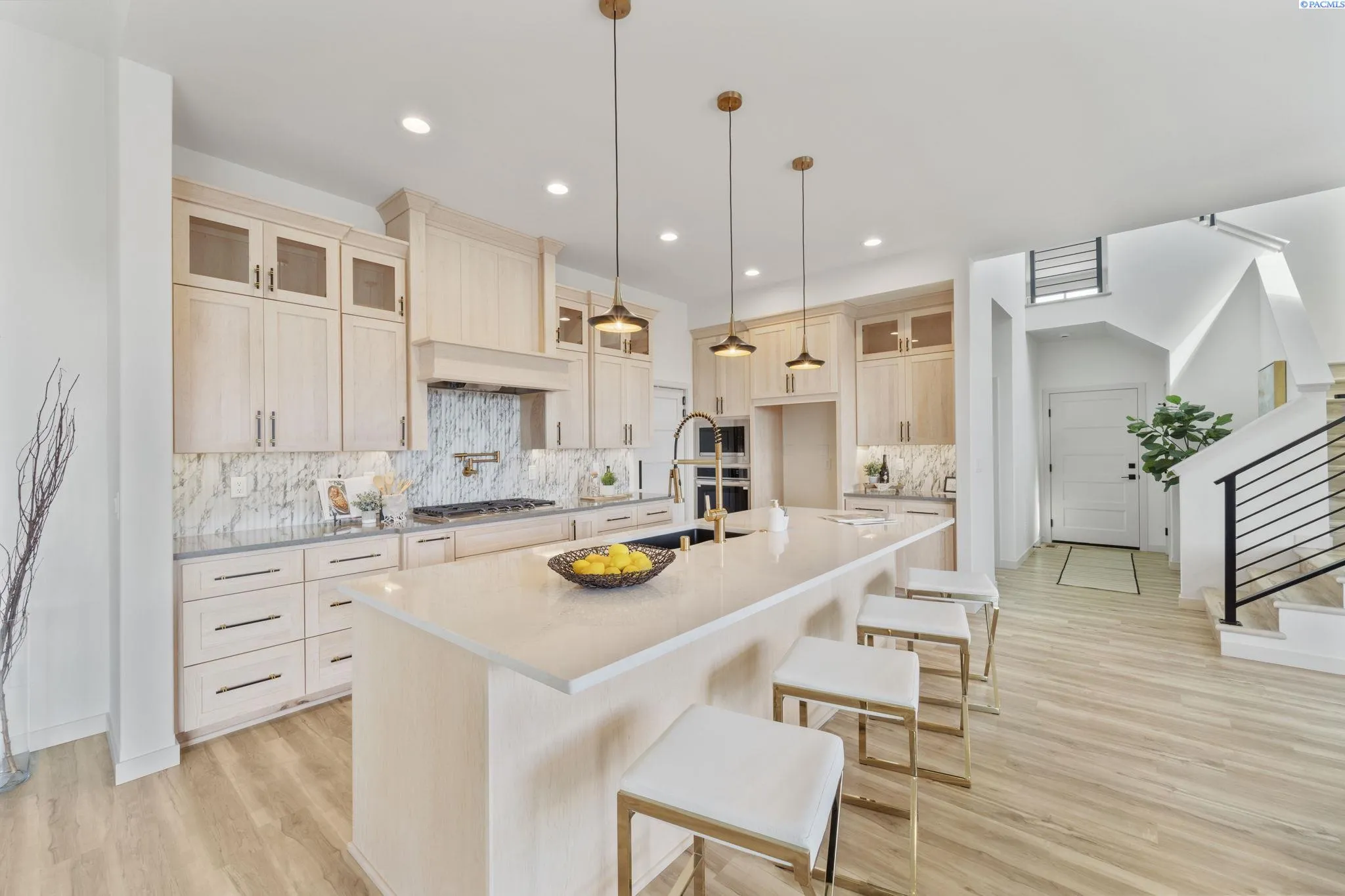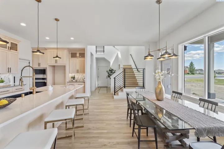 MLS# 284261 HOLIDAY BUILDER SPECIAL! $10,000 PRICE REDUCTION + $10,000 BUILDER CREDIT Use toward LANDSCAPING or FENCING. Discover unparalleled living in this exquisite custom-built home by Greg Senger Construction, boasting expansive panoramic views. Situated on a generous .65-acre lot in the prestigious Eagle Crest neighborhood of Pasco, this 3,238 square foot single-family residence offers a perfect blend of luxury and functionality. Step into a world of elegance with raised and vaulted ceilings that create an airy, open atmosphere throughout the main floor’s 2,558 square feet. The great room, anchored by a cozy gas fireplace, flows seamlessly into a gourmet kitchen featuring custom-built maple cabinets, quartz countertops, designer backsplash and stainless-steel appliances and is open to the large dining area. Luxury vinyl plank flooring graces most of the home, while the primary suite and main bath boast elegant tile floors. The spacious primary suite is a true retreat, complete with a luxurious bath featuring a soaking tub, walk-in tile shower, and the convenience of stackable laundry hookups in the generous closet. Two additional bedrooms, a study, and a large laundry center complete the main floor living space. Upstairs, a 680 square foot bonus room with a wet bar and full bath provides the perfect entertainment space or potential guest quarters. This versatile area expands the home’s living possibilities, ideal for various lifestyles and needs. Outdoor living is a dream with the 644 sq ft covered back patio, stubbed for a gas BBQ and offering the perfect vantage point to soak in the breathtaking river views. The expansive lot provides ample space for future additions such as a shop & pool, making it ideal for those who love to entertain or pursue outdoor passions.Additional features include a mud room for added convenience, a high-efficiency Carrier heat pump, and installed solar panels for energy efficiency. The home is plumbed for a water softener, and the spacious 1,025 square foot three-car garage is wired for an electric vehicle charger. The exterior showcases a stunning combination of stucco with krackshield, cultured stone, and wood siding accents. Located in the desirable Eagle Crest community, this home offers the perfect balance of privacy and accessibility. Whether you’re seeking a family haven or an executive retreat, this property delivers on all fronts.