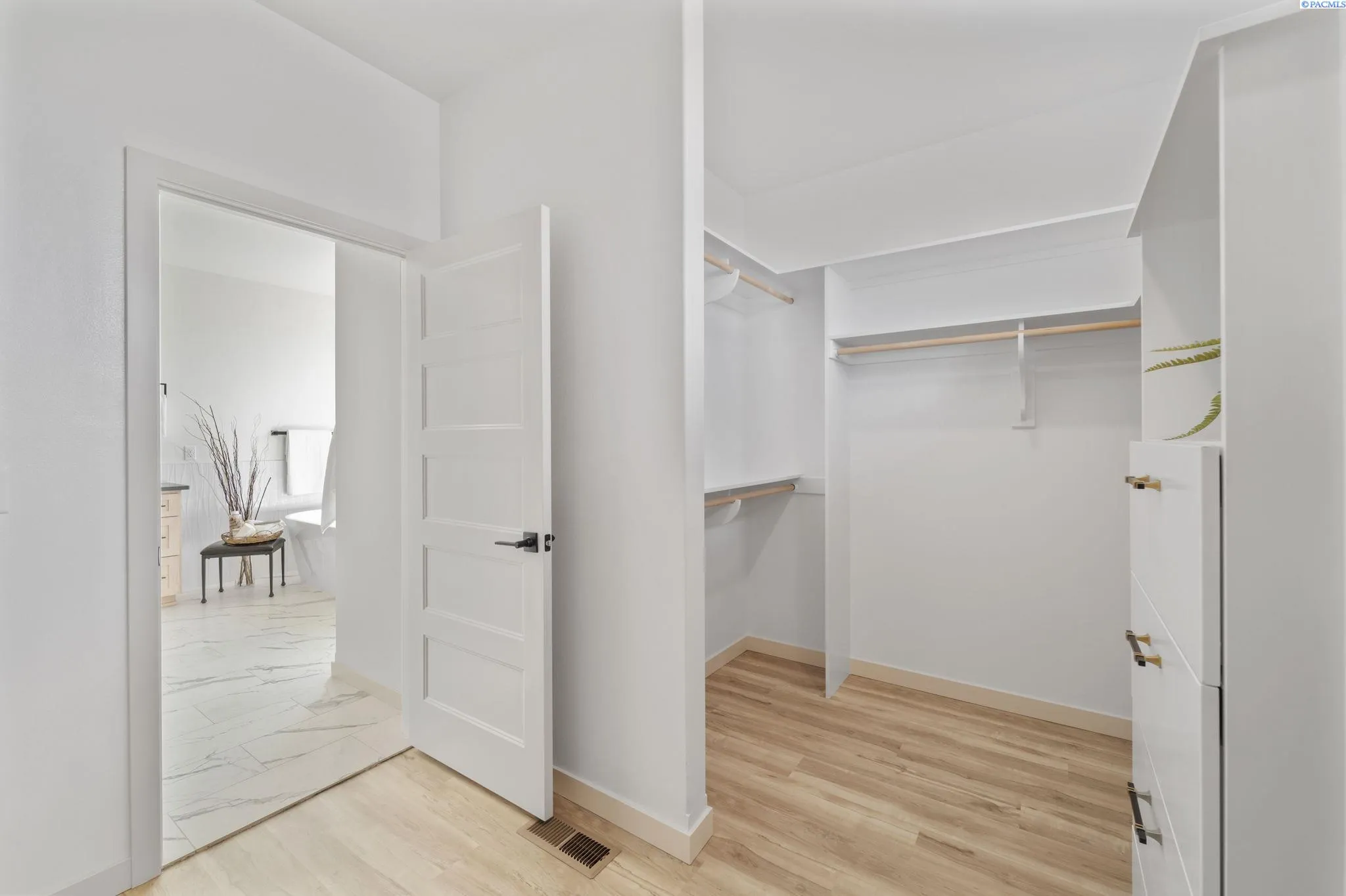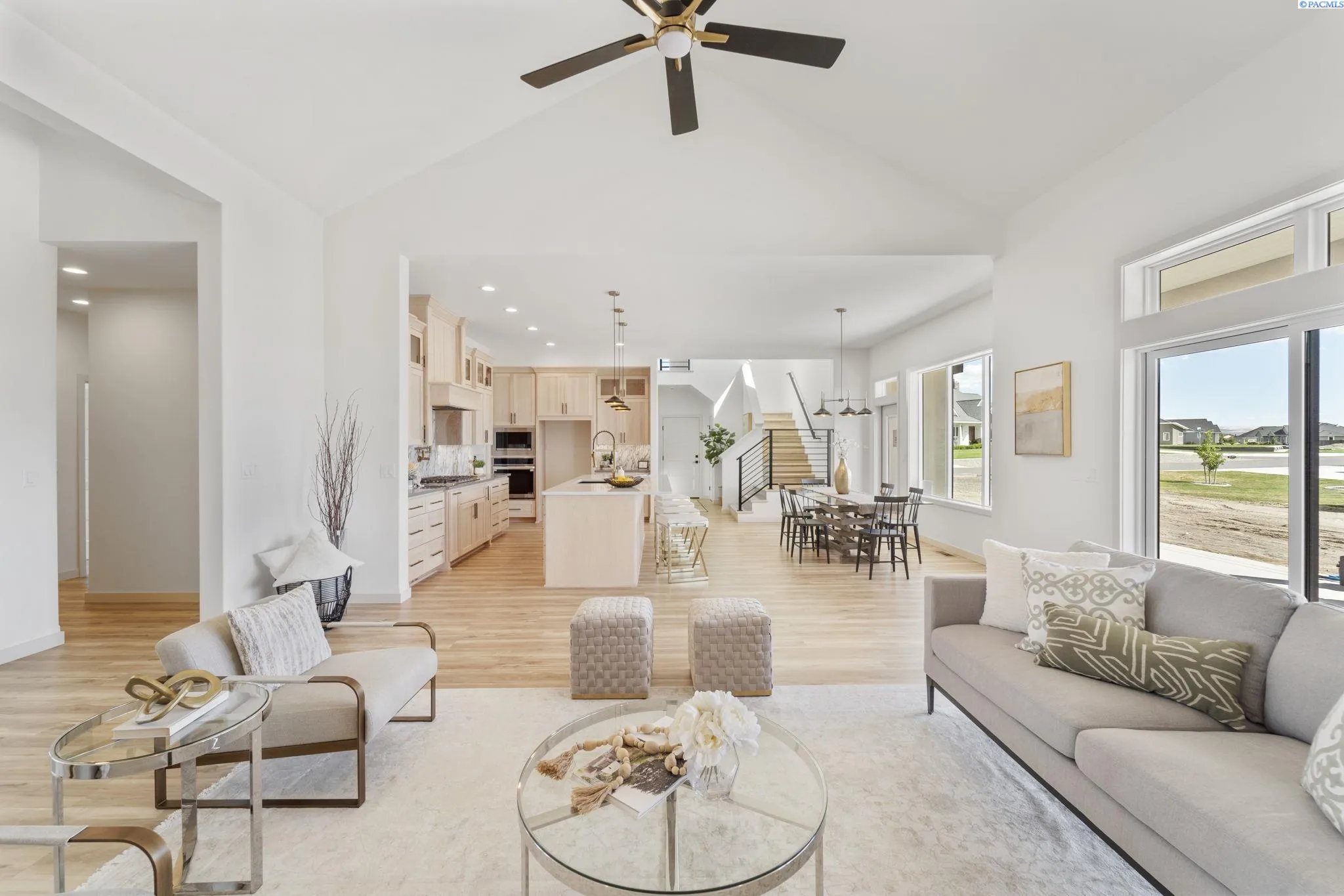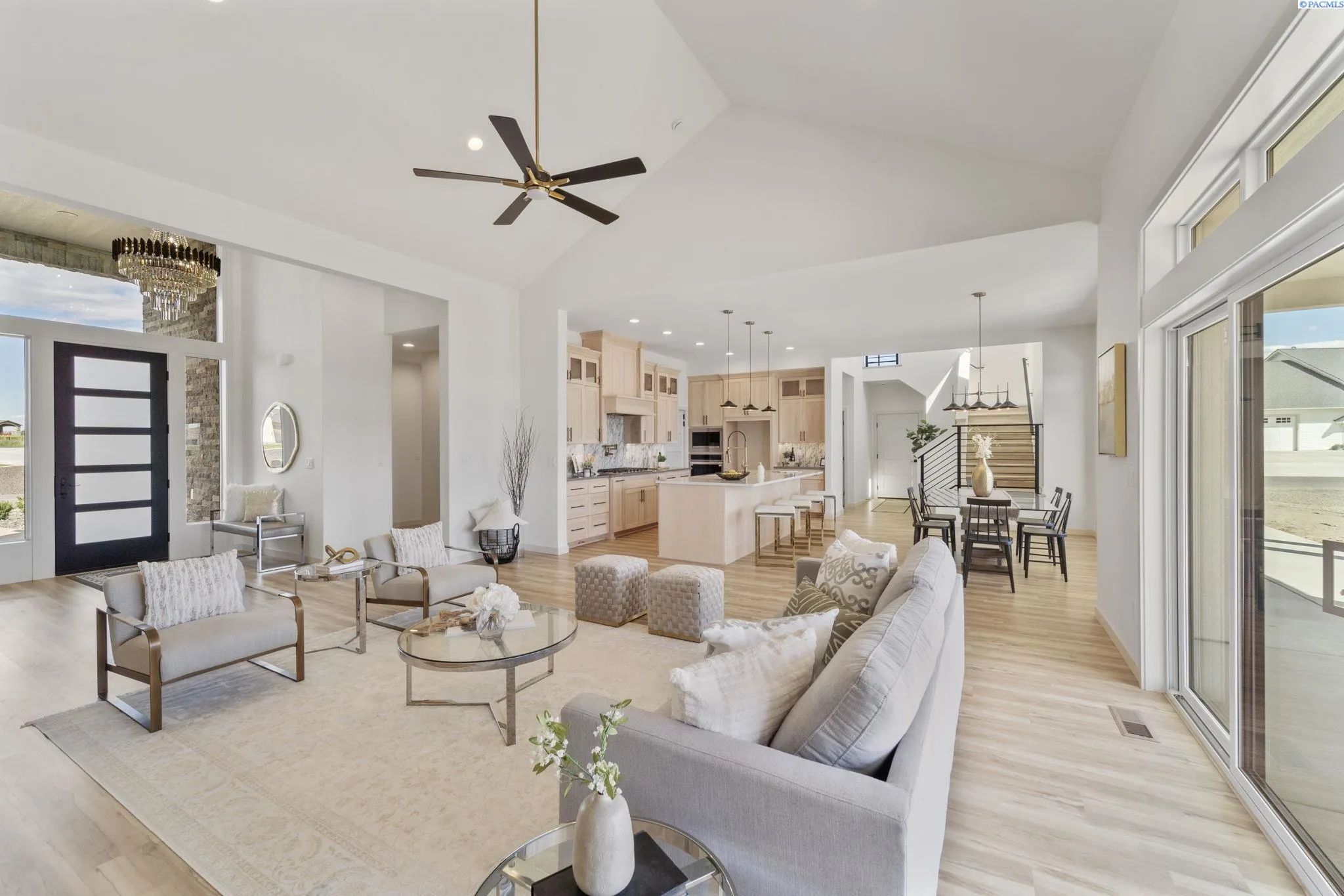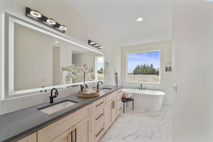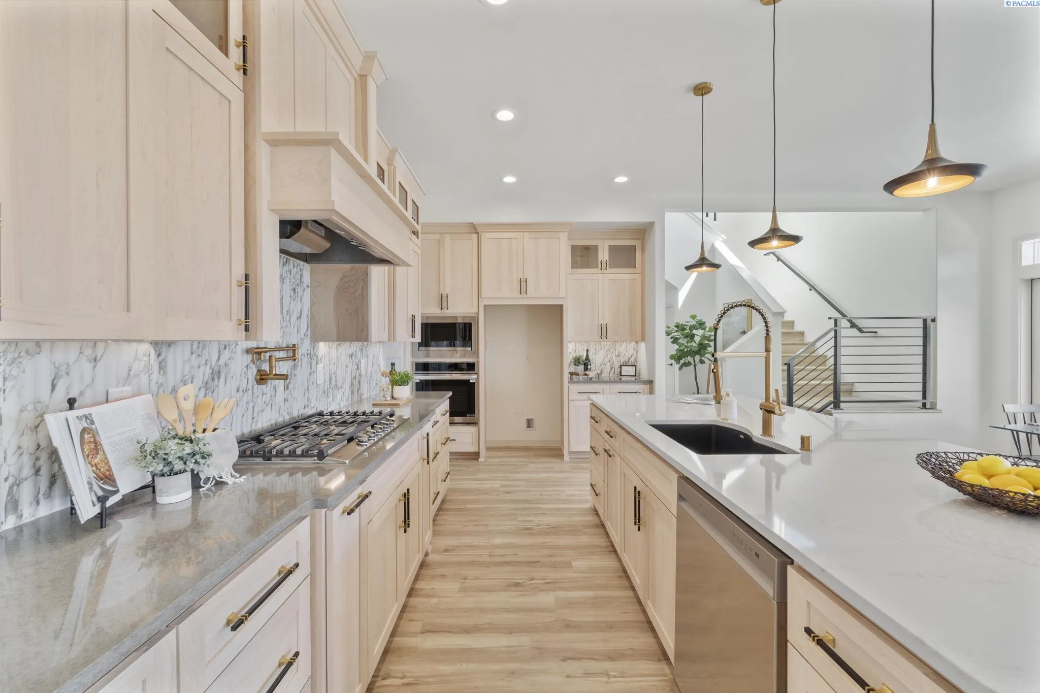 MLS# 284261 HOLIDAY BUILDER SPECIAL! $10,000 PRICE REDUCTION + $10,000 BUILDER CREDIT Use toward LANDSCAPING or FENCING. Discover unparalleled living in this exquisite custom-built home by Greg Senger Construction, boasting expansive panoramic views. Situated on a generous .65-acre lot in the prestigious Eagle Crest neighborhood of Pasco, this 3,238 square foot single-family residence offers a perfect blend of luxury and functionality. Step into a world of elegance with raised and vaulted ceilings that create an airy, open atmosphere throughout the main floor’s 2,558 square feet. The great room, anchored by a cozy gas fireplace, flows seamlessly into a gourmet kitchen featuring custom-built maple cabinets, quartz countertops, designer backsplash and stainless-steel appliances and is open to the large dining area. Luxury vinyl plank flooring graces most of the home, while the primary suite and main bath boast elegant tile floors. The spacious primary suite is a true retreat, complete with a luxurious bath featuring a soaking tub, walk-in tile shower, and the convenience of stackable laundry hookups in the generous closet. Two additional bedrooms, a study, and a large laundry center complete the main floor living space. Upstairs, a 680 square foot bonus room with a wet bar and full bath provides the perfect entertainment space or potential guest quarters. This versatile area expands the home’s living possibilities, ideal for various lifestyles and needs. Outdoor living is a dream with the 644 sq ft covered back patio, stubbed for a gas BBQ and offering the perfect vantage point to soak in the breathtaking river views. The expansive lot provides ample space for future additions such as a shop & pool, making it ideal for those who love to entertain or pursue outdoor passions.Additional features include a mud room for added convenience, a high-efficiency Carrier heat pump, and installed solar panels for energy efficiency. The home is plumbed for a water softener, and the spacious 1,025 square foot three-car garage is wired for an electric vehicle charger. The exterior showcases a stunning combination of stucco with krackshield, cultured stone, and wood siding accents. Located in the desirable Eagle Crest community, this home offers the perfect balance of privacy and accessibility. Whether you’re seeking a family haven or an executive retreat, this property delivers on all fronts.