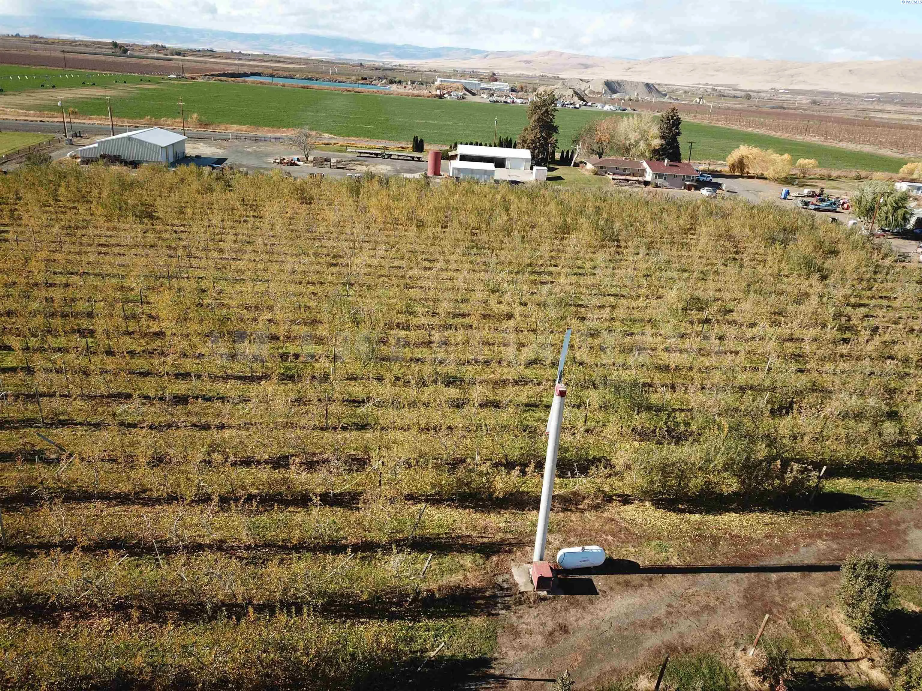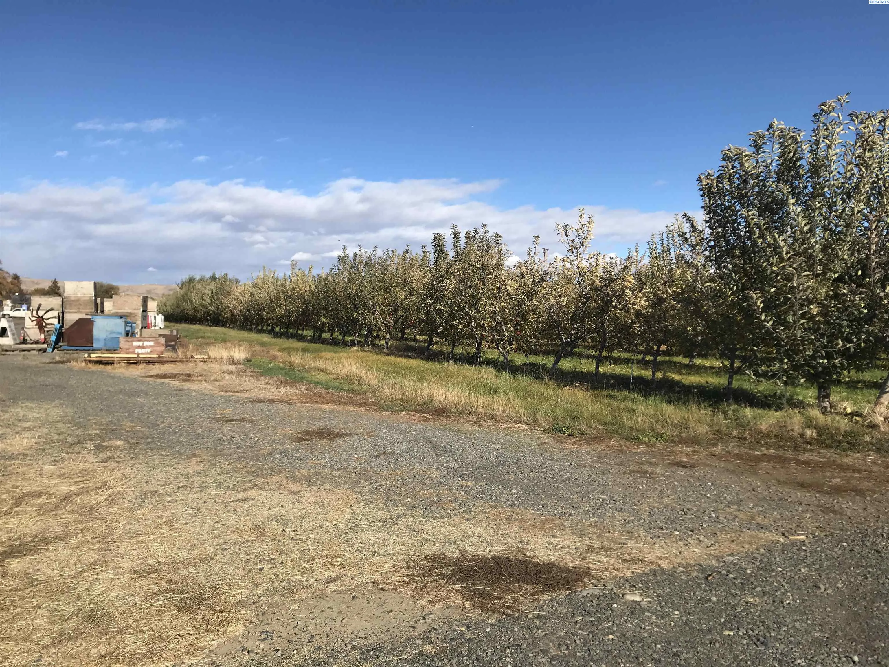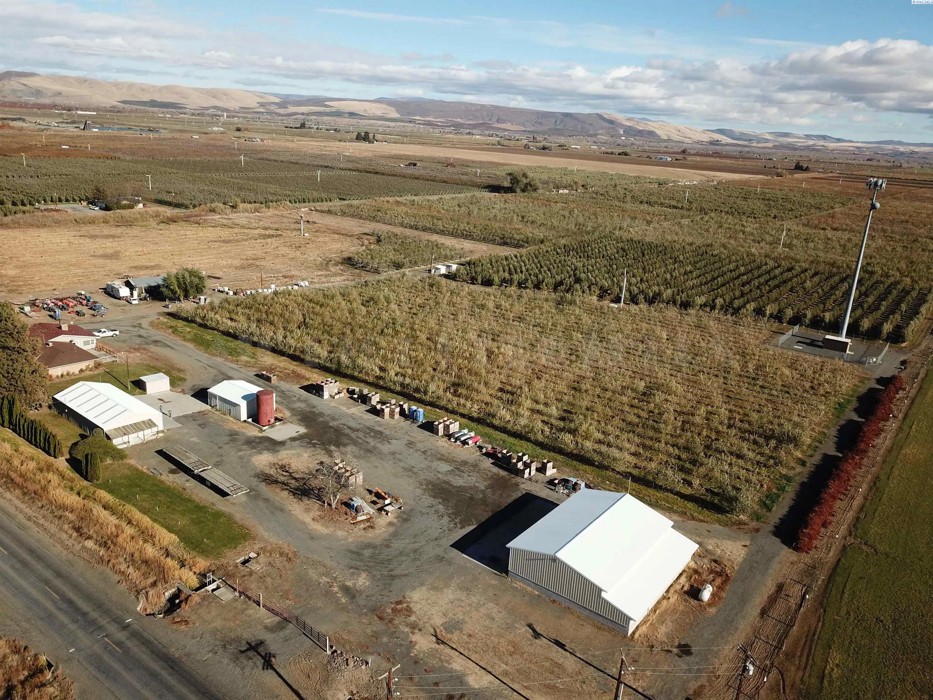 MLS# 280153 2 parcels to be sold as one transaction. Cell tower on south side is not included in the sale. This sale includes a mid-60’s-built house, detached garage/storage and a 3328 sf. metal shop built in 2012 that also has a full paint booth in it. Included is a wind machine, ladders & harvesting equipment, 2 tractors and a fork lift, plus sprayers, blowers and other equipment to operate the farm. Apples were planted in 1997-2014 in various blocks, and have permanent under tree irrigation. Apples are Gale gala, Pink Lady and late gala. Equipment inventory is a substantial part of the transaction and will be treated as personal property on a ‘Bill of Sale’. House is 2072 sf, 1-level with a cellar-type bsmt, 3 bedrooms, 1 3/4 baths, formal dining and living rooms, family room, office and a breakfast area in the kitchen. Kitchen was remodeled in about 2015, with new cabinets, marble countertops, tile floor, glass-top range and much more! The oversized laundry room has a separate soaking sink. There are 2 wood burning fireplace inserts in the home. Deck is 21×33, fenced front yard, newer roof and over-sized finished garage. Farm with large shop can be sold separately, but the house cannot sell separately unless the land sells first.