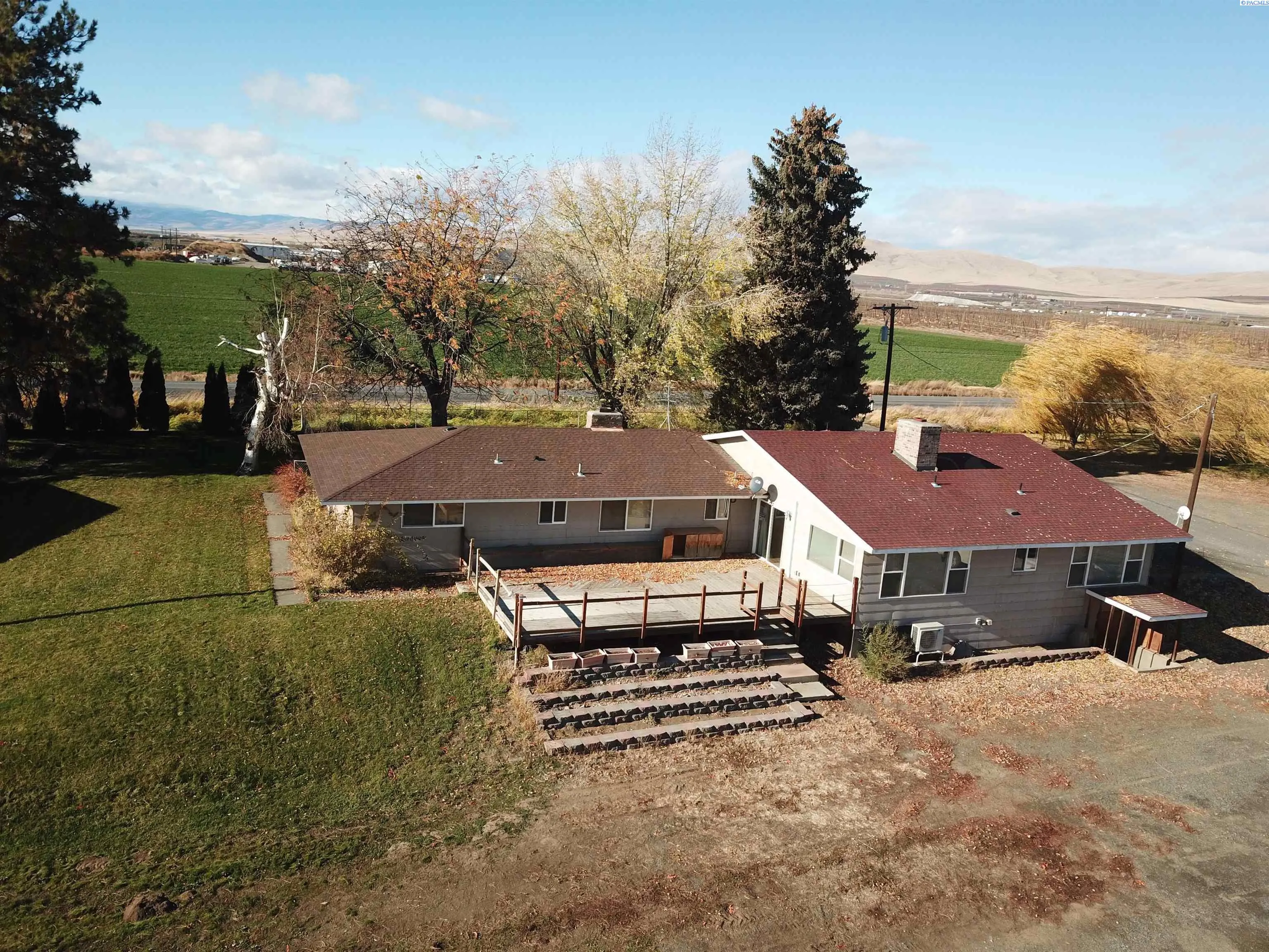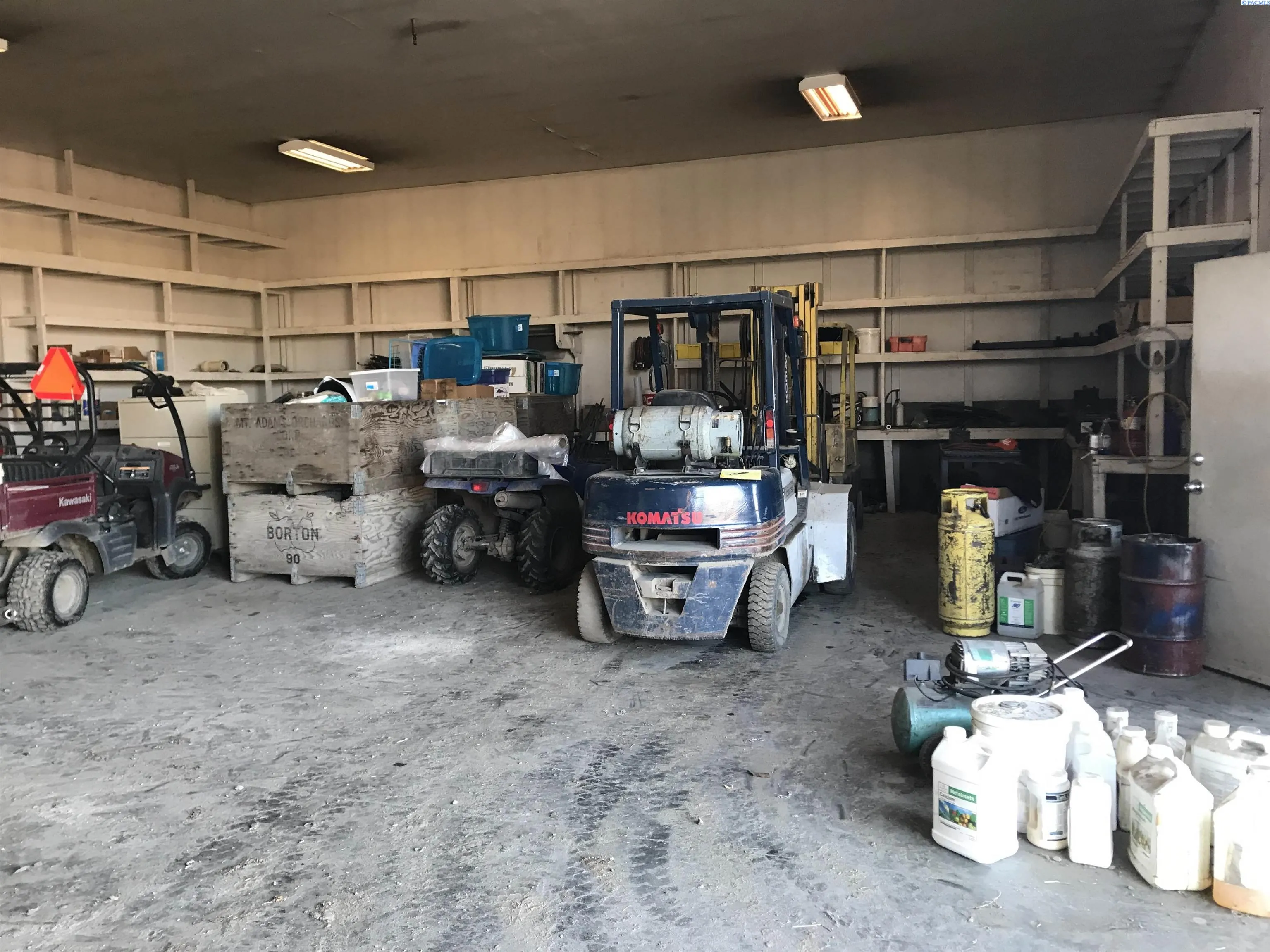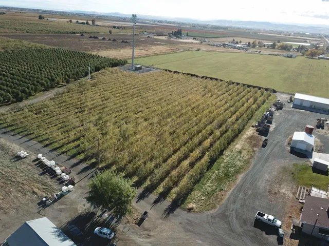 MLS# 280153 2 parcels to be sold as one transaction. Cell tower on south side is not included in the sale. This sale includes a mid-60’s-built house, detached garage/storage and a 3328 sf. metal shop built in 2012 that also has a full paint booth in it. Included is a wind machine, ladders & harvesting equipment, 2 tractors and a fork lift, plus sprayers, blowers and other equipment to operate the farm. Apples were planted in 1997-2014 in various blocks, and have permanent under tree irrigation. Apples are Gale gala, Pink Lady and late gala. Equipment inventory is a substantial part of the transaction and will be treated as personal property on a ‘Bill of Sale’. House is 2072 sf, 1-level with a cellar-type bsmt, 3 bedrooms, 1 3/4 baths, formal dining and living rooms, family room, office and a breakfast area in the kitchen. Kitchen was remodeled in about 2015, with new cabinets, marble countertops, tile floor, glass-top range and much more! The oversized laundry room has a separate soaking sink. There are 2 wood burning fireplace inserts in the home. Deck is 21×33, fenced front yard, newer roof and over-sized finished garage. Farm with large shop can be sold separately, but the house cannot sell separately unless the land sells first.