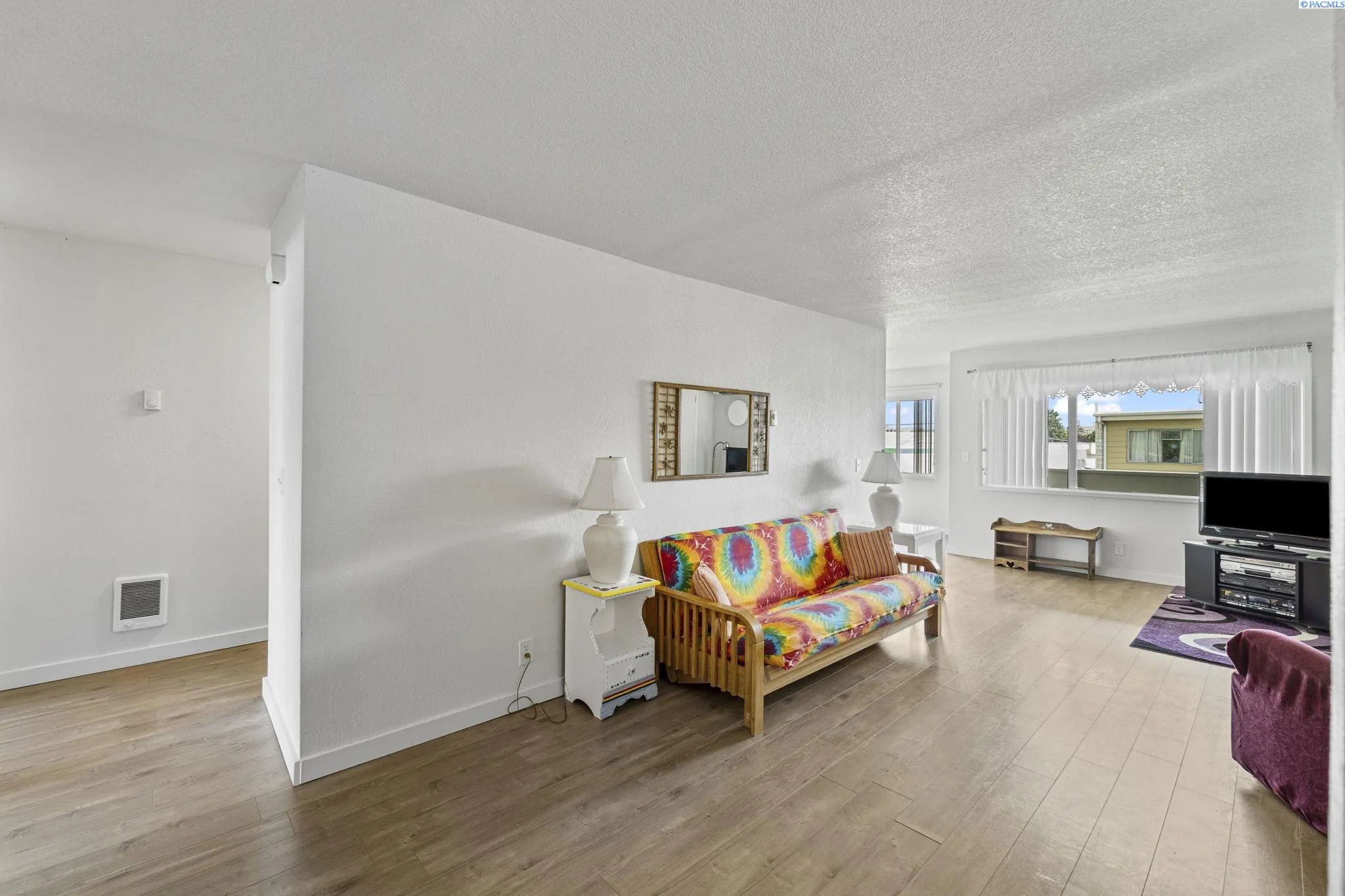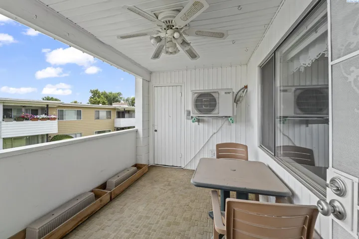 MLS# 285687 Completely remodeled in 2020. The kitchen features Granite countertops, cabinets with soft-close drawers, and stainless steel kitchen appliances. Full tile backsplash. New mini split heat pump. There is also auxiliary radiant ceiling heat. Flooring includes carpet in the bedrooms and LVP in the living room, dining room and kitchen, bathroom, and laundry area has vinyl flooring. Even the lights, switches, and outlets were changed during the remodel. Water heater 2020. The bathroom features matching solid surface vanity and tiled tub/shower. Covered balcony with an enjoyable view of Kennewick hills. On the covered balcony is extra storage. Each unit comes with a covered carport and locked storage room. Quiet little complex centrally located in Richland. Easy walk to dining, shopping, the river or medical appointments. $306 month cooperative fee covers, property tax, water, sewer, trash, outside maintenance and grounds.