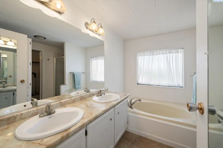 MLS# 285850 Spacious 1,800+ Sq Ft Home in 55+ Desert Pines Community — Priced Under $70K!Priced for a quick sale as the owner has relocated to assisted living. This well-maintained manufactured home offers over 1,800 sq ft of comfortable, functional living space. Fresh exterior paint, a carport with a covered patio, and a back deck make outdoor living easy and enjoyable.Inside, you’ll find a generous primary suite featuring a large master bath with dual-sink vanity, walk-in shower, and relaxing garden tub. The home offers both a formal living room and a separate family room, plus a spacious dining area open to an expansive kitchen with abundant cabinetry and storage.The split-bedroom layout places two additional bedrooms, 1 has no closet and a second full bath on the opposite side of the home for added privacy. A convenient laundry room with folding counter, washer, and dryer included, completes the thoughtful floor plan.Located in Desert Pines, a welcoming 55+ community known for its wide streets, sidewalks, and neighborhood charm BONUS no charge for owners RV parking lot. Schedule your private showing today and discover the exceptional value this home offers!