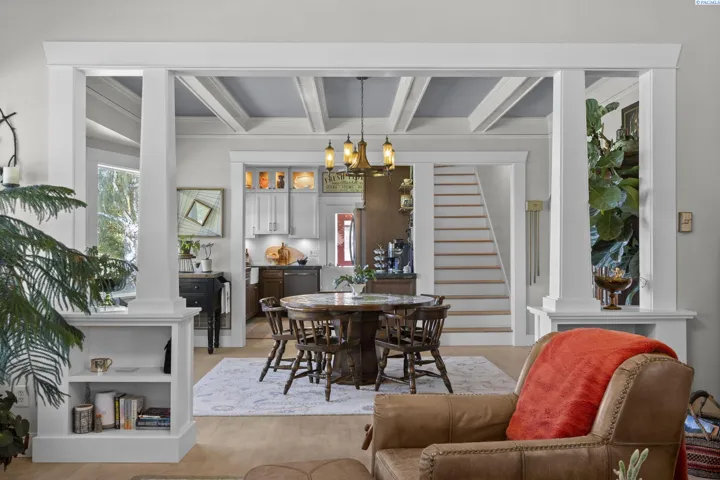 MLS# 285846 Welcome to 106 7th Street, Prosser, WA—a rare riverfront gem on nearly half an acre in the heart of Prosser’s wine country. Just minutes from 14 Hands Winery, one of Washington’s leading wineries, and surrounded by more than 20 wineries offering award-winning tasting rooms and vineyard experiences, this location is truly exceptional. With only six homes along this treasured stretch, opportunities like this are once in a lifetime. Inside, history and comfort blend seamlessly. The main level has been fully remodeled while preserving its historic charm and hardwood floors throughout. The cozy living room features a wood-burning fireplace and opens into a formal dining room framed by original wood beams. The updated kitchen boasts custom cabinetry, all-new appliances, a walk-in pantry, and a farmhouse sink with stunning river views. Off the dining area are two bedrooms and a beautifully updated 3/4 bath. A screened-in back porch leads to an open-air deck, perfect for relaxing after a long day while enjoying the river breeze. Upstairs, an oversized bonus room with a half bath and river-facing windows offers a peaceful flex space, ideal for guests, home office, or relaxing private reading nook. Downstairs, the unfinished basement includes a laundry area and walk-out access to the backyard, full of potential. Professionally landscaped with a garden area and mature trees, and pressurized timed irrigation the yard is your private sanctuary. Two winding paths lead to the river’s edge where you will enjoy 170ft of water front access, where you can kayak, paddleboard, or simply unwind. Watch sunsets paint the sky, sip wine on the deck, and enjoy the hot air balloons drifting overhead, especially during the Prosser Balloon Festival. The spacious detached 2 car garage offers ample parking and space for a private workshop. The inviting front porch welcomes you home, while the entire property invites you to slow down, connect, and live with intention. This is more than a home, this is a riverfront wine-country lifestyle—rich in character, surrounded by nature, and perfectly positioned to enjoy the best of Prosser.