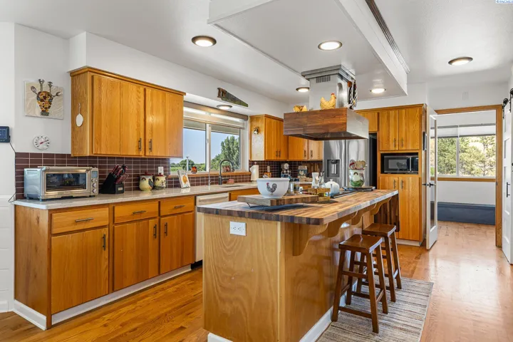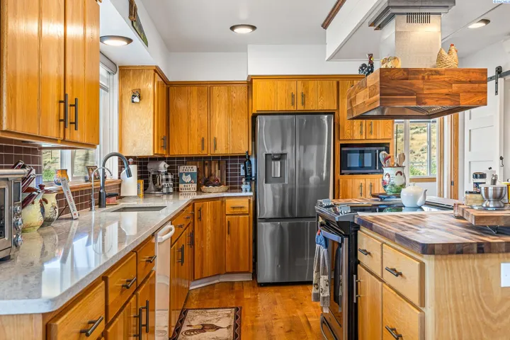 MLS# 285837 Wouldn’t it be nice to know you’re going to be ok no matter what happens? Cherryview Farm is a self sufficient little piece of heaven on earth nestled right between Terra Blanca Winery and Tucannon Cellars. 10.21 total acres to create the life you’ve been dreaming of, growing some of the best Rainier cherries in the world from roughly 6 acres of the income producing cherry orchard. You’ll have senior water rights to the Yakima river with 2 irrigation pumps, a chicken coop, garden beds, Black walnut trees, English walnut trees, mulberry bushes, quince bushes, grapevines, and multiple fruit trees including plum, peach, apricot, red pear, nectarine, and Fuji apple. All this and pasture grass for any animals you’d like to raise, a wood shed, chemical shed, and 48×36 shop. Wondering where you’ll rest after all that farm work? The 3000sf modern farmhouse was built in 1996. Updates began in 2018 and have continued to date. Drop your boots and hang your hat in the entryway then choose the stairs down to the family room, bedroom, full bath, extra storage, laundry room and garage OR take a right to the custom kitchen with butcher block island, hand-milled hardwood oak floors, built-in window bar and pantry. The main floor also includes an office with built-in Murphy bed and full bathroom, dining room, and a living room with the coziest wood burning fireplace. The wrap-around deck and hot tub are perfect for unwinding and enjoying the fruits of your labor. Upstairs is a true sanctuary with your primary bedroom and oversized closet featuring 2 smart mirrors and an extraordinary window view. The large vaulted ceiling living space, full bathroom and 2nd bedroom make it feel even more luxurious and the deck with expansive views of the Yakima river will truly take your breath away. There’s so much that makes this home and property it’s hard to put into words. You should see it for yourself. Schedule the appointment today.
