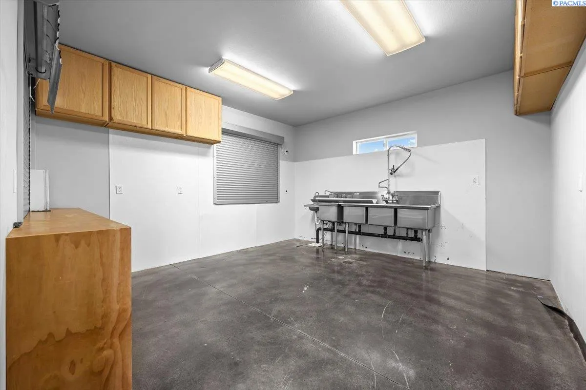 MLS# 270531 Flex building located in West Richland, located right off Van Giesen and Bombing Range Road. Right next to the Flattop Park. CG zoned Flex building is situated on 1.42 Acres and is blacktopped and landscaped for a variety of uses. Zoning will allow for Brewery, Roasting, Retail, Wholesale and other uses. 3,950 SF Clear span building with tall eve heights and 4 roll-up doors will let your business utilize all aspects of this compound. 1,450 SF of finished mezzanine space, 2 ADA restrooms, an Office, and a Kitchenette make this functional setup ready for Clients/Customers. Located at Flattop Hill’s base, the development will offer over 15,000 SF of dynamic space. Hikers from the adjoining trail can soon descend to enjoy artisanal brews and eclectic retail hubs. Crafted by StrickerCRE & Ownership, this fusion of commerce and nature promises a unique, flourishing community. Call your Listing Brokers for more information on this building and future projects.