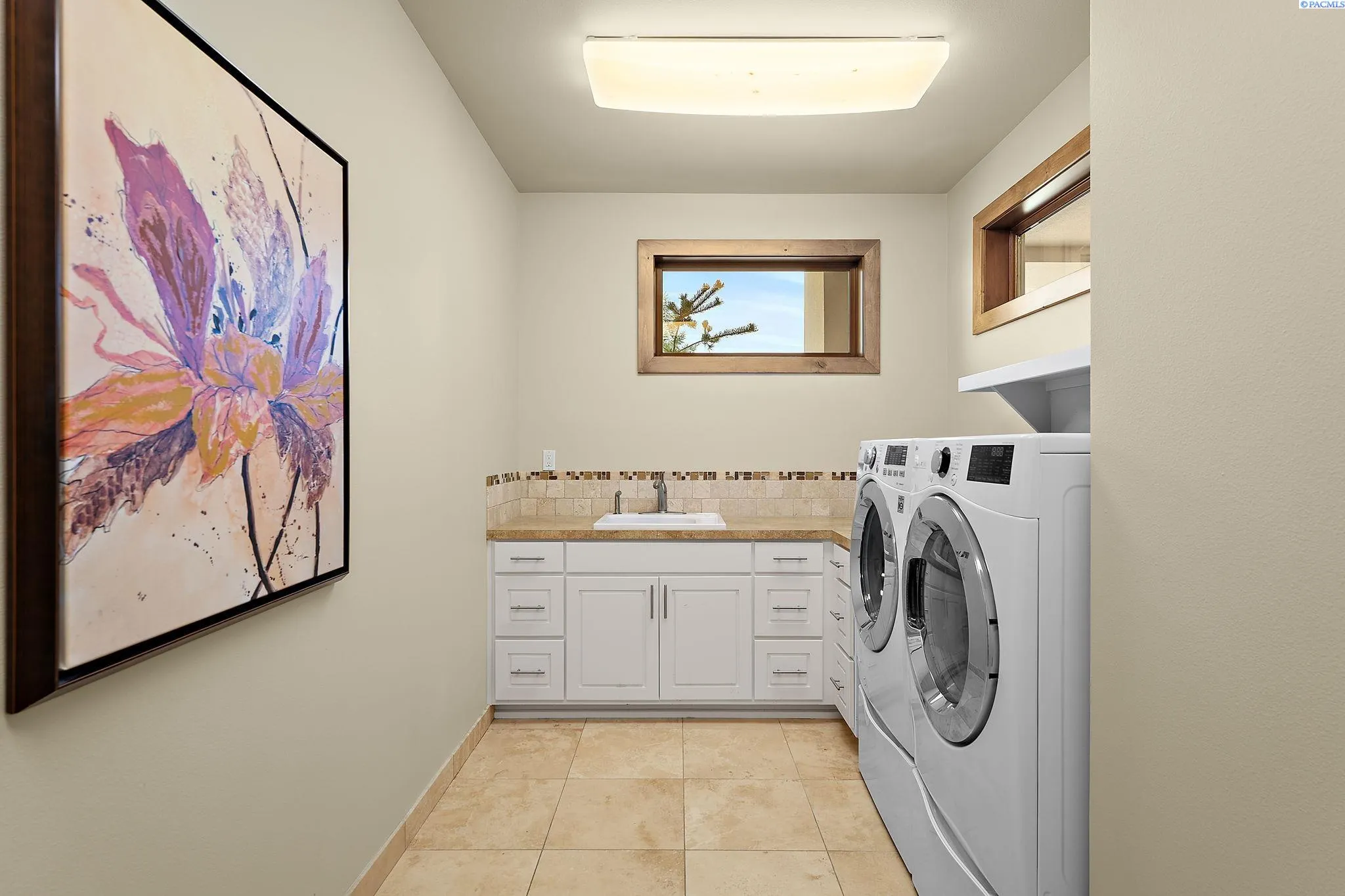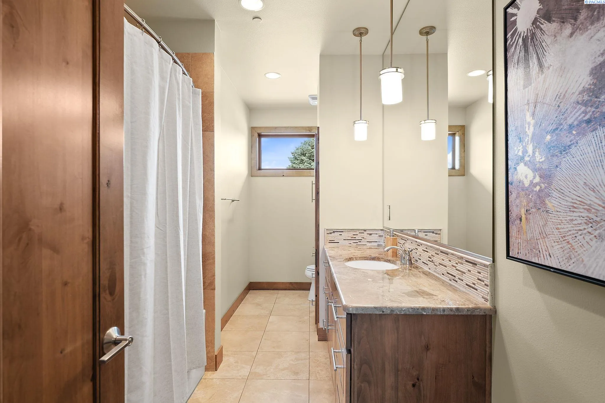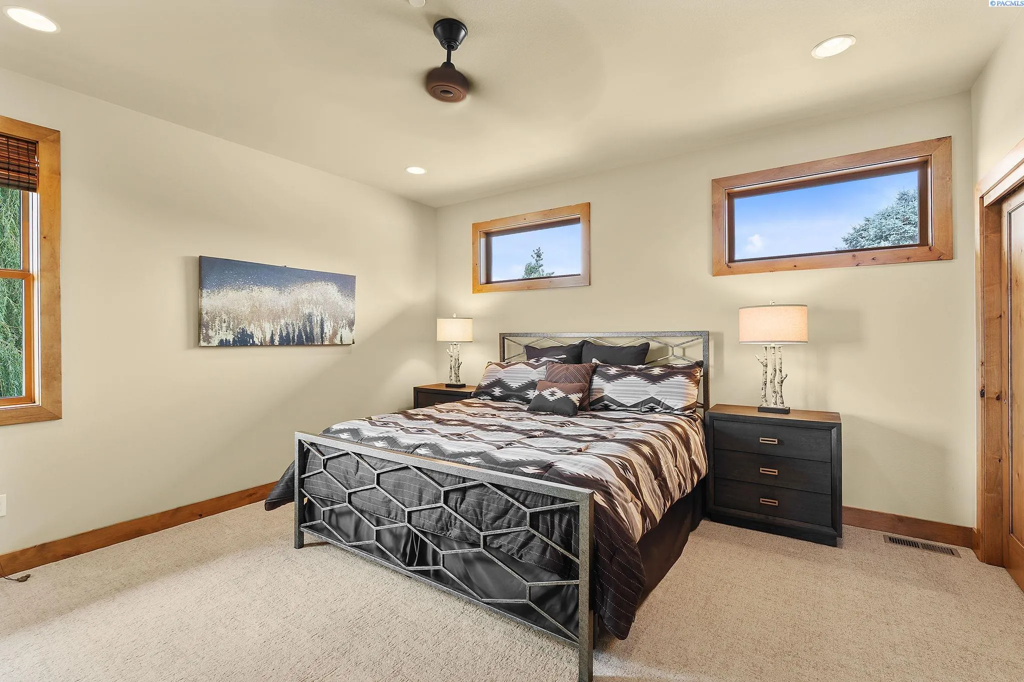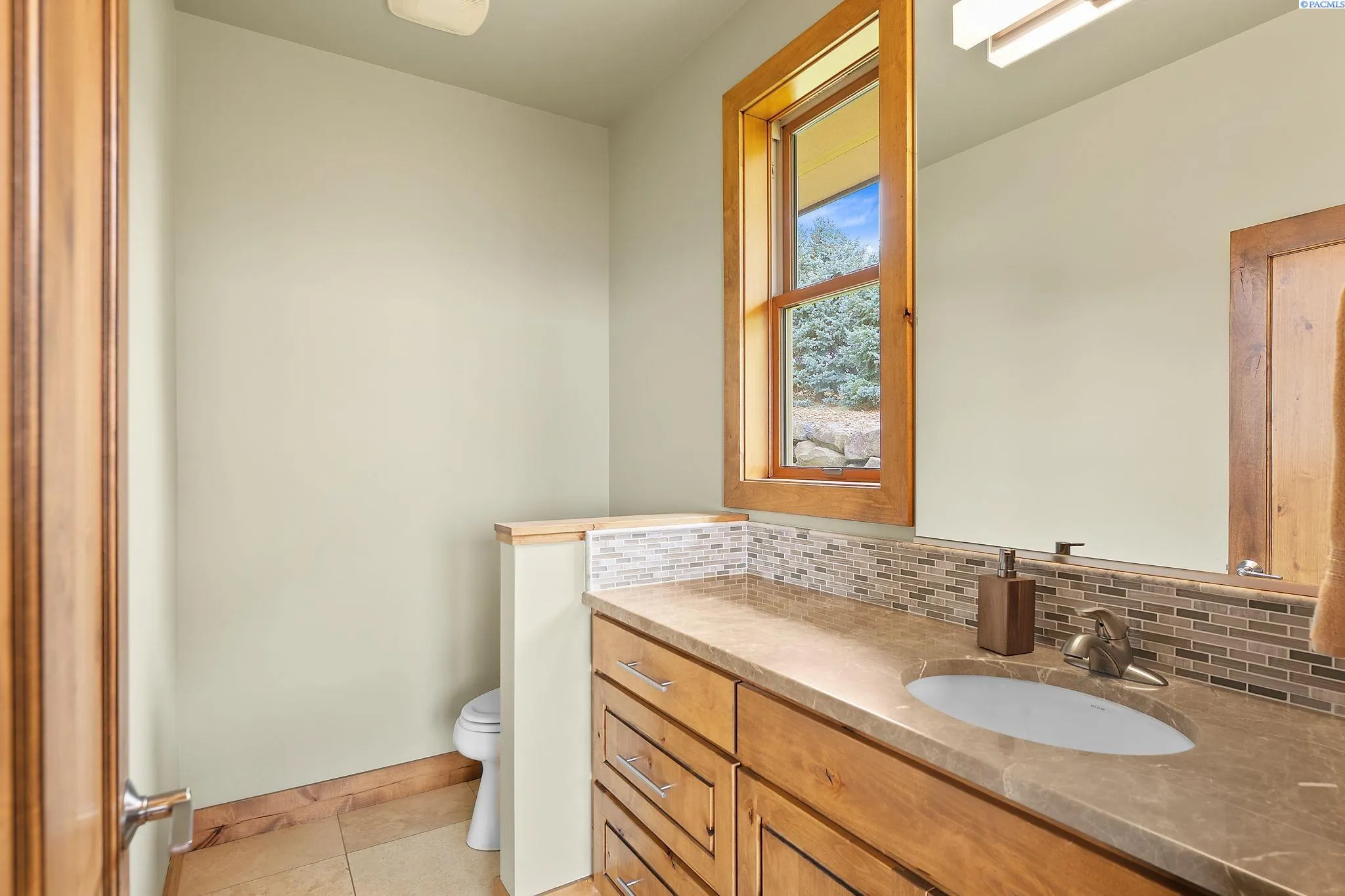 MLS# 286198 Welcome to 1232 N Bermuda Rd in Richland. This private hilltop property combines Tri-Cities views, rustic luxury, and refined living in one of the area’s most coveted locations. From the moment you arrive, you’re welcomed by beautifully landscaped grounds, stone accents, and an inviting covered front porch that sets the tone for what’s to come. Situated on five expansive acres, this stunning home offers views that stretch for miles—an exceptional setting for those seeking both space and scenery. Step inside and be instantly captivated by the living room’s expansive windows that perfectly frame the sweeping skyline. Raised ceilings, rich wood-wrapped windows, and warm knotty wood accents create a sense of rustic elegance throughout. A cozy fireplace anchors the space, flanked by a custom built-in entertainment center with abundant cabinetry—offering both functionality and style. The kitchen is truly the heart of the home—thoughtfully designed for everyday living and effortless entertaining. Featuring an oversized island with an extended breakfast bar that comfortably seats six, a built-in wine fridge, built-in microwave and wall oven, and ample custom cabinetry. The dining room, bathed in natural light from a wall of windows, showcase the home’s elevated setting. A sliding glass door leads to the covered patio, creating seamless indoor-outdoor flow for hosting guests. The spacious laundry room is both practical and stylish, complete with a washer and dryer, utility sink, and extensive cabinetry for storage and organization. Near the laundry room is another secondary bedroom and full guest bath. The primary suite enjoys its own a serene retreat featuring a full wall of windows that bring the outdoors in. The spa-inspired en-suite bath includes a large walk-in shower, an expansive wall mirror with transom windows above, and a generously sized walk-in closet. Step outside to discover a true extension of the home’s luxury—an expansive covered patio surrounded by five acres of pristine grounds. A spacious three-car garage completes this remarkable property, offering ample room for vehicles and storage. Whether you’re hosting sunset dinners or simply taking in the views, the skyline vistas and outdoor living experience is unmatched.
