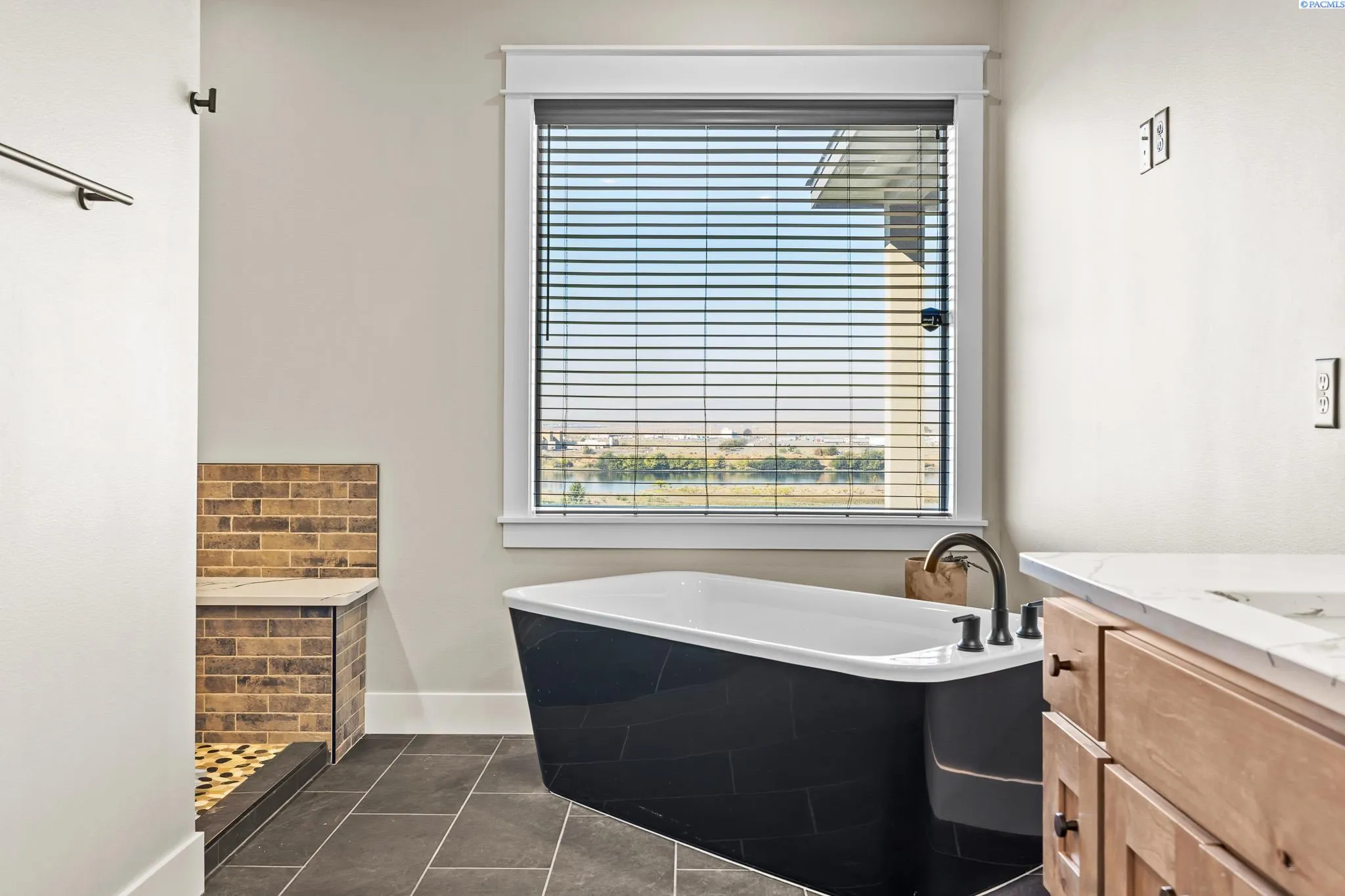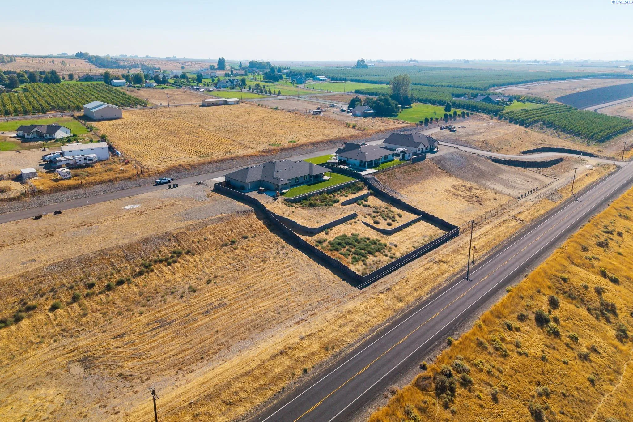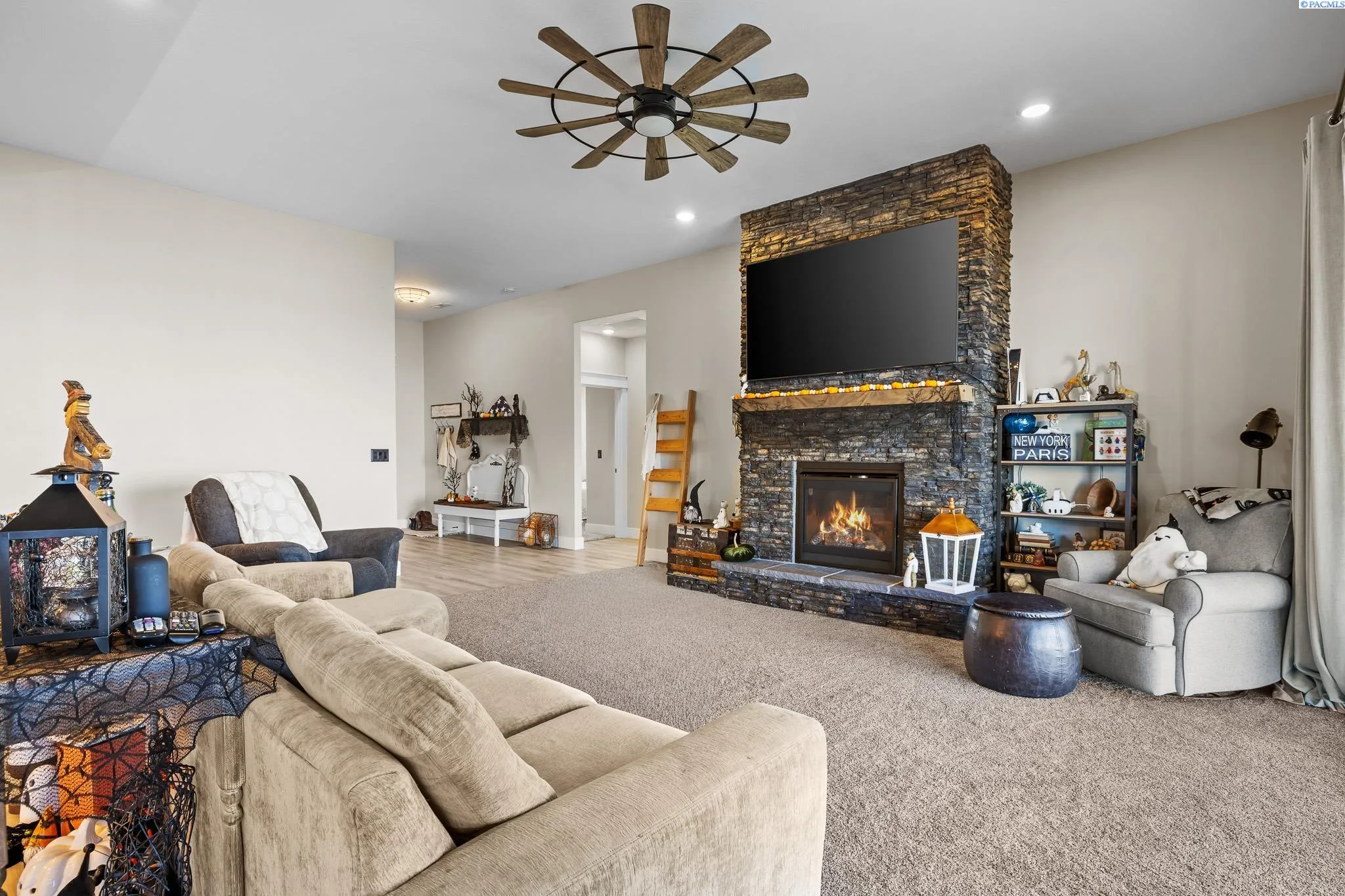 Perched to capture breathtaking Columbia River views, this exceptional 2022-built home offers a rare blend of modern luxury, flexibility, and space—complete with a private ADU and an expansive 5-car garage. Designed for comfort and versatility, the single-level layout spans 3,119 sq. ft. and features 5 bedrooms and 3 bathrooms with thoughtful finishes throughout. At the heart of the home, an open-concept living and kitchen area is framed by sweeping river views that create a truly unforgettable setting. A striking stacked-stone fireplace anchors the living space, adding warmth and ambiance. The chef’s kitchen is both beautiful and functional, showcasing soft-close oak cabinetry, quartz countertops, full tile backsplash, stainless steel appliances, and an oversized walk-in pantry. The adjacent dining area flows effortlessly to the outdoors—ideal for everyday living and entertaining. The primary suite is a serene retreat, offering a spa-like ensuite with a tiled walk-in shower, dual vanities, and a spacious custom closet designed for organization and ease. A standout feature of this home is the thoughtfully integrated accessory dwelling unit (ADU). Designed for privacy and independence, it includes its own living area, kitchenette, bedroom, laundry closet, and full bathroom with a walk-in shower. With additional wall insulation and a dedicated HVAC system, the ADU is perfect for multi-generational living, long-term guests, or a private office or studio. The impressive 2,126 sq. ft. insulated garage provides four individual bays—ideal for car enthusiasts, hobbyists, home gyms, workshops, or creative space—offering flexibility rarely found.