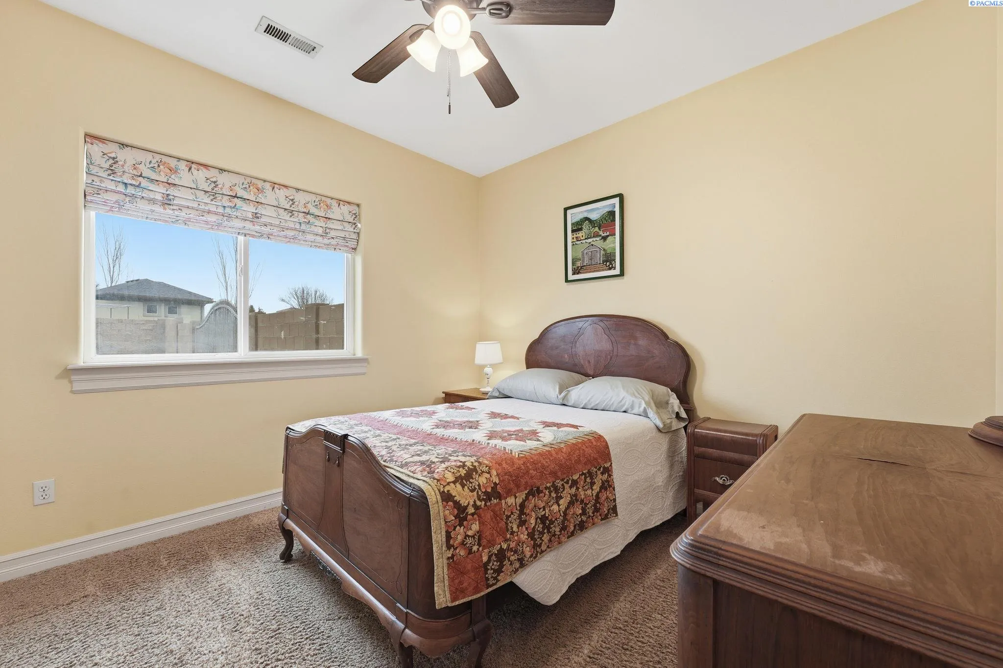 MLS# 290344 With over 3000 square feet all on one level, this south Richland estate is positioned on a generous corner lot spanning .62 of an acre. This property is a haven of privacy and serenity with its gated driveway and professional landscaping featuring mature trees. With the beautiful entryway and separate living spaces, this well-designed home has 4 large bedrooms and 3 bathrooms. It includes a split-bedroom layout that places the primary bedroom – complete with a cozy fireplace, an en suite bathroom, and a spacious walk-in closet – on one side of the house for optimum privacy. The heart of this home is the large kitchen, equipped with abundant counter space and storage for both casual meals and larger gatherings. Additional highlights include a 3-car garage, a storage shed in the backyard and a large back patio that promises endless outdoor enjoyment. Nestled in a neighborhood that’s peaceful, yet close to shopping and entertainment options, this property offers the best of both worlds. Experience the perfect blend of luxury, comfort, and convenience in this remarkable home, ready to welcome its new owners. Pics of how it looked when they bought it are included along with current pics, so you can envision a more neutral palette in the front two rooms if desired.