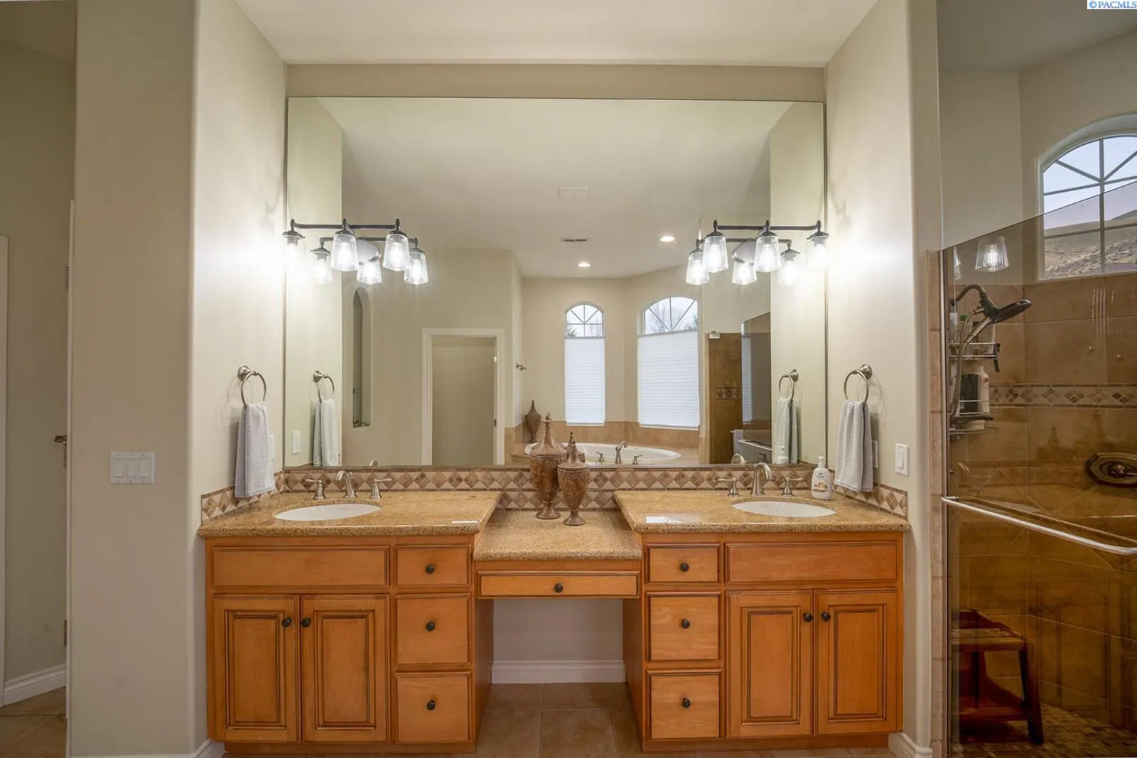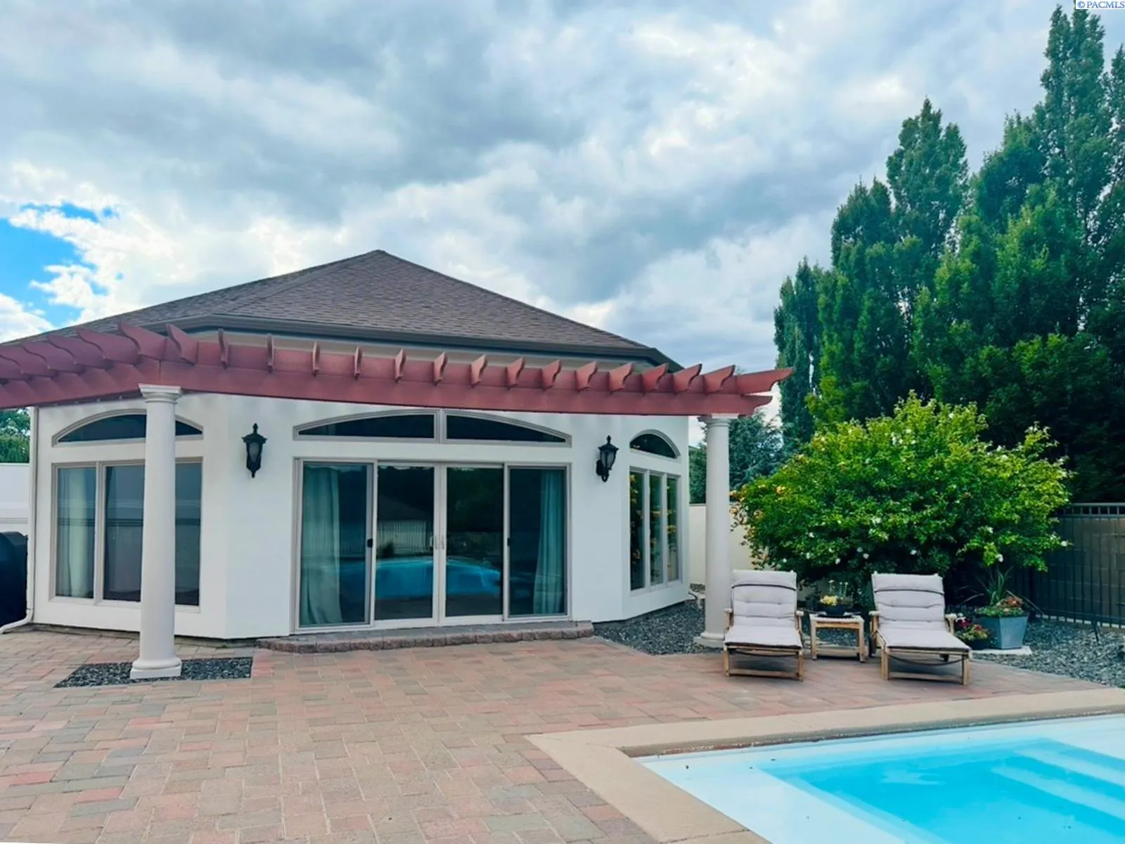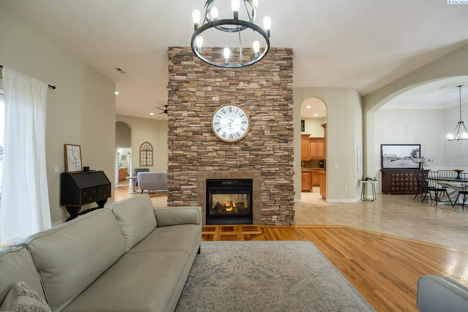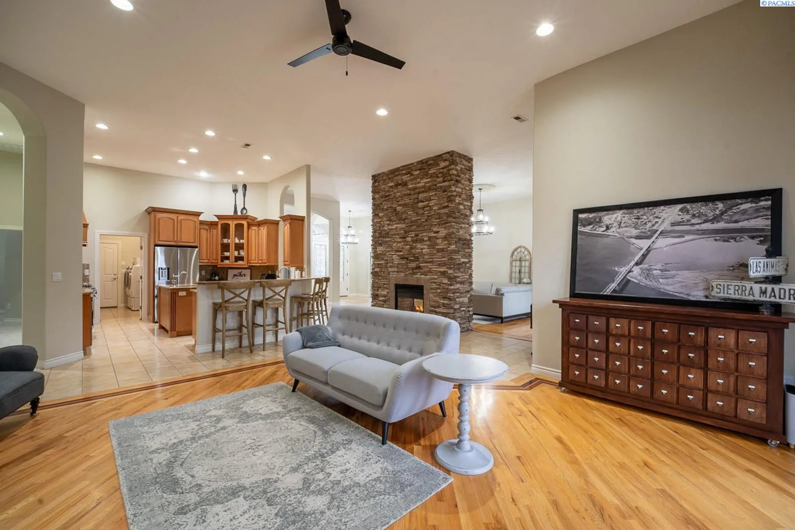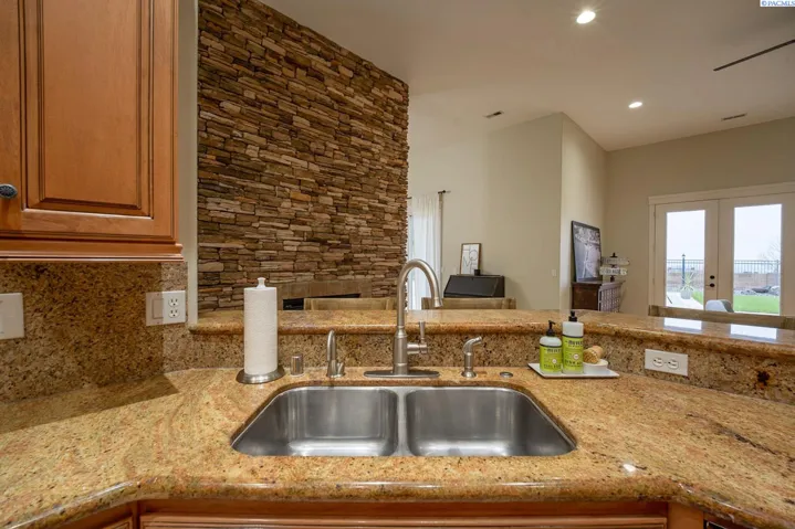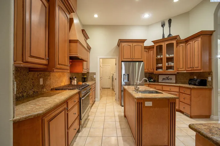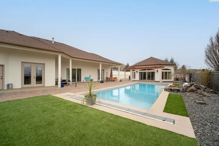 MLS# 289977 One-of-a-kind Country Ridge estate where space, style, and serious entertaining potential come together. Sitting on .62 acres, this property offers 6 BR and 4 BA across a beautifully designed main home and an exceptional casita. No HOA! The main residence features 3,390 sq ft with 4 BR, 3 BA, an office, formal dining room, impressive dual sided fireplace, and two spacious living areas. A grand entry opens to soaring ceilings, custom millwork, and expansive windows for natural light and enjoying the view. The gourmet kitchen is the heart of the home with custom cabinetry, granite counters, center island with prep sink, five-burner gas range, stainless steel appliances, and plenty of space to gather. All appliances stay (including washer/dryer and both fridges)! The primary suite is a true retreat with tray ceilings, gas fireplace, and two walk-in closets. French doors off suite to the outdoor living area, and a spa-like bath featuring a walk-in shower, jetted tub, dual vanities, and plenty of storage. Three additional bedrooms (one with attached bath, and two share Jack/Jill bath) are thoughtfully arranged in a split-bedroom layout. The 1,792 sq ft casita takes entertaining to the next level and works beautifully as a guest house, in-law suite, or even a rental opportunity. It includes a full kitchen with custom cabinets, granite counters, copper vent hood, Spanish-style tile, a large living and dining area, copper tile ceiling, guest bedroom and bath, a second bedroom that is ideal for a home gym or flex space, and a lower-level storage room that makes the perfect wine cellar! Between the two homes, enjoy an oversized covered and open patio, plumbed for an outdoor kitchen, overlooking the heated pool with automatic cover. Additional features include a 3-car garage, 14×16 shop, plus paved RV and boat parking. This is a rare, versatile estate built for everyday comfort and unforgettable gatherings and located in one of the Tri-Cities most desirable locations.