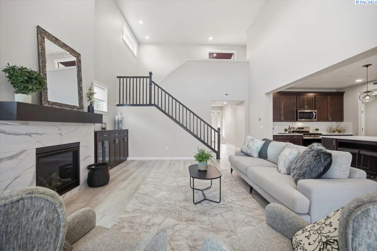 MLS# 290279 This beautifully designed home offers the perfect blend of luxury and functionality. From the moment you enter, soaring ceilings and expansive picture windows create a bright, open atmosphere filled with natural light.The functional floor plan features a spacious Great Room that is both inviting and ideal for entertaining or family gatherings. A cozy fireplace with custom built-ins anchors the space, which flows seamlessly into the gourmet kitchen. The kitchen boasts abundant cabinetry and counter space, a large center island, a huge walk-in pantry, and exceptional storage throughout. Washer, dryer, and refrigerator are included for added convenience.The main-level primary suite is generously sized and offers a spa-like retreat with a walk-in tiled shower, double vanity, and ample closet space. Also on the main level is a dedicated office with a large walk-in closet—perfect for working from home or easily converted into a guest bedroom.Upstairs, enjoy a private theater room, bonus/flex space, and additional bedrooms, providing plenty of room for relaxation, play, or guests. Step outside to a fully fenced backyard with an extended patio featuring both covered and uncovered areas—ideal for entertaining or enjoying family time outdoors.Additional highlights include extensive storage throughout and a spacious 3-car garage with built-in storage. Thoughtfully designed for comfortable everyday living and effortless entertaining, this home is located in Badger South, a growing community offering walking trails and close proximity to local conveniences such as Country Mercantile, wineries and newly developed commercial amenities.