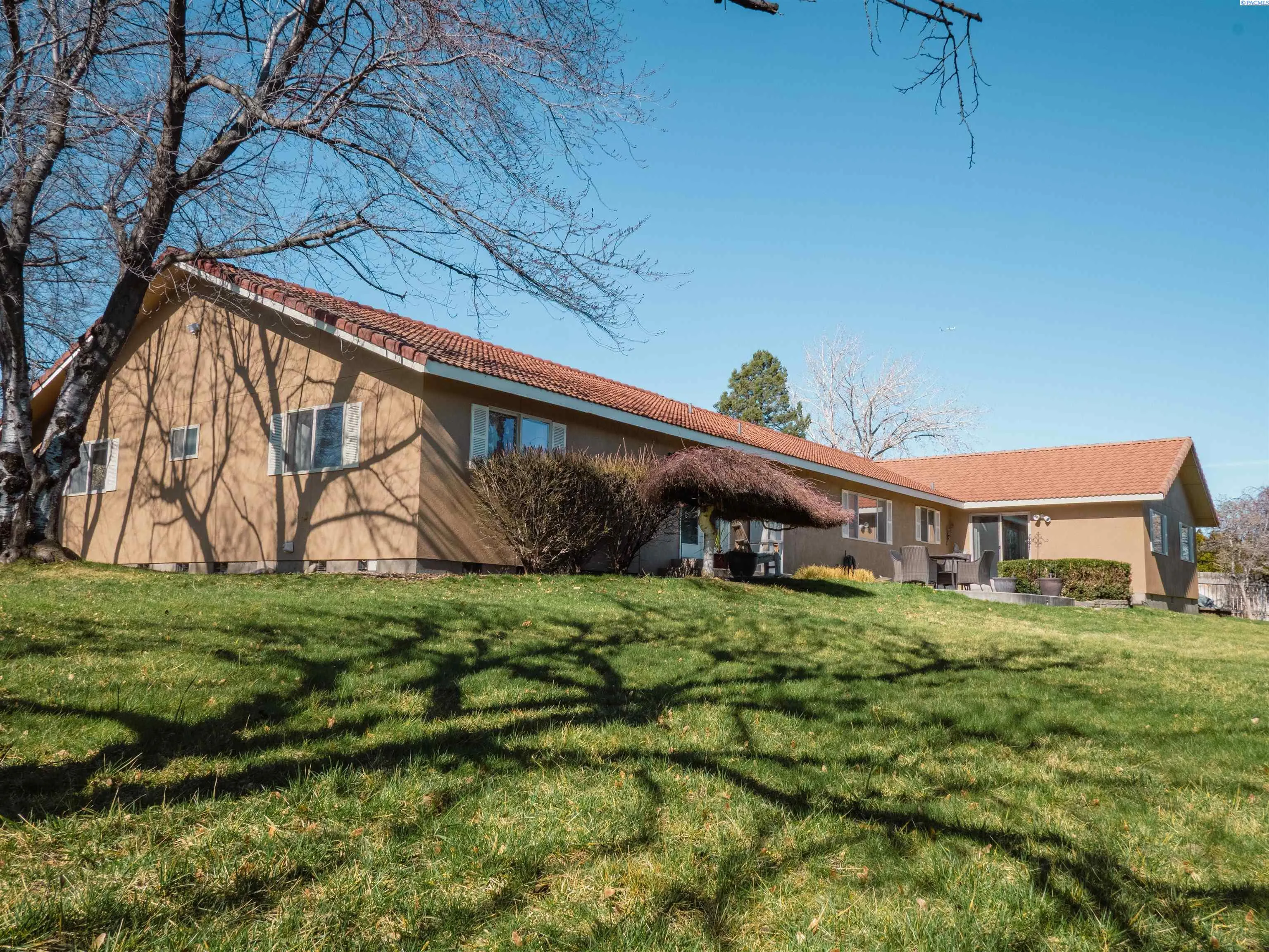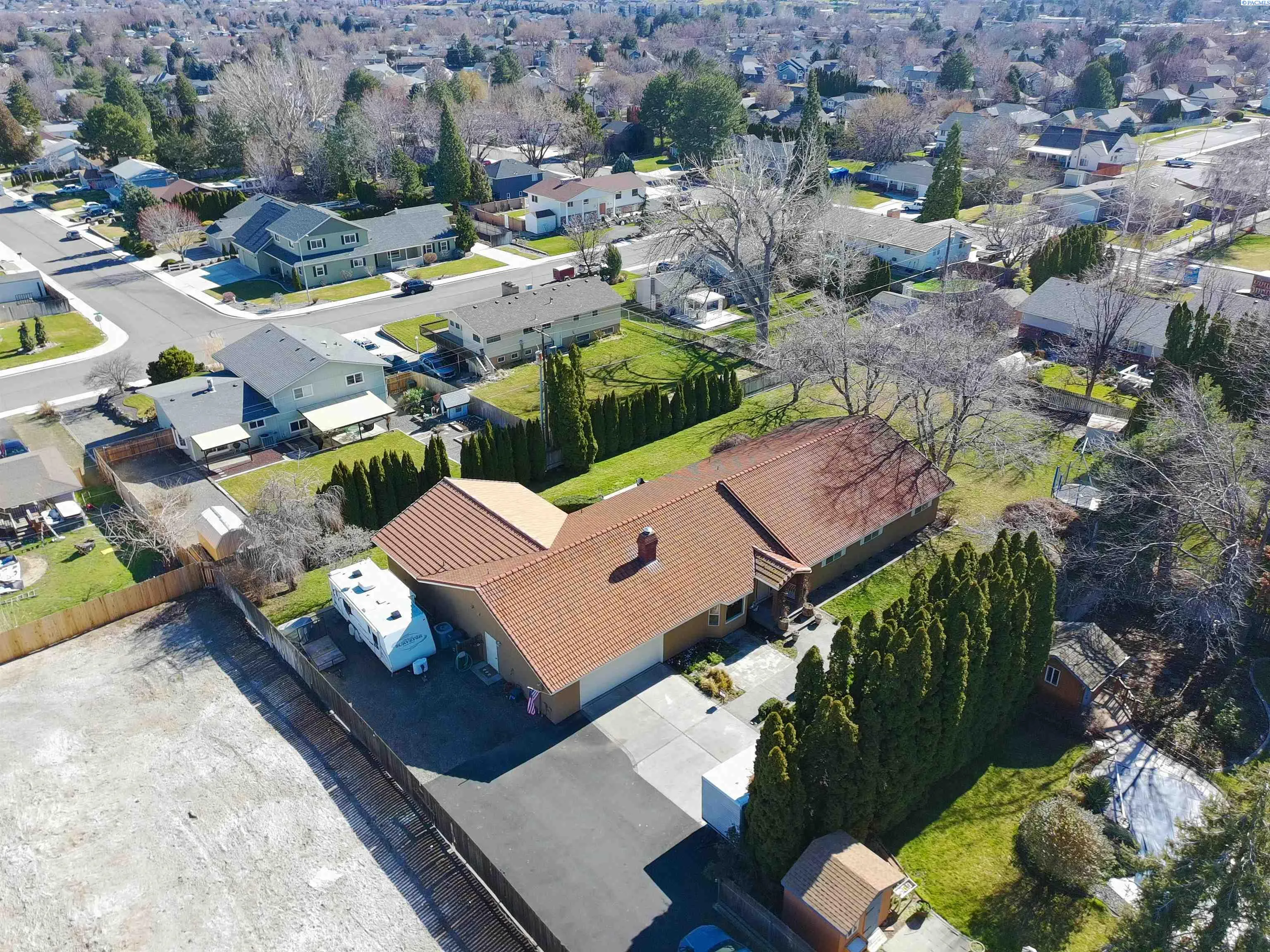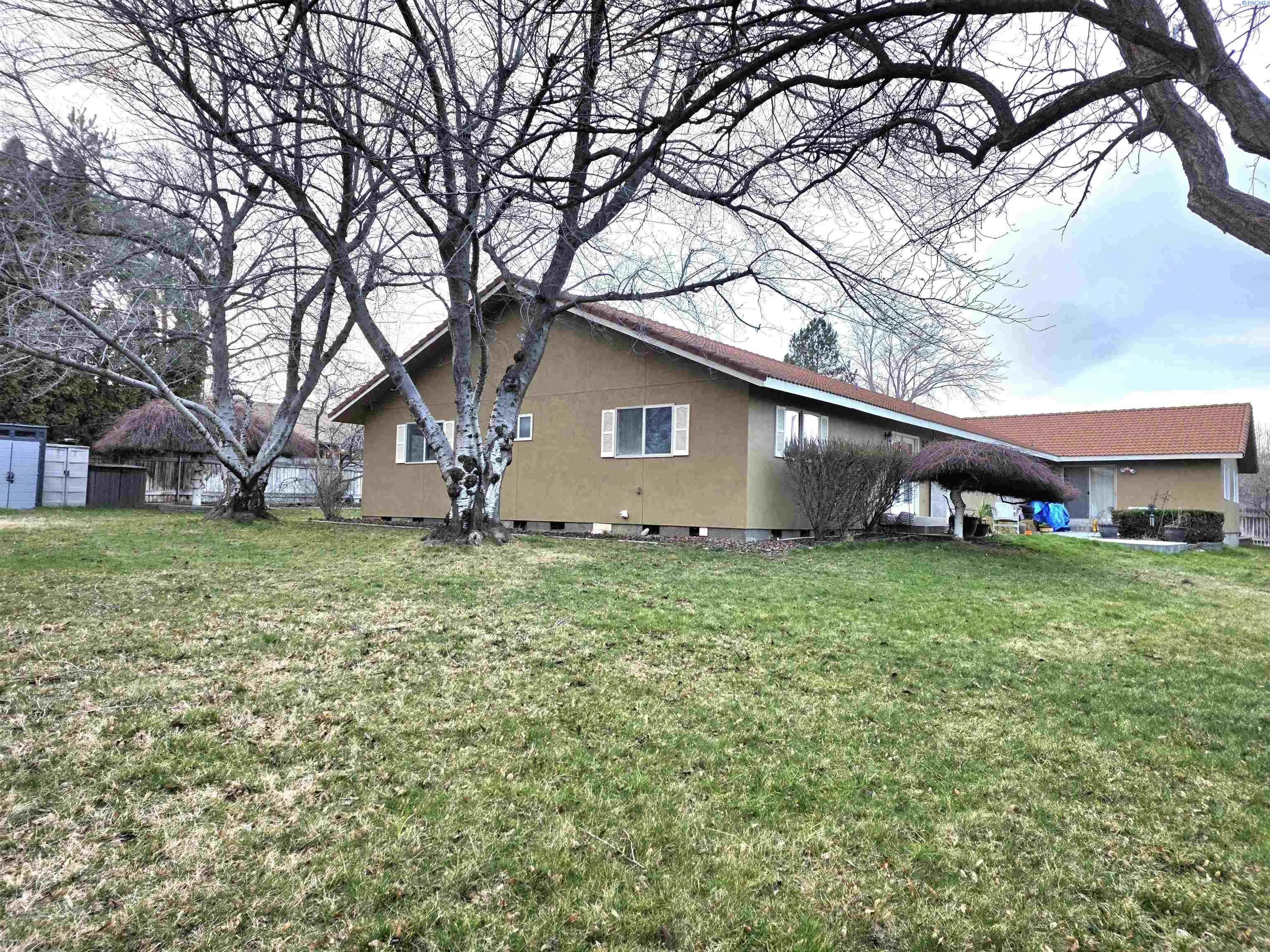 MLS #290705 Welcome to your private 0.62-acre oasis in highly sought-after South Richland. Thoughtful updates throughout the home include a new driveway, whole-house water filtration system, 80 gallon hybrid hot water heater, new hardwood and tile flooring, and a beautifully renovated laundry room with abundant storage. Multiple living areas offer flexibility for entertaining or quiet retreat. The fully updated kitchen features granite countertops, a full-height glass tile backsplash, new stainless steel appliances, and an oversized dining area with a center island and breakfast bar seating. The spacious primary suite includes an ensuite bath with a jetted soaking tub, double vanity, and a private exterior entrance. Updated bathrooms and lighting elevate the home with a warm, modern feel. Ramp access through the garage. Outside, flowering cherry trees and mature landscaping create a picturesque setting for gatherings or peaceful evenings. The low-maintenance tile roof and stucco exterior offer long-term durability. Enjoy fruit trees, ample space for a pool or additional outbuildings, a hot tub hookup, and RV/boat parking. No HOA, and optional Hills West Pool membership available. Owner is listing agent.