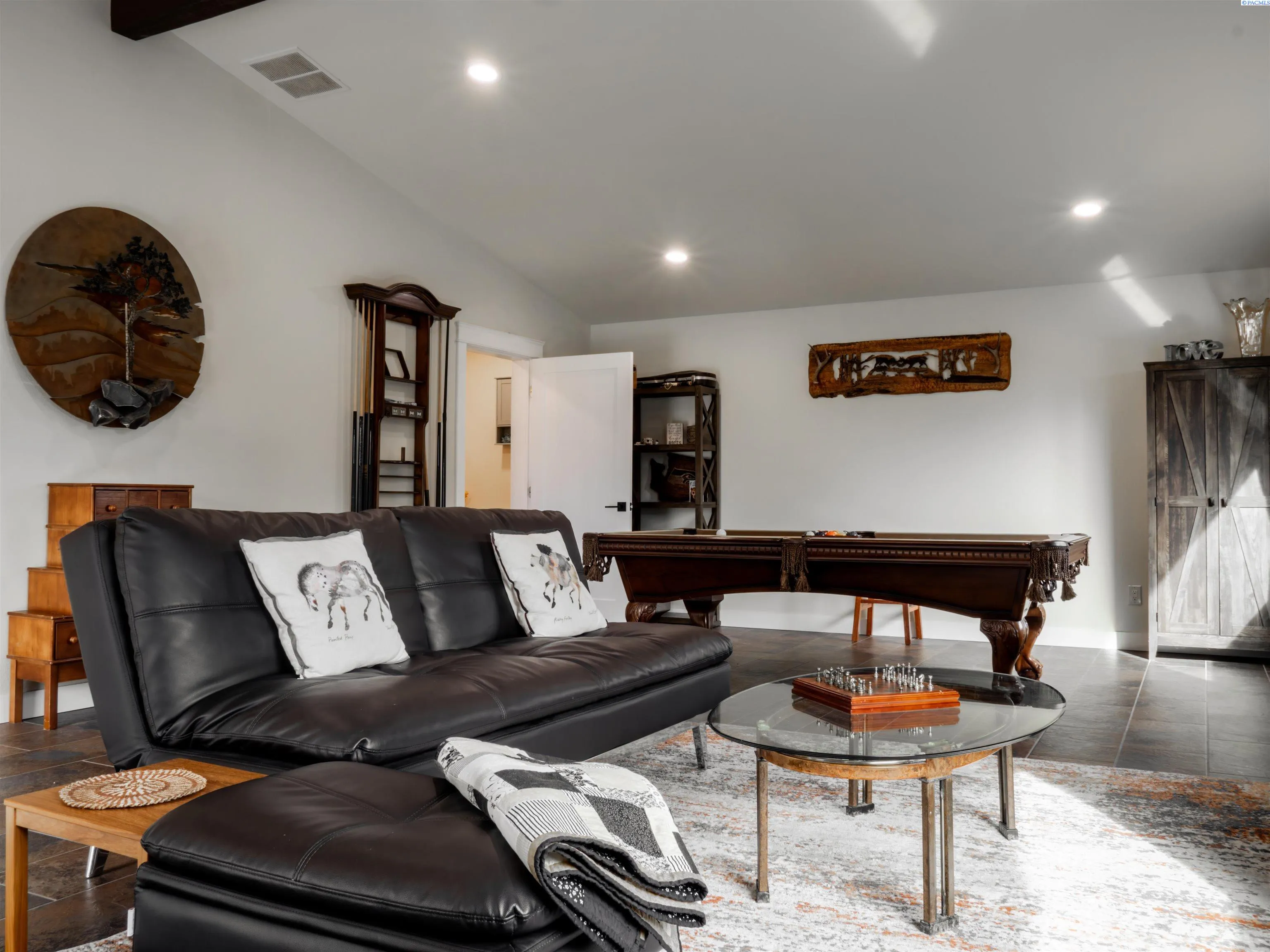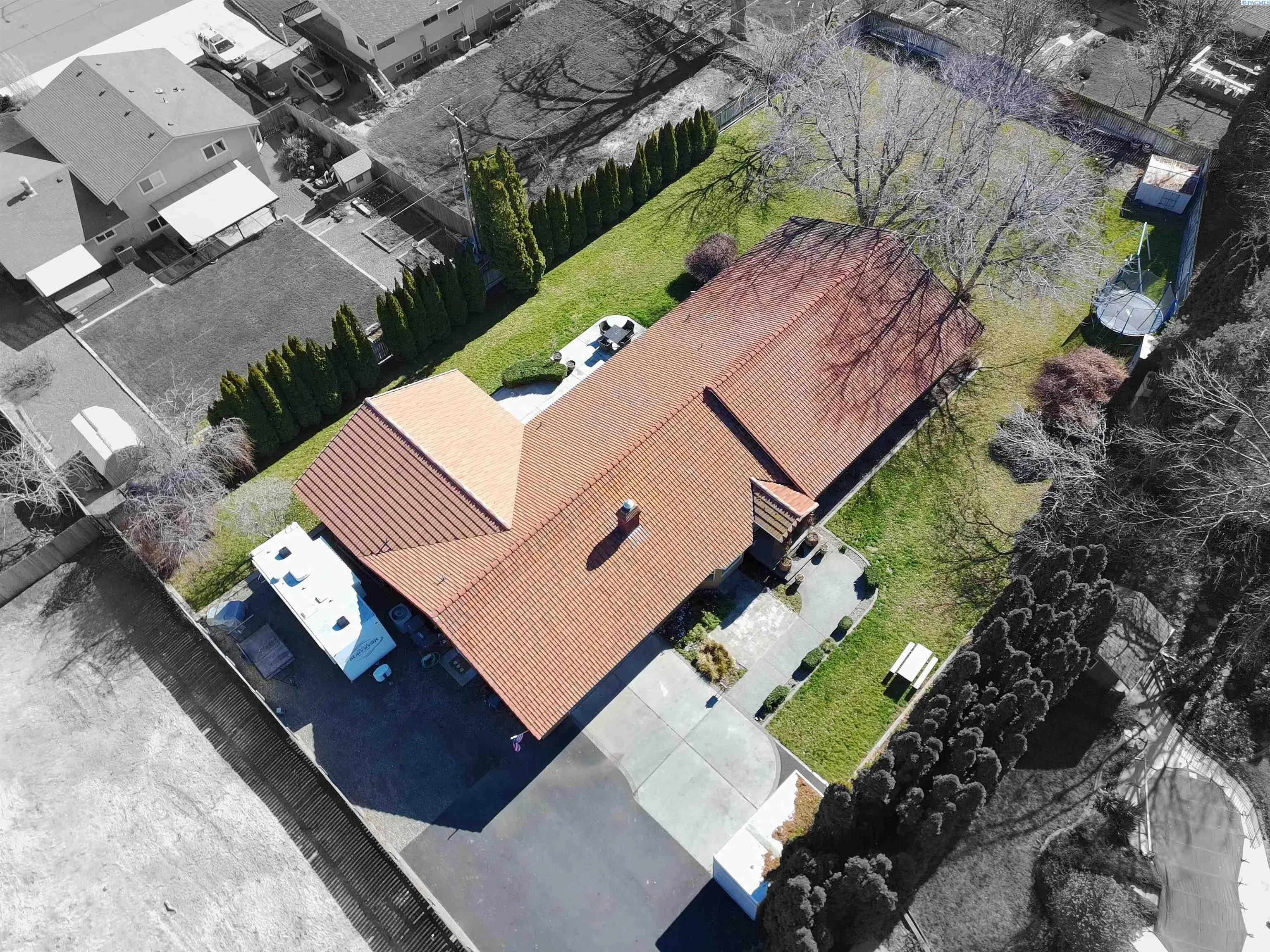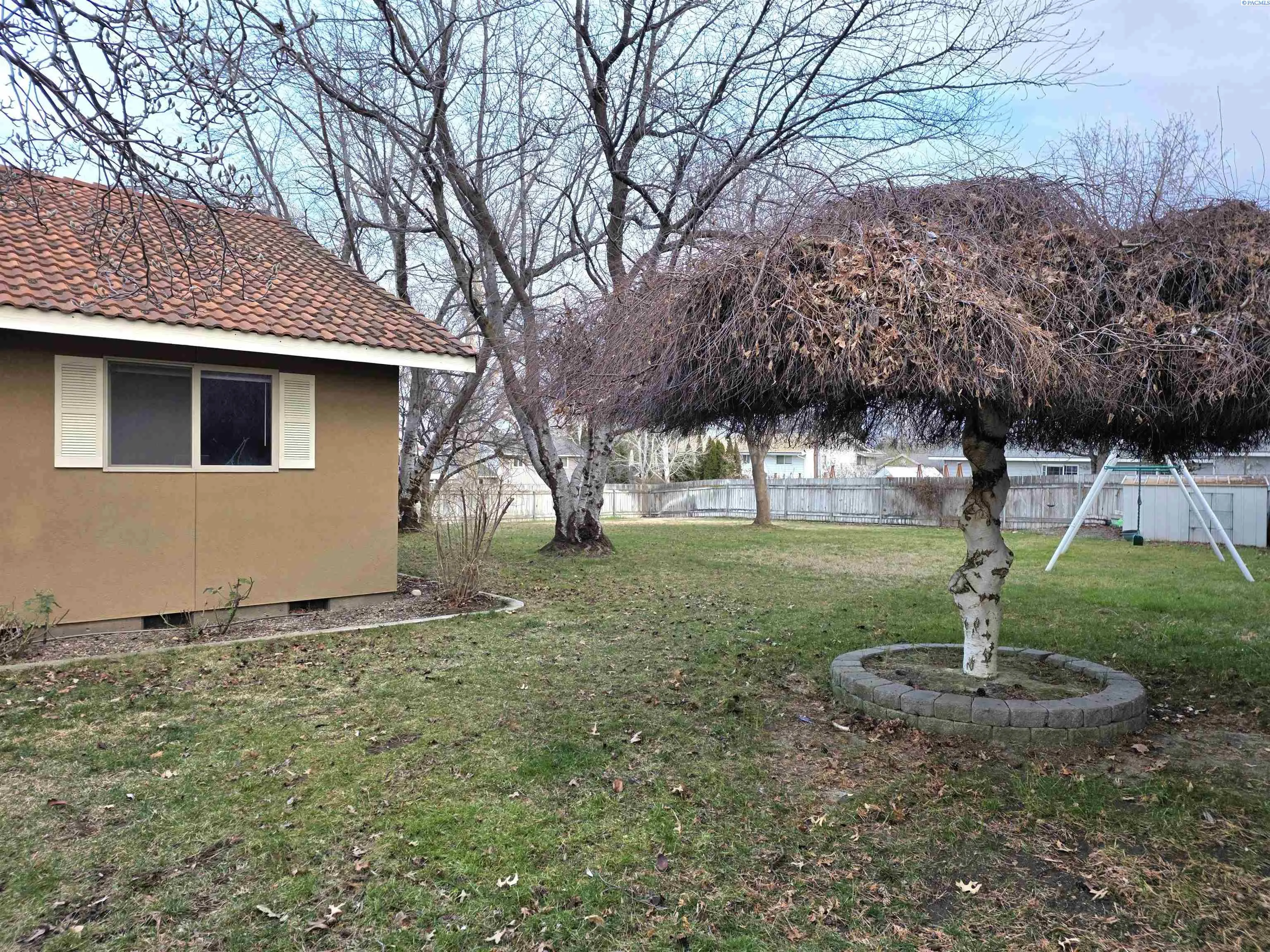 MLS #290705 Welcome to your private 0.62-acre oasis in highly sought-after South Richland. Thoughtful updates throughout the home include a new driveway, whole-house water filtration system, 80 gallon hybrid hot water heater, new hardwood and tile flooring, and a beautifully renovated laundry room with abundant storage. Multiple living areas offer flexibility for entertaining or quiet retreat. The fully updated kitchen features granite countertops, a full-height glass tile backsplash, new stainless steel appliances, and an oversized dining area with a center island and breakfast bar seating. The spacious primary suite includes an ensuite bath with a jetted soaking tub, double vanity, and a private exterior entrance. Updated bathrooms and lighting elevate the home with a warm, modern feel. Ramp access through the garage. Outside, flowering cherry trees and mature landscaping create a picturesque setting for gatherings or peaceful evenings. The low-maintenance tile roof and stucco exterior offer long-term durability. Enjoy fruit trees, ample space for a pool or additional outbuildings, a hot tub hookup, and RV/boat parking. No HOA, and optional Hills West Pool membership available. Owner is listing agent.