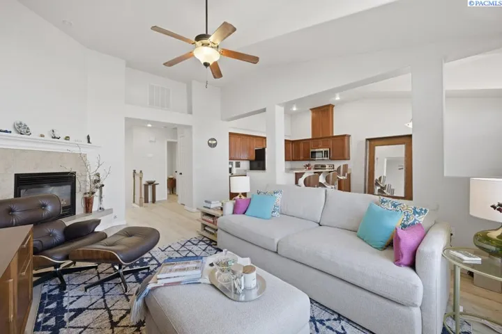 MLS# 290377 Upscale condo inspired by classic Swiss Chalet design, featuring two spacious primary suites on separate levels. New luxury vinyl plank flooring throughout the entry, stairs, kitchen, dining area, living room, and baths. The kitchen offers granite countertops, cherry cabinetry, a large eating bar perfect for entertaining, and stainless steel appliances. Vaulted ceilings and expansive windows create a bright, open feel. The dining area includes a sliding glass door that opens to a private deck. The spacious living room features a gas log fireplace and abundant natural light. Both bedrooms are generous en-suite retreats. Attached two-car garage with additional storage space completes this exceptional home. Come take a look at this move-in ready home.