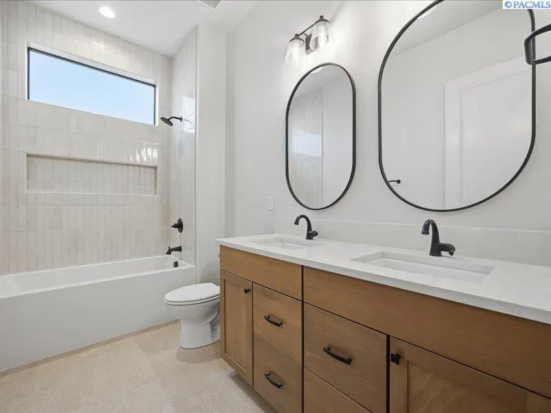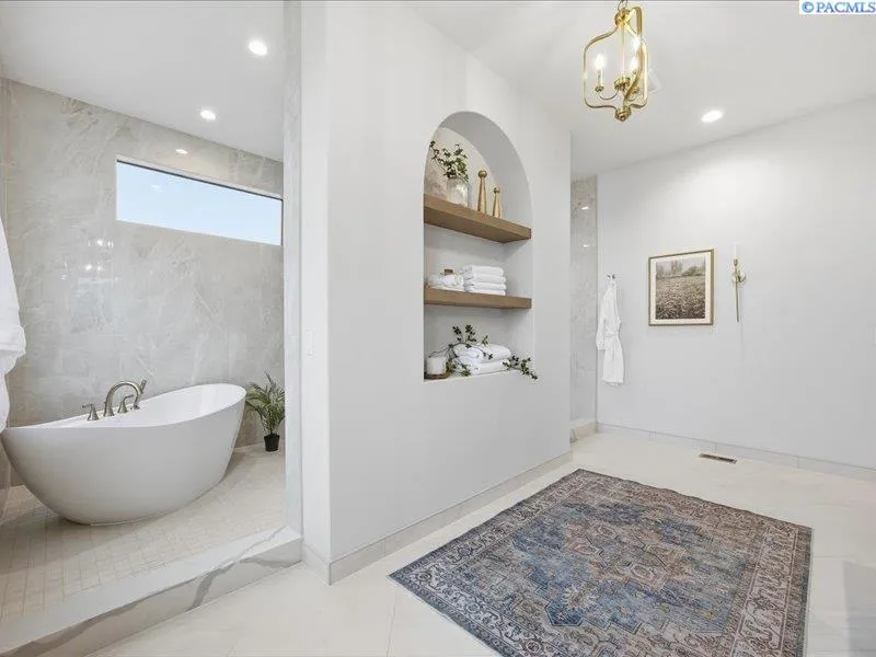 MLS# 286089 Now complete and move in ready! Welcome to Harvest Ridge, where timeless design meets wide open space on a full acre in one of the Tri Cities’ most peaceful acreage communities. This stunning new Brett Lott home offers over 4,000 sq ft of beautifully designed, light filled living with 5 bedrooms and 4 baths. A flexible floor plan includes a separate office and a bonus room with its own mini split that easily functions as a fifth bedroom, ideal for guests, a playroom, or a home gym. Entertain with ease in the gourmet kitchen featuring a 36 inch Bosch gas range, built in fridge and freezer, and generous prep space, all overlooking spacious living areas accentuated by vaulted ceilings, black framed floor to ceiling windows, rich engineered hardwoods, and custom archways. The luxurious primary suite showcases stained ceiling beams, a spa inspired bath with freestanding tub, and a walk through shower. A 4 car garage provides ample room for vehicles and toys, while included landscaping enhances curb appeal. Preferred lender Eric Melling is offering incentives of up to 1 percent toward a rate buy up or closing costs are available. Don’t miss your chance to own this exceptional luxury acreage home!