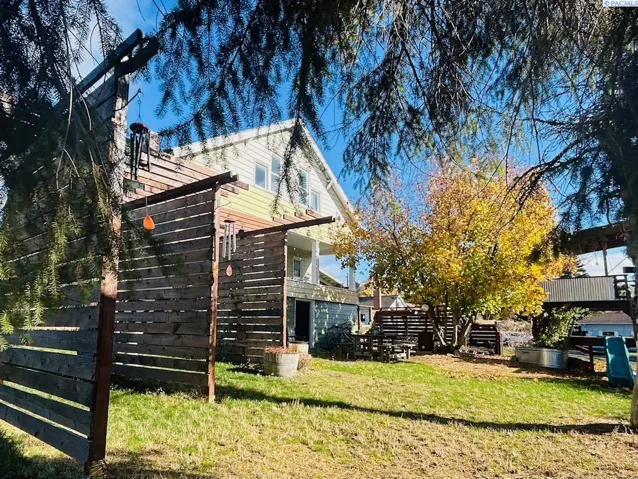MLS# 286398 Looking for a large vintage home in Palouse? This charming property has it all! Three levels and room for everything! On the main floor the entry door flows right into the kitchen. The designated dining room opens out onto a large covered porch, and due to this well situated lot the view from the dining table feels like it could be from a treehouse. Durable laminate plank floors, character building moldings and beautiful doors grace the spaces. Upstairs offers a landing space large enough to be considered a den or an office. Three more bedrooms and one large bathroom complete the space. Don’t forget to look at the transom windows! The basement is a massive storage space, laundry, utility and walks-out into the backyard…AND WHAT A YARD!! Huge. The fort of ones’ dreams, structures for screening, shading and storing, relaxing, celebrating. Fruit and native trees and shrubs with thoughtful xeriscaping. This is a house you need to see in person. Seller is motivated! Buyer to verify square footage.