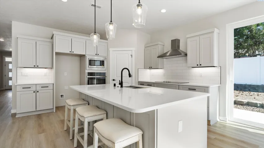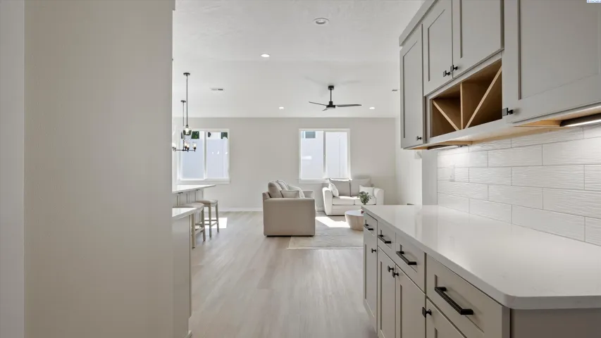 Premium Lot! This brand-new, one-story home in Paradise Townhome Estates offers 3 bedrooms, 2 bathrooms, and a 2-car garage in a thoughtfully designed layout that blends comfort and functionality. With everything on one level and no wasted space, it’s a great fit for anyone looking for easy living in a prime West Richland location. You’ll love the open layout and high-end finishes throughout. The kitchen is equipped with soft-close cabinets and drawers, quartz countertops, stainless steel appliances, and a full-height backsplash. LVP flooring runs through the main living spaces and wet areas, while soft carpet adds warmth in the bedrooms. The primary suite includes a spacious bedroom, a walk-in closet, and an attached bathroom with dual sinks, a walk-in shower with a built-in bench, and modern finishes throughout. Step outside to a private, fully fenced patio — perfect for enjoying your morning coffee or hosting a BBQ. Solar panels are already installed, keeping your energy bills low and your home efficient. Built by Green Plan Construction and backed by a 2-10 Home Warranty, this home checks all the boxes. Plus, you’re just a short walk from Yoke’s, coffee shops, restaurants, and more.