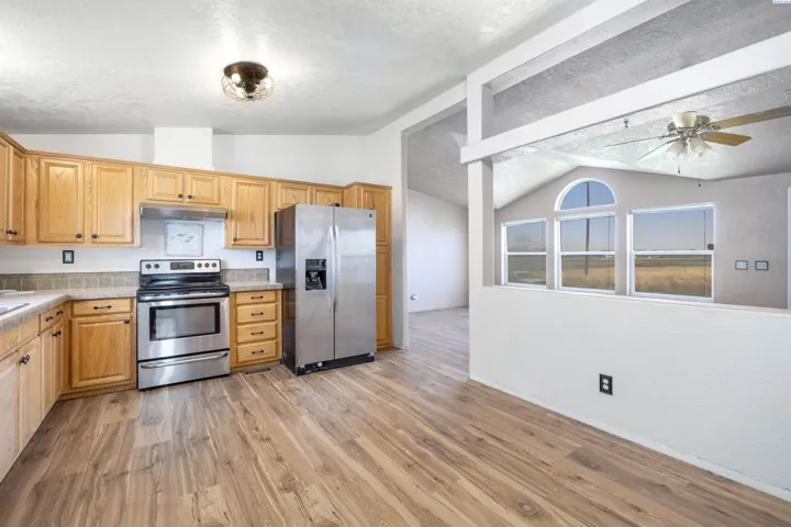 MLS# 286907 Enjoy breathtaking views of the water and the McNary National Wildlife Refuge from this affordable Burbank property! This well maintained manufactured home offers 1,296 square feet of comfortable living space, featuring 3 bedrooms and 2 bathrooms. Inside, you’ll find vaulted ceilings that create an open and airy atmosphere, large windows to take in the views, durable laminate flooring, ample extra storage, ceiling fans, and the comfort of central heating and air conditioning. The kitchen offers plenty of cabinetry and counter space for meal prep, room for your table, and features a pass-through to the living area. Spacious primary suite with a large closet and private bathroom. Situated on a spacious 0.38-acre lot, the property includes a detached workshop and mature trees. Additional highlights include open RV parking for your convenience. Take advantage of nearby boat launches, fishing spots, and a variety of outdoor activities, making this home an ideal retreat for nature lovers and adventure seekers alike.