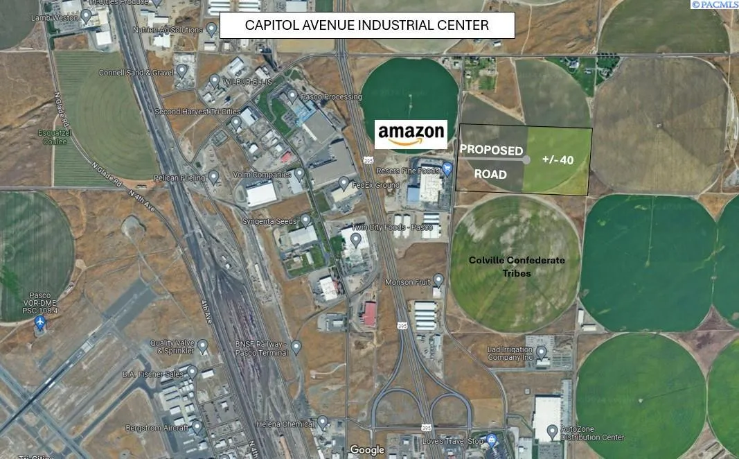 MLS# 274707 MLS#. 40acre light industrial tract located in the City of Pasco, Washington. $5/PSF. The City of Pasco has experienced significant industrial growth in the last 5 years with Amazon, Dairygold, Reser’s Fine Foods, AutoZone, and Tarragon all choosing Pasco to locate in. The site is in an Opportunity Zone.